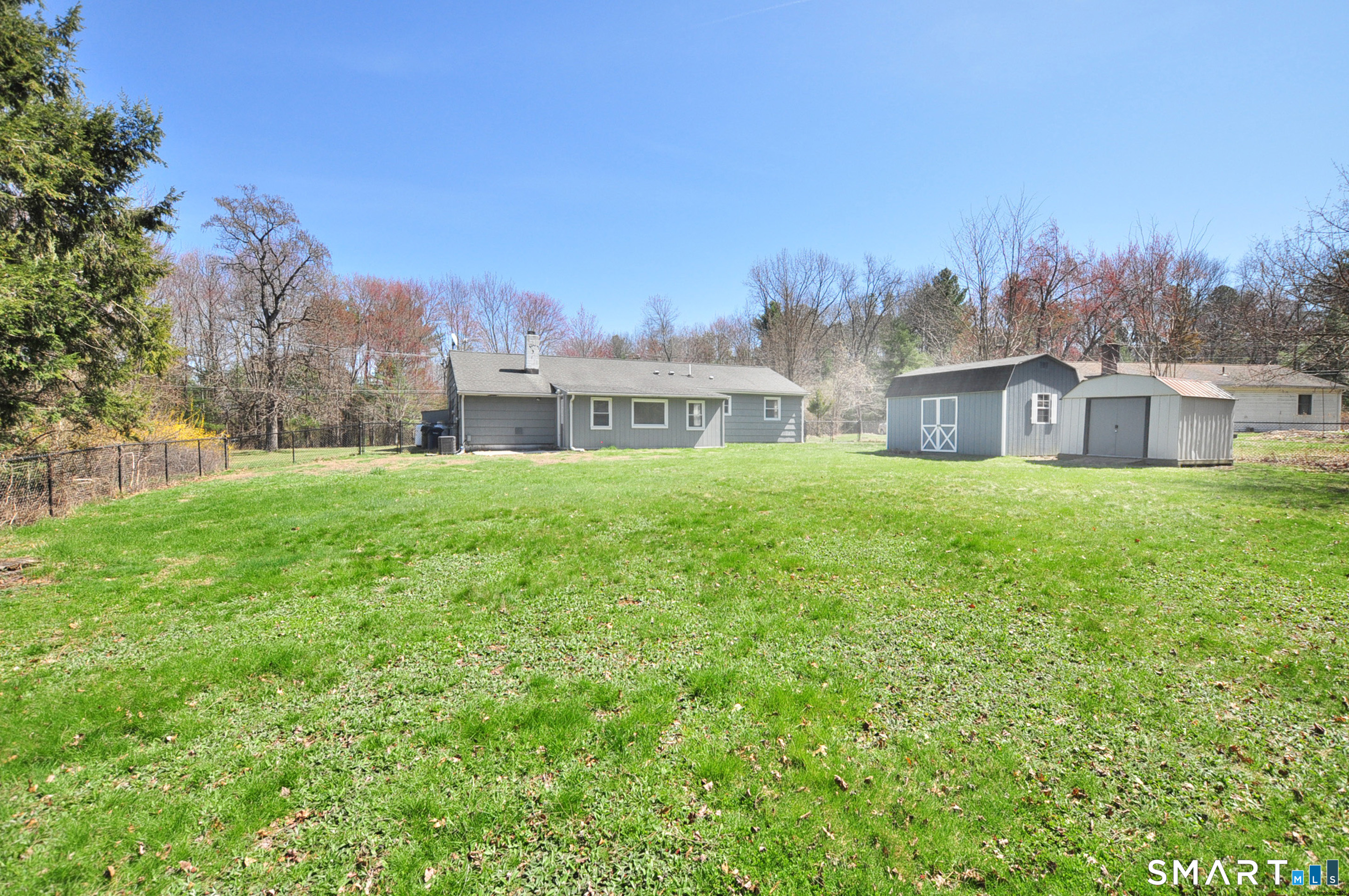 Rare opportunity to own a move-in ready ranch in Granby at a price point that's hard to find! Set on . 50 level acres, this adorable home offers 3 bedrooms, 2 full baths, a bright living room, dedicated office space, and an attached garage. The kitchen features generous counter space and abundant cabinetry, perfect for everyday living and gathering. Additional highlights include central air, propane heat, public sewer, and a newer electric car charger in the garage. Enjoy a level yard with a fenced-in area-ideal for pets, play, or gardening-plus a convenient storage shed. Located just over the Simsbury line and within walking distance to McLean Game Refuge, you'll enjoy miles of scenic walking and hiking trails, cross-country skiing, and peaceful nature year-round. Just minutes to Rails-to-Trails, the YMCA, Stop & Shop, International Skating Center, Salmon Brook Park, and Granby Center-truly convenient to everything! There is nothing to do but move in and enjoy!