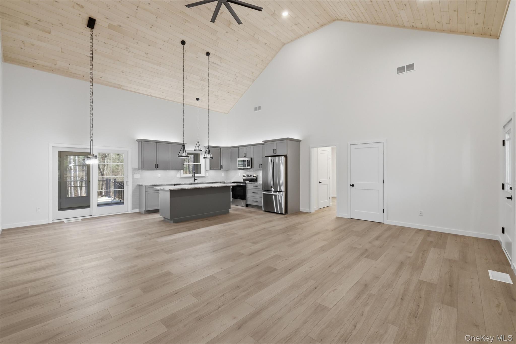 Escape the city and discover a refined take on country living with this brand new 3-bedroom, 2-bath brook front retreat, privately set among winding woodland and natural beauty. Built by a highly respected local craftsman known for exceptional quality, timeless design, and meticulous attention to detail, this home offers a seamless blend of modern sophistication and serene surroundings. Inside, dramatic 20-foot cathedral ceilings and a light-filled open-concept design create an impressive yet welcoming atmosphere. Beautiful, engineered wood flooring flows throughout the home, adding warmth, durability, and a cohesive, high-end finish. Rich textures and thoughtful details including solid wood doors and a beautifully appointed enclosed porch further elevate the space. The designer kitchen is both stylish and functional, complete with refrigerator, stove, dishwasher, and microwave, ideal for everyday living or effortless entertaining. The primary suite serves as a true sanctuary, featuring custom California Closets that bring a tailored, boutique feel while maximizing organization. Additional highlights include energy-efficient forced hot water heat pumps, a dedicated laundry room, and a two-car garage with electric openers. A covered Trex porch extends your living space outdoors, offering the perfect setting to relax and take in the peaceful surroundings. Upstairs, a walk-up attic with plumbing already in place presents an exceptional opportunity to expand whether envisioning a guest suite, studio, or private office. Located just two hours from New York City and minutes from Bethel Woods Center for the Arts, the home is surrounded by rolling countryside, charming local dining, antique shops, and vibrant farmers markets. Explore your own brook front, wander the woods, and enjoy a lifestyle defined by privacy, beauty, and calm. With a builder known for enduring craftsmanship and thoughtful design, this is more than a home it’s a private retreat designed to be timeless and unforgettable.