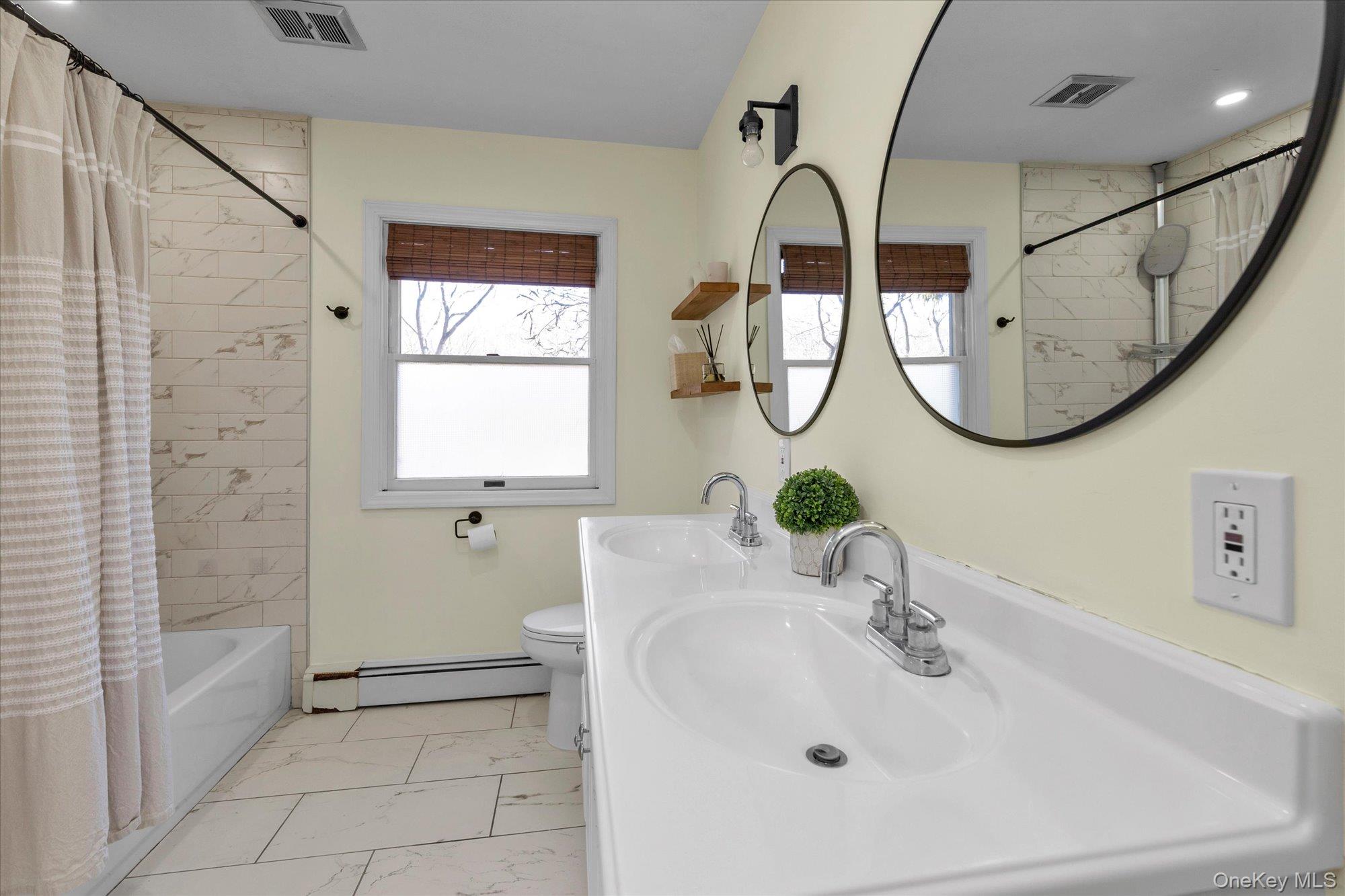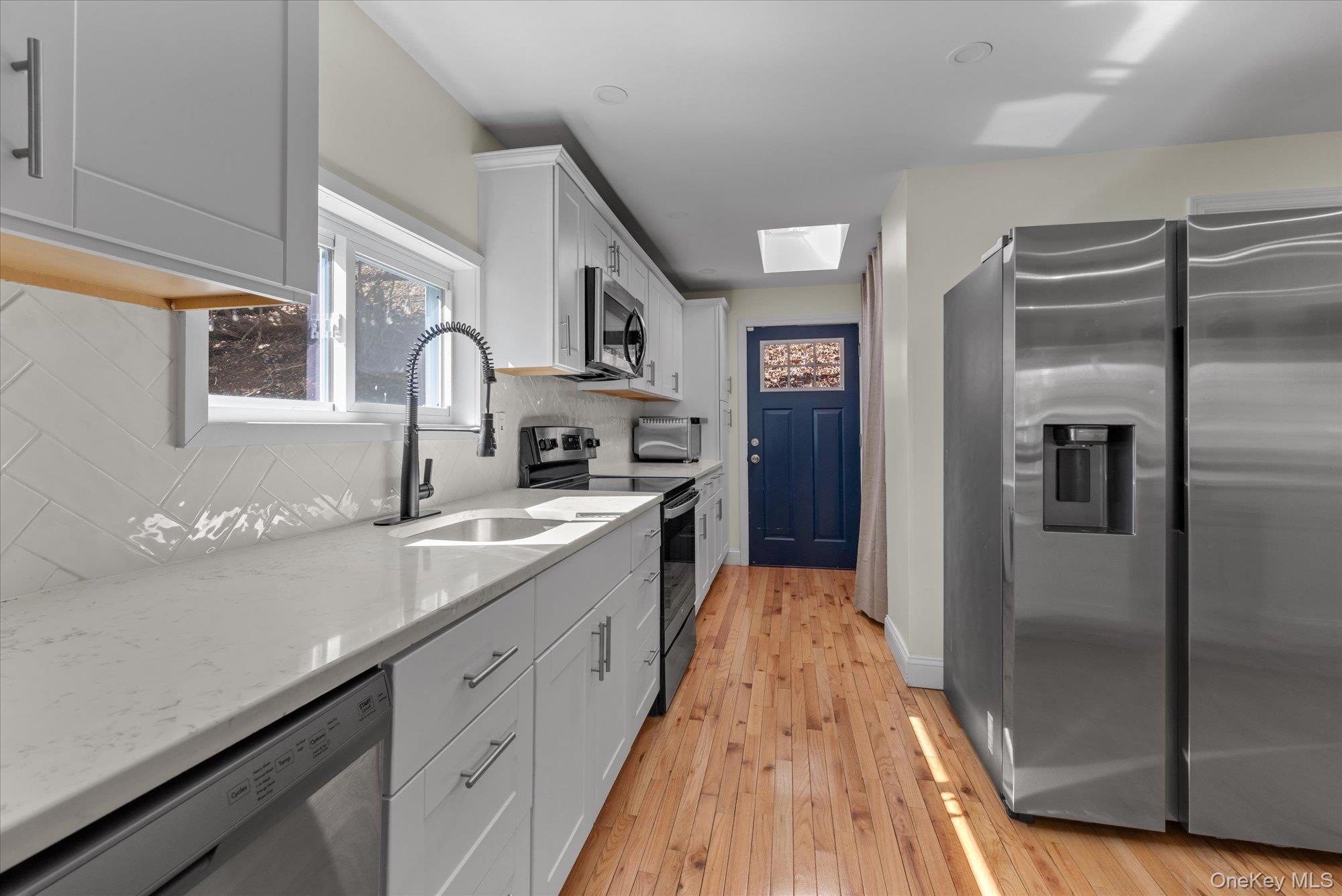 Nestled on a private and picturesque . 88-acre property, this classic Northport Village Colonial offers 3 bedrooms and 2 full bathrooms with the perfect blend of charm, comfort, and modern updates. The home features a bright, open layout with wood flooring, a warm and elegant formal living room with a wood-burning fireplace and a stone accent wall. The updated kitchen with white quartz countertops flows into a formal dining room and a cozy sitting area with brick fireplace. The main level also includes an office, full bathroom and a laundry area with new washer and dryer. Upstairs, the spacious primary bedroom offers ensuite access to a full bathroom, along with two additional bedrooms and ample storage. A finished basement provides valuable bonus space and additional storage. Recent interior enhancements include fresh paint throughout, upgraded electrical, Nest-controlled heating and cooling systems, and ductless AC. The exterior has been thoughtfully improved with a new retaining wall, widened circular driveway, new fencing, updated outdoor electrical and exterior lighting. The beautifully landscaped grounds feature new plantings, a 6-zone sprinkler system, and a newly designed walkway. Additional upgrades include a new septic system, new above-ground oil tank, and a reopened second chimney. Ideally located close to Northport Village, Crab Meadow Beach and Golf Course, and Del Vino-offering the very best of Northport living.