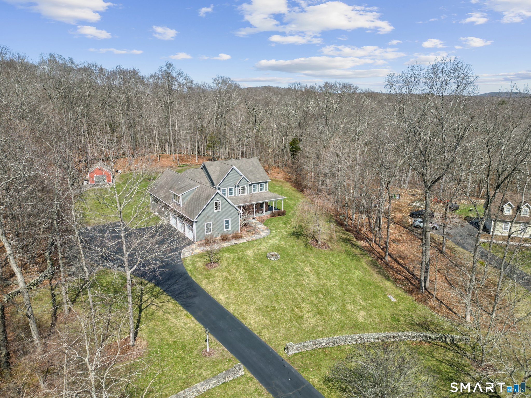 Every detail of this custom home has been thoughtfully considered and created with top quality craftsmanship and timeless design. This Lake of Isles Estates house sits atop a hill at the end the cul-de-sac surrounded by stone walls, rolling lawns, mature gardens and flowering trees. The adjacent woods provide privacy and wildlife. The large open eat-in kitchen is perfect for entertaining and open to the living room w/12ft ceilings, stone patio and fire-pit. The living room is anchored by the floor to ceiling stone wood-burning fireplace with bluestone mantle and hearth. Walk-through butler's pantry leads to the mud room and to the three-car garage/workshop. This cook's kitchen includes granite counter tops, Subzero paneled refrigerator with 2 freezer drawers, a wine fridge with 2 fridge drawers, Wolf 5-burner cooktop and 36" oven and warming drawer. The central vacuum system includes sweep kick plate in the kitchen. There is a library/music room off the two story foyer. The unique hickory wide-plank hardwood floors have wood plug fasteners. The primary bedroom is on the main floor with sitting area and en-suite bathroom that includes walk-in shower, travertine floors and Zuma soaking tub. There is a potential second primary bedroom suite upstairs with sitting area and full bathroom. There are third and fourth additional bedrooms with walk-in closets and a third full bathroom. There are too many details to share. This is a must-see property. ADDITIONAL UPGRADES: -12 foot ceilings in living room, primary bedroom with ceiling fans -Schoenberg chandelier in two-story foyer has elevator for cleaning -Library/Music room with French doors off foyer has a tray ceiling -Barn has electricity and workshop area -Whole house automatic Generac generator located next to barn -3-zone central air system -3-zone Buderus boiler system with upgraded oil tank -High ceilings in basement allow for very useful spaces -Hot water spigot in 3-bay garage/workshop -Integrated lightning abatement system visible in walk-in attic space with lightning rods in place -Three outdoor garden spigots on exterior of house -Repainting of exterior of home within last 12 months