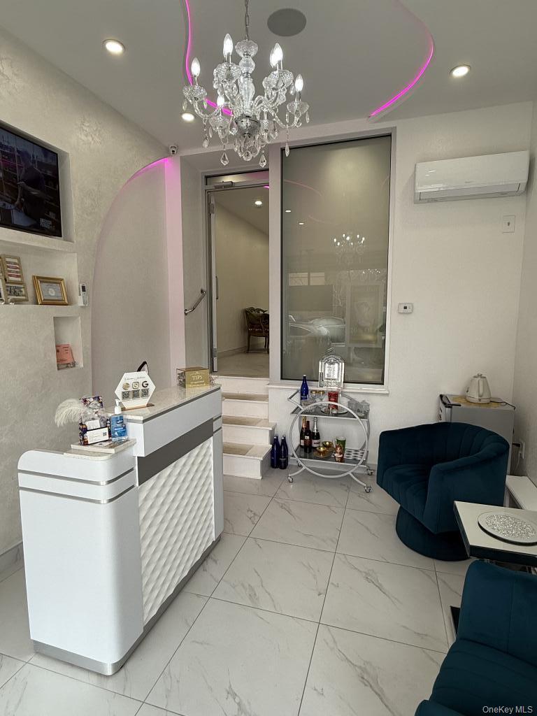 Turnkey beauty and aesthetics clinic — business opportunity, move-in ready storefront in the heart of Forest Hills — is now available. This fully equipped clinic features an elegant reception area, chandelier-lit interior, polished gold signage, and large display windows that deliver excellent street visibility. Ideal for medspa, laser hair removal, skincare, or boutique wellness concepts. Prime location-Transit-oriented location — easy access for clients and staff via subway, LIRR, and buses, established curb appeal, and immediate income potential-local customer base from surrounding residential neighborhoods and nearby commercial destinations. Full interior refresh: New paint, upgraded mill work, and refreshed reception desk finish, Electrical & outlets: Upgraded electrical panel and additional dedicated circuits for treatment equipment. Cosmetic & branding: Polished gold exterior signage refinished; clean, modern storefront glazing and hardware.