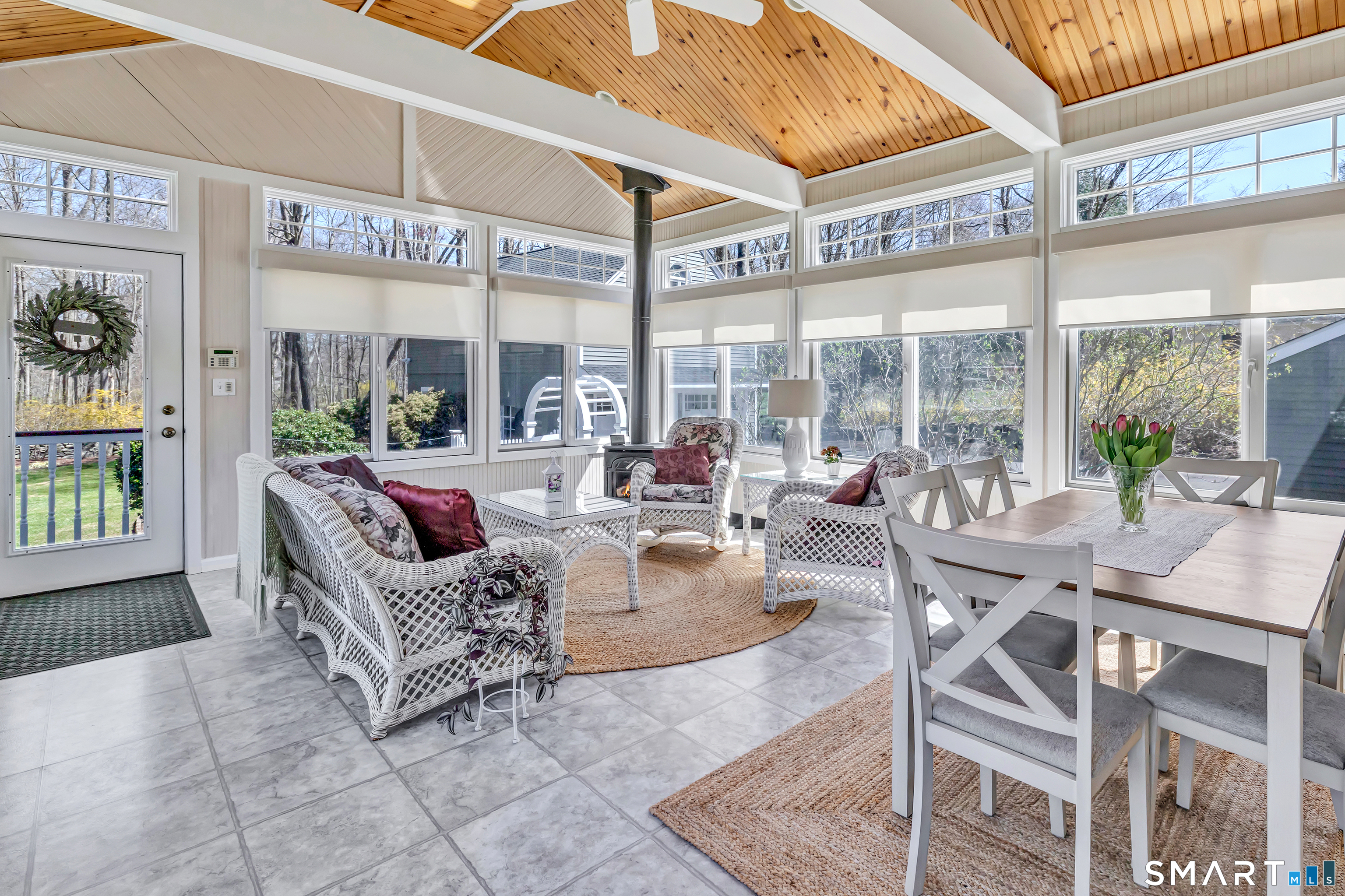 *** Highest and best due Monday 4/13 @ 4PM. Tucked away in the wooded setting of lower Monroe, this updated custom Ranch blends privacy, charm, and thoughtful design. Expanded over time, the home offers a comfortable & functional layout with inviting spaces throughout. The entry opens to formal living and dining rooms, accented by elegant archways & detailed moldings. At the heart of the home, the family room showcases exposed beams, a vaulted ceiling, & custom built-ins. The renovated kitchen features white shaker cabinets, quartz countertops & backsplash, stainless steel appliances, tile flooring, & a casual dining nook. The bright four-season sunroom surrounded by Anderson windows on three sides, vaulted ceiling, & a propane stove for year-round enjoyment. There is also the opportunity for a future bath/laundry area or potential primary suite expansion. Outside, the private yard offers a peaceful escape with a spacious stone patio, natural stone walls, & mature landscaping-perfect for entertaining or unwinding. The detached garage includes a 620-square-foot loft, ideal for a home office, gym, or creative space, along with ample off-street parking. Recent updates include a newer furnace, roof, central air, hot water heater, well pump, and a Generac whole-house generator for added convenience and reliability. Located in southern Monroe near the Easton and Trumbull borders, this property offers easy access to lower Fairfield County.