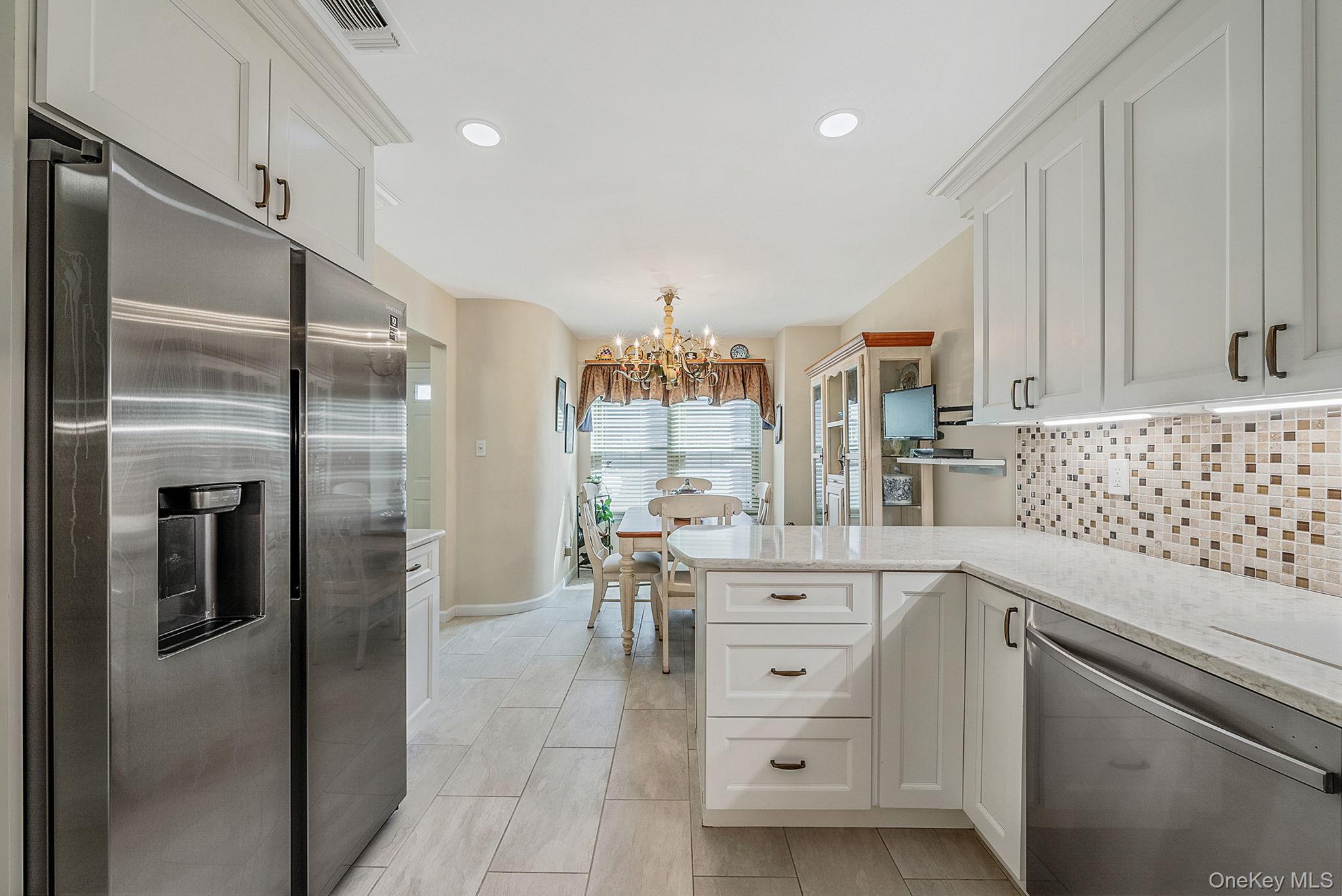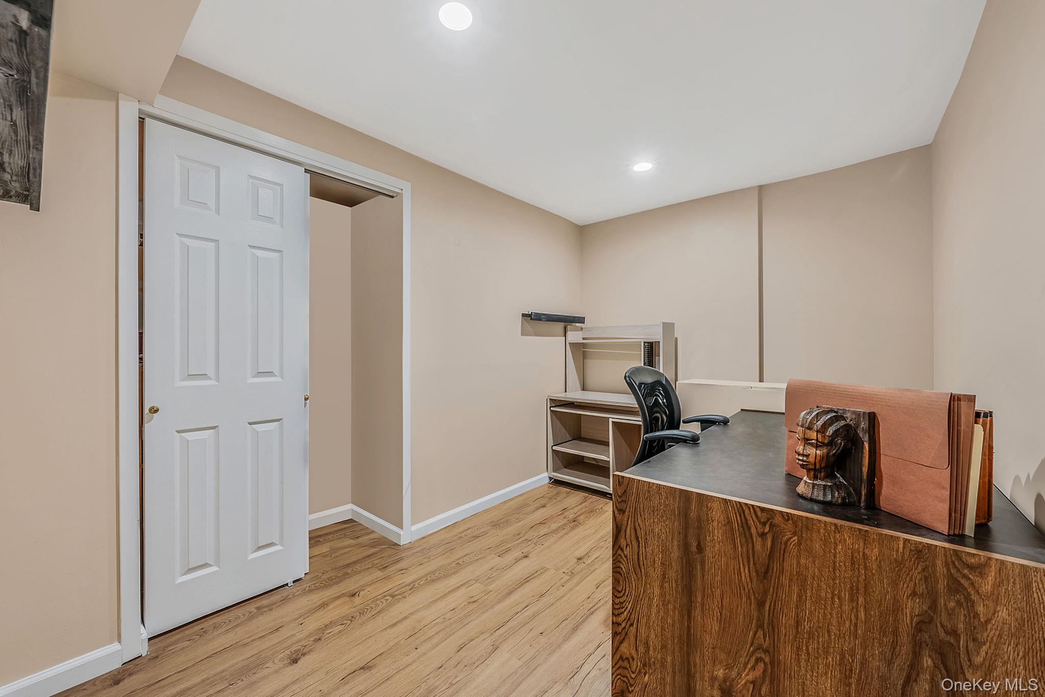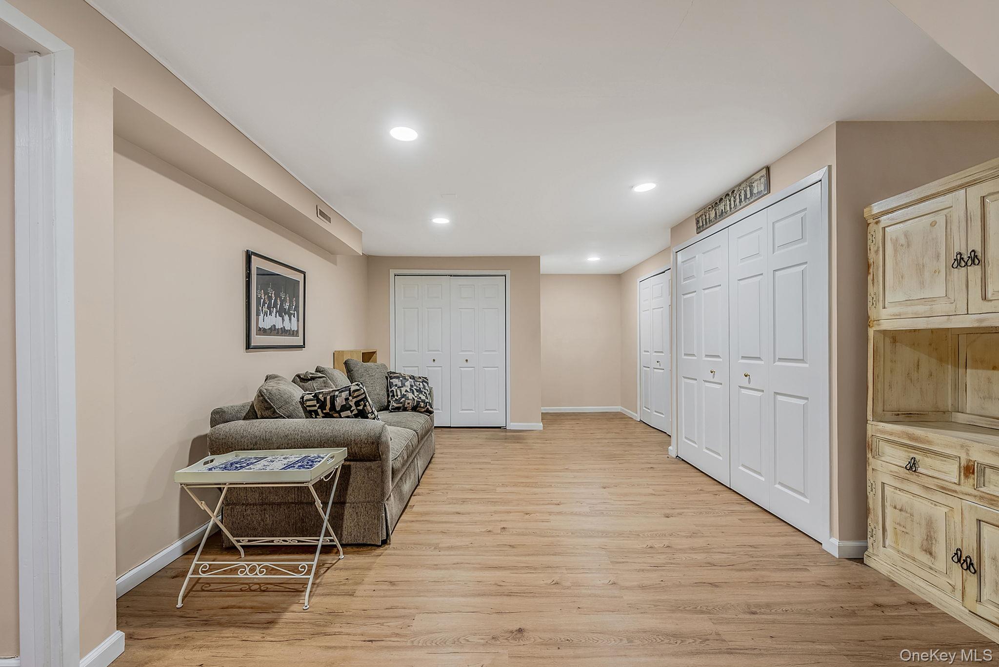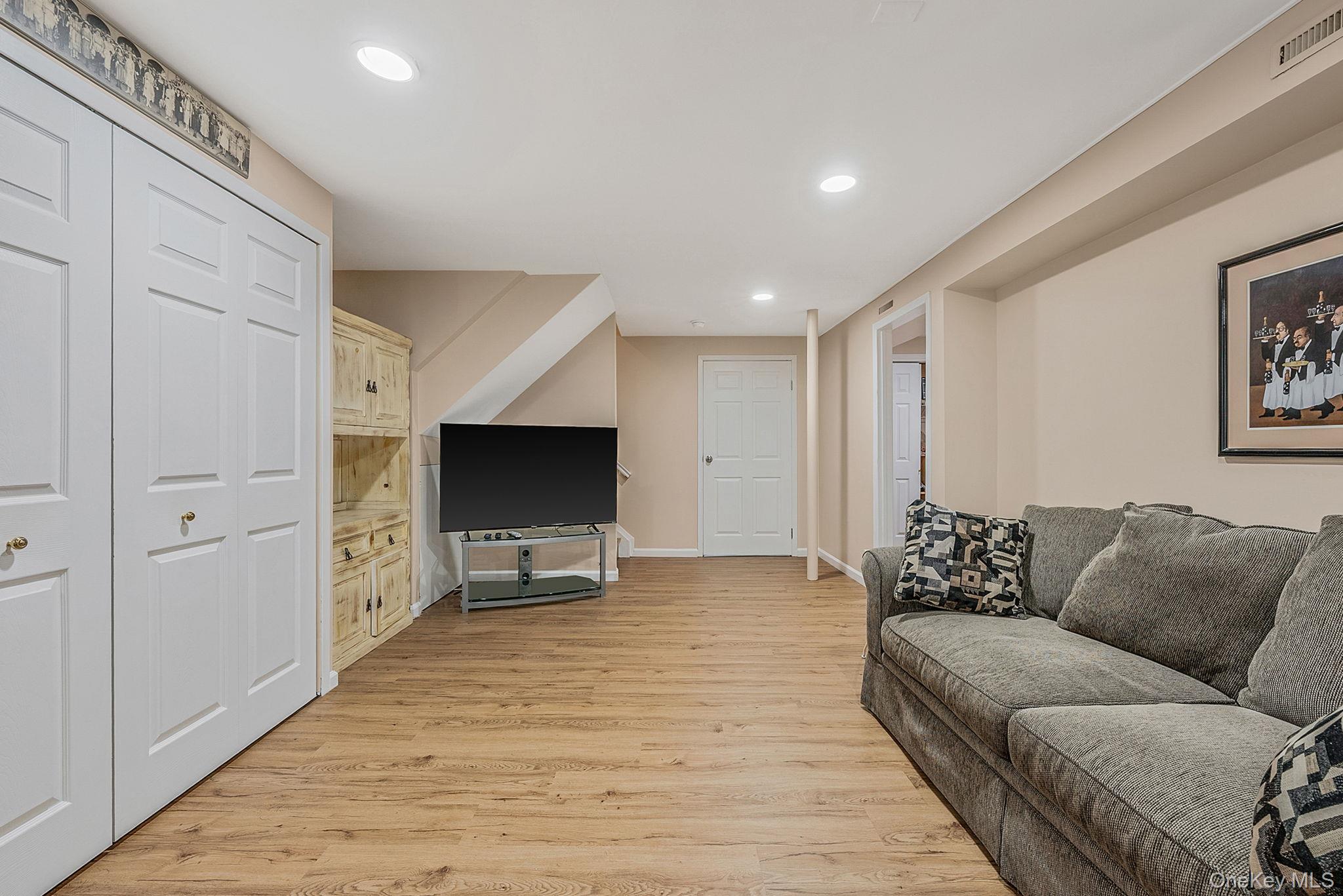Oceanside - Brower Oakview Condominium - Beautiful 3-bedroom, 2. 5 bath townhouse offering a spacious and inviting layout. The updated kitchen features quartz countertops, stainless steel appliances, and a bright dining area. Enjoy a sun-filled living room with soaring ceilings, a skylight, cozy fireplace, and sliding doors leading to a private patio and small backyard - perfect for relaxing or entertaining. The first floor includes a convenient half bath and a primary bedroom with its own full en-suite bath. Upstairs, you will find two generously sized bedrooms, a full bath and double closets and a walk in closet in the hallway. A charming open landing overlooks the living room below, enhancing the home's open airy feel. The partially finished basement adds valuable living space, currently used as a den, with a washer and dryer, plus a separate room as a home office. An additional large unfinished area offers excellent potential to customize and expand. A wonderful blend of comfort, space, and flexibility-don't miss this opportunity!