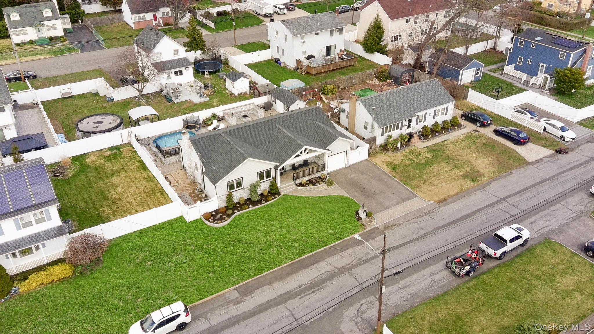 Turnkey and beautifully upgraded, this 3-bedroom ranch in the heart of West Babylon offers the perfect blend of modern design, comfort, and resort-style outdoor living. Inside, you’ll find a thoughtfully renovated interior featuring a stylish updated kitchen, open-concept living spaces, and central air for year-round comfort. The home has been upgraded to gas and includes a 200-amp electric panel. Major improvements including a new roof, gutters, and windows provide added value and peace of mind. The layout offers flexibility with a dedicated office that can easily serve as a fourth bedroom, radiant heated floors, a full attic, and abundant storage throughout. A fully finished basement expands your living space—perfect for a guest suite, gym, or entertainment area, already equipped with a workshop space. Equipped with a Vivint alarm system, full security camera system, and pre-wiring for an outdoor entertainment setup, this home is designed for modern living. Step outside to a private backyard retreat featuring a semi- in-ground pool, outdoor shower, underground sprinklers, and vinyl fencing for added privacy. Custom brickwork, and a charming front porch complete this outdoor oasis—ideal for entertaining or relaxing. With high-end upgrades throughout and a true move-in-ready feel, this home offers exceptional value. Conveniently located near shopping, dining, and major roadways.