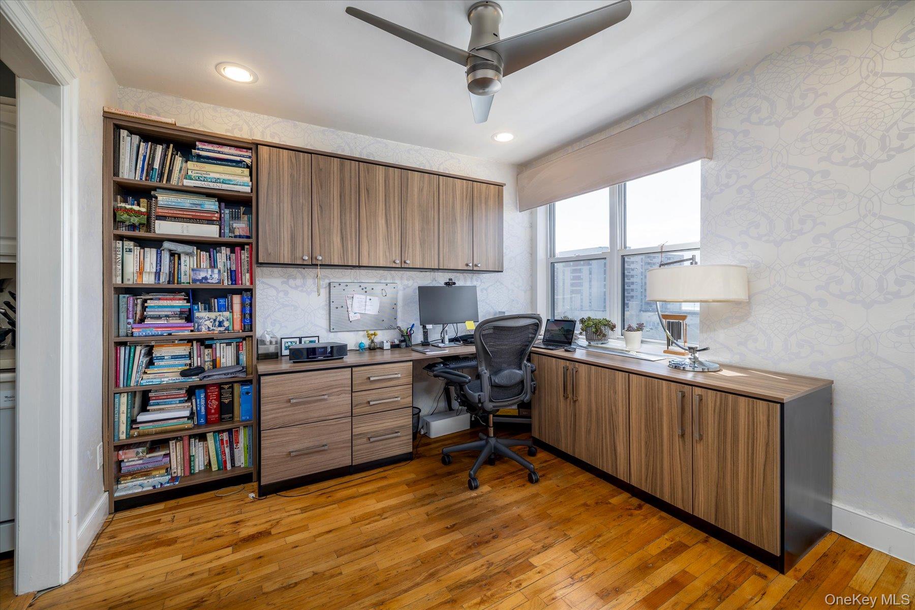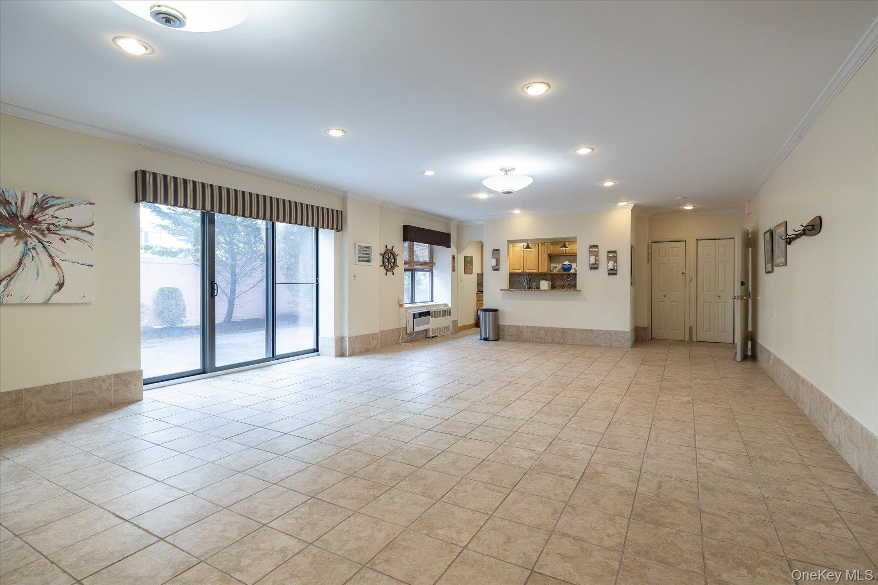 Experience the charm of coastal living in this meticulously maintained, turnkey residence where the ocean serves as your daily backdrop. From the moment you enter, your eyes are drawn to the expansive windows and a private 9 1/2-foot terrace offering front-row seats to ocean breezes, the rhythmic sound of the surf, and Long Beach’s spectacular boardwalk. This Junior 4 is a versatile home professionally designed to maximize space and light. The plus room is currently utilized as a custom home office with ocean views, but easily transitions into a nursery or guest room. The interior features light-stained hardwood floors, elegant crown molding, a frosted glass bedroom door and beautiful solid wood doors throughout. The bedroom and living room have new air conditioning units and custom radiator covers. Discreet in wall TV wires are ready for watching movies or the big game. The bathroom has original tile in excellent condition with a deep bathtub. The bedroom is a masterclass in storage, featuring a massive built-in dressing suite with five closets, three cabinets, six drawers, a cabinet for shoes, a custom vanity, and integrated cabinetry. The professionally decorated living and dining areas flow seamlessly into a nice kitchen equipped with everything you need and ample cabinet space. Speaking of storage, the hallway has three closets with built in storage to maximize space. Located just steps from the boardwalk, the building offers a luxury amenity package including a very large indoor heated pool, a party room, a private garden patio with community BBQs, a bike room, laundry rooms on every floor, and a live-in super to help you. Taxes, insurance, heat and water are included in the maintenance and there's a low 10% down payment option. There's a waitlist for parking. This oceanfront dream is as practical as it is beautiful.