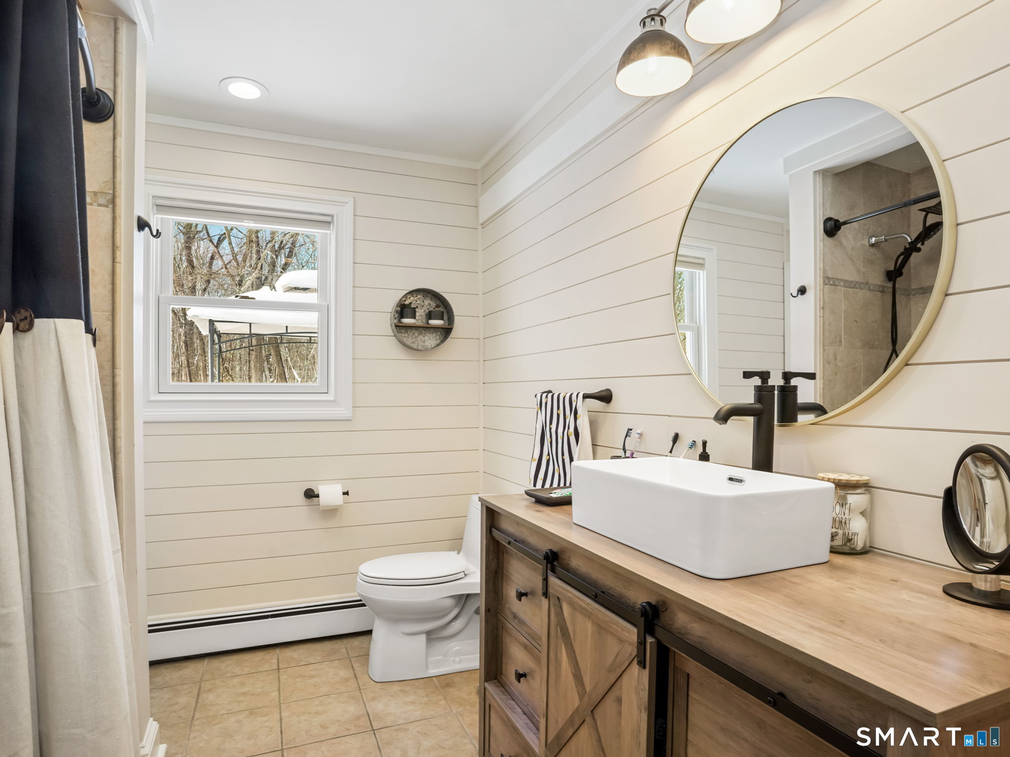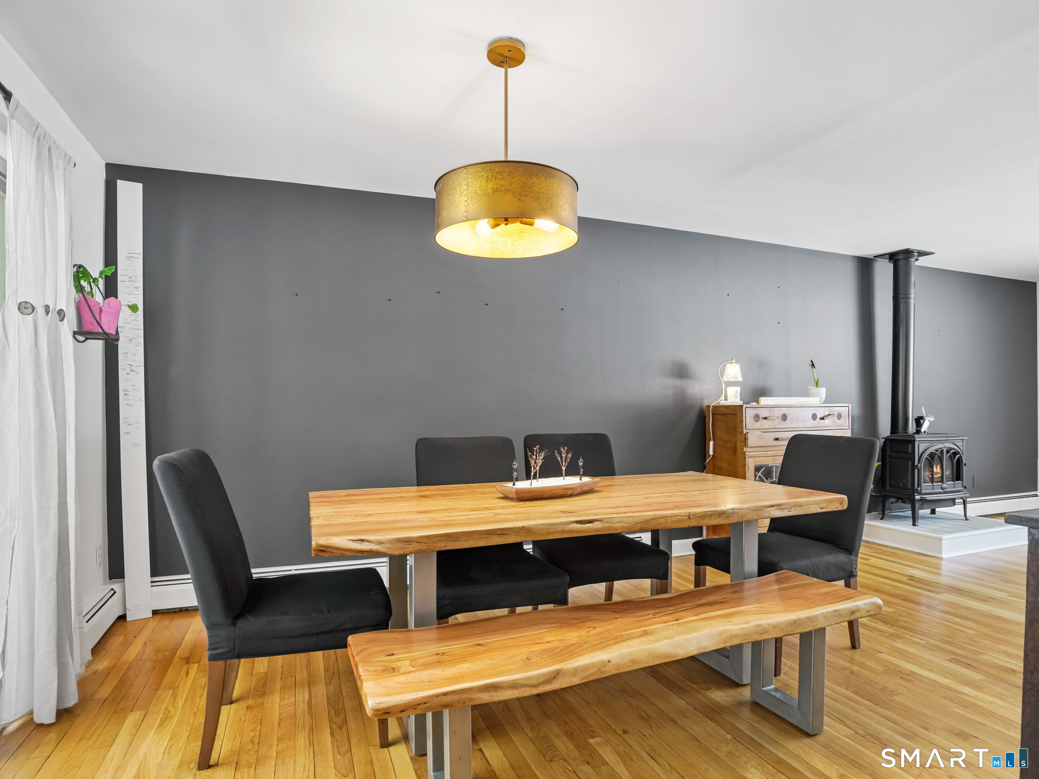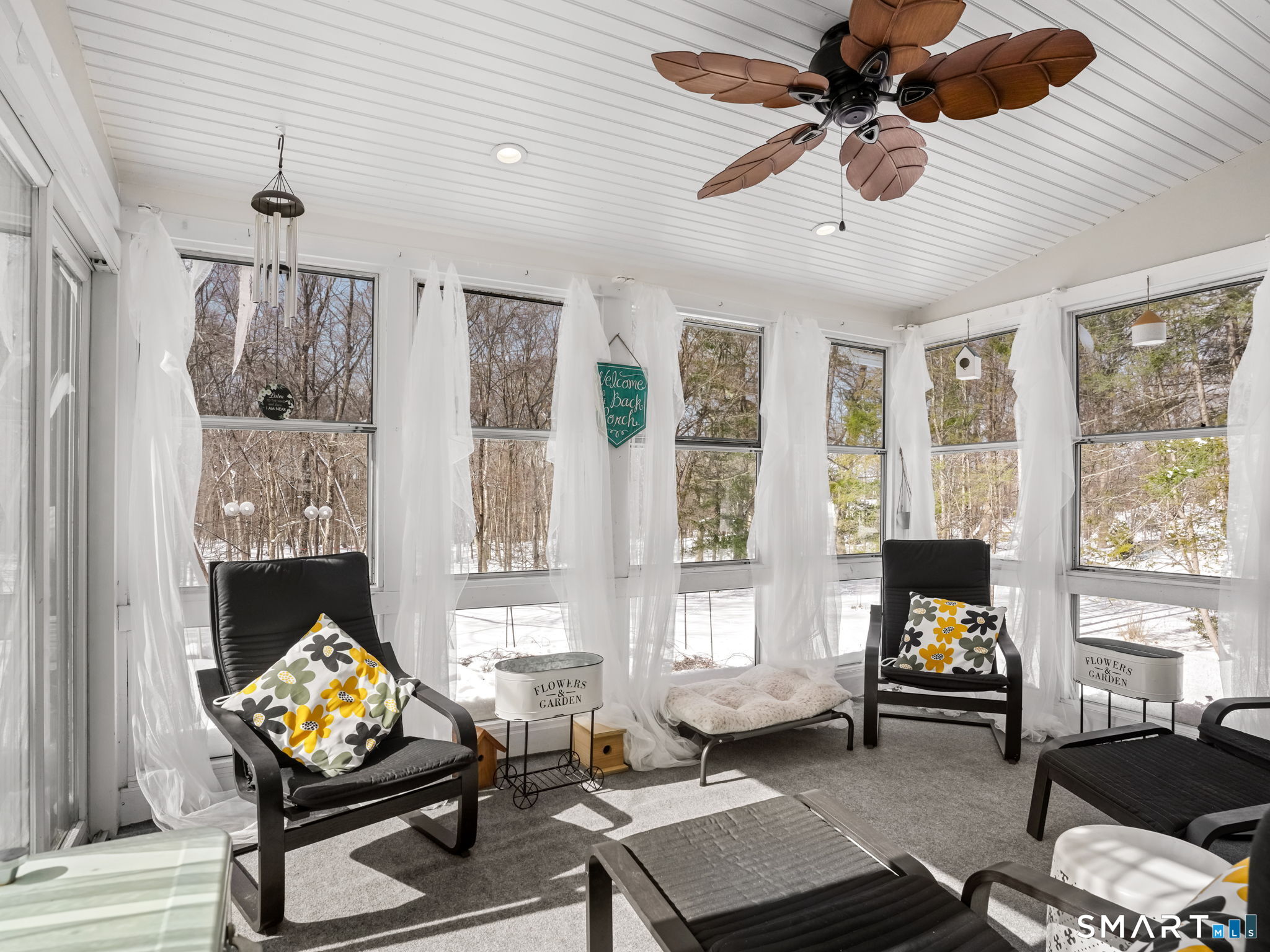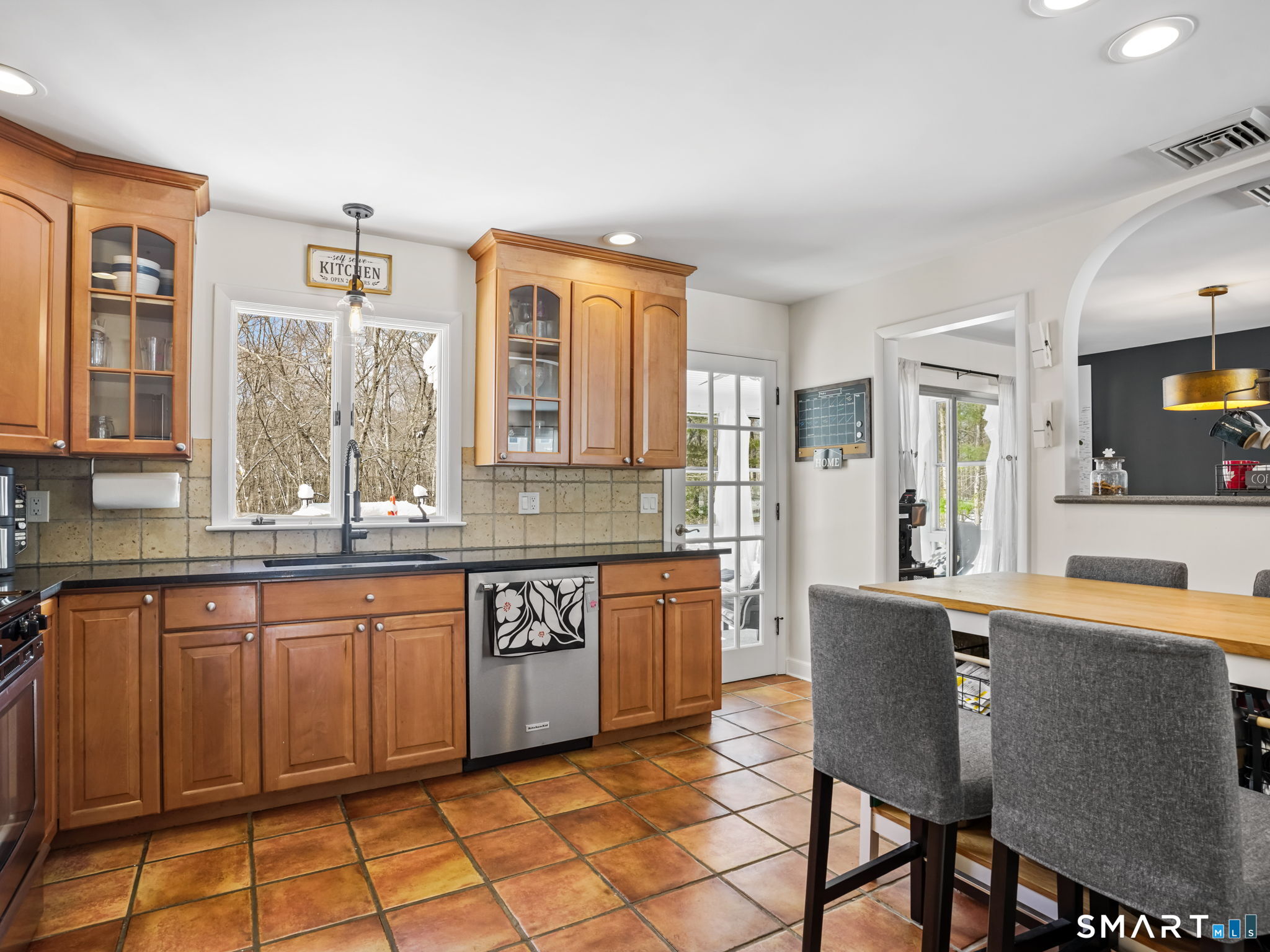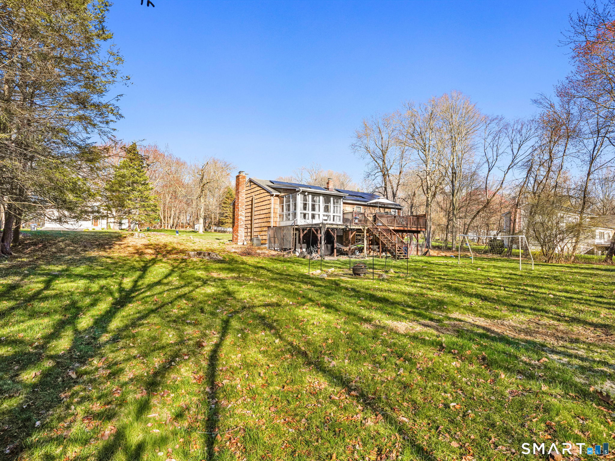 An exceptional opportunity to live in one of Trumbull's sought-after Tashua neighborhoods, set on a beautiful one-acre property backing directly to town-owned open space and the Easton Reservoir, offering impeccable privacy and a truly serene setting. The sun-filled main level is flooded w/ natural light and features hardwood floors. The updated kitchen showcases cabinetry trimmed to the ceiling, stone countertops, and opened half walls that create seamless connectivity, perfect for everyday living and entertaining. A versatile enclosed porch overlooks the picturesque backyard, the perfect spot for morning coffee, quiet afternoons, or seasonal enjoyment while taking in the peaceful setting. The updated main level bathroom features stylish shiplap detailing and a modern vanity, delivering a fresh, on-trend look. A highly efficient fireplace in the main living area. The expansive walk-out lower level offers above-grade windows, a second fireplace with a brick accent wall, a spacious laundry room / updated half bath, providing exceptional additional living space with plenty of natural light. Outdoor living is equally impressive w/ a deck off the main level, plus a patio anchored by a pergola & even an outdoor shower. This backyard is designed to be enjoyed for years to come. Leased solar panels are actively producing and help offset rising electric costs. Inquire for details. All just minutes to Tashua Knolls Golf Course, pools, tennis and basketball courts & parks. Welcome Home!