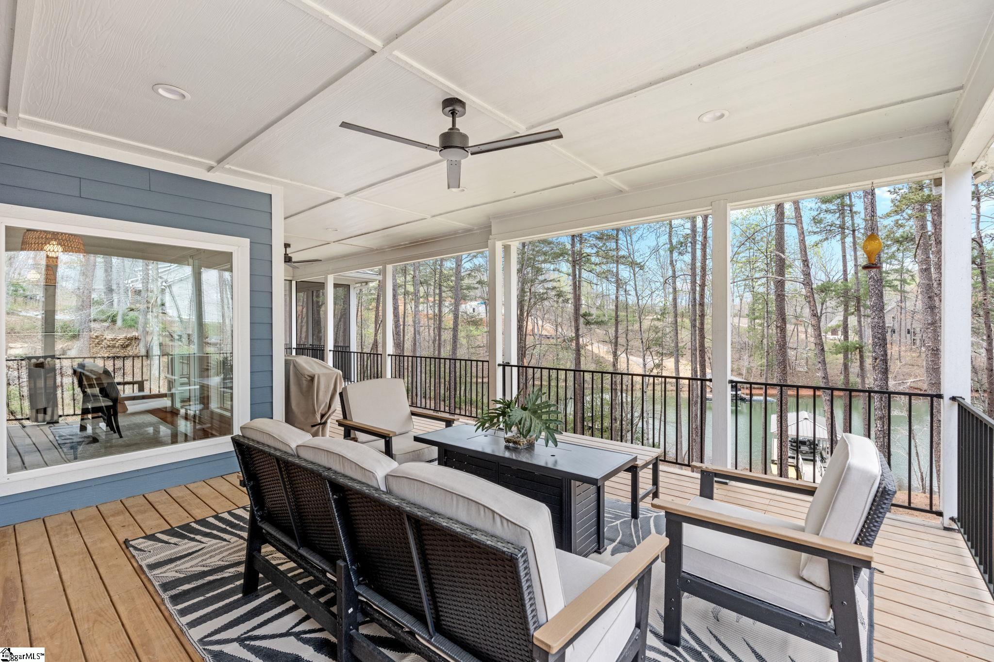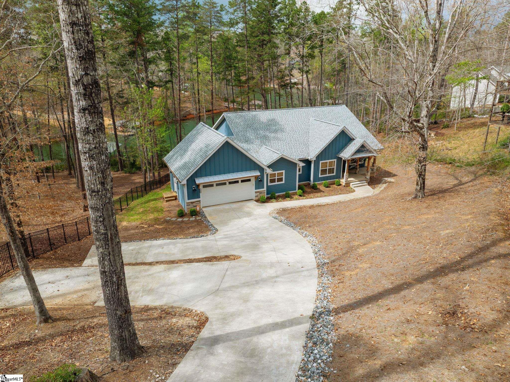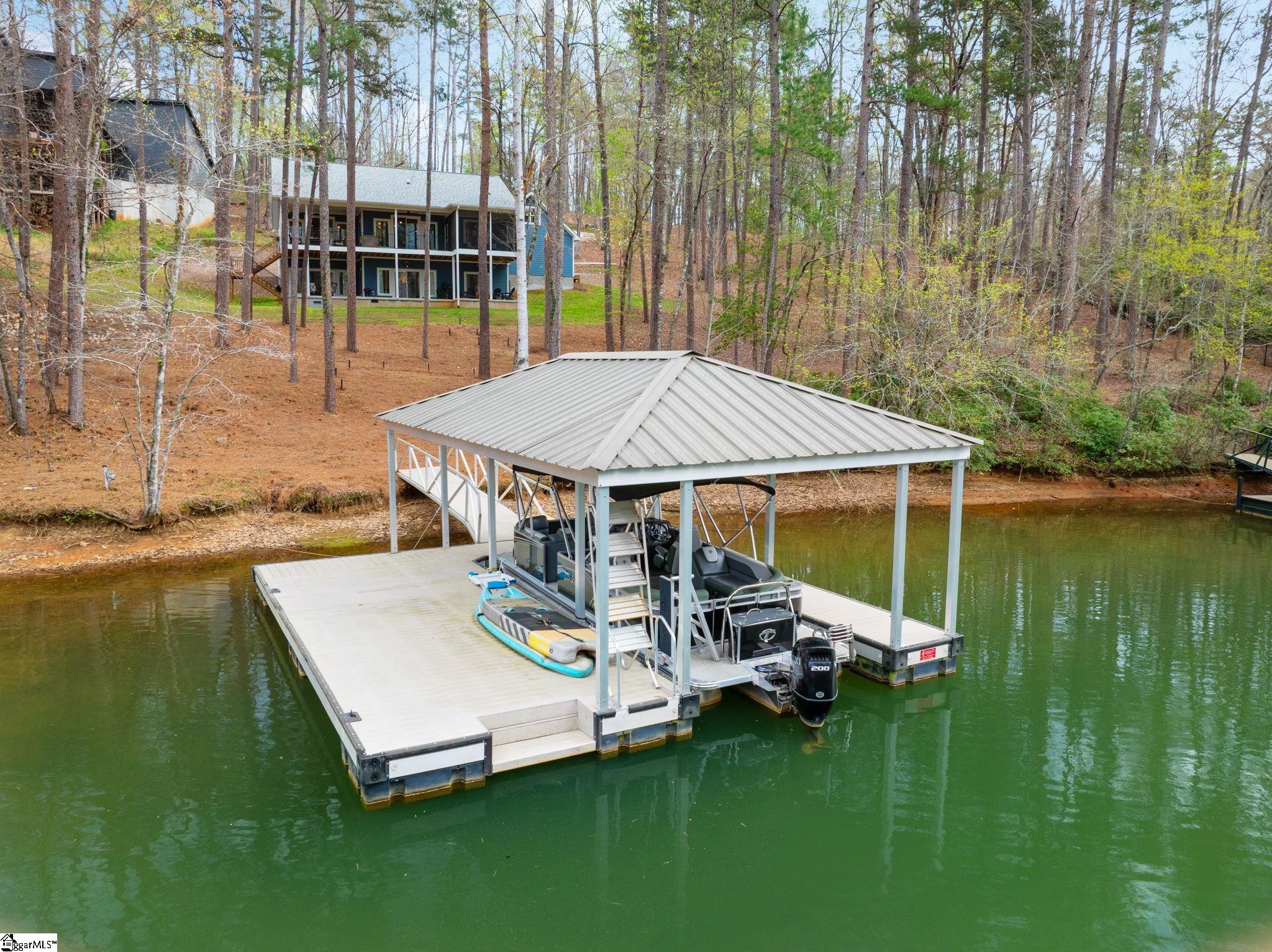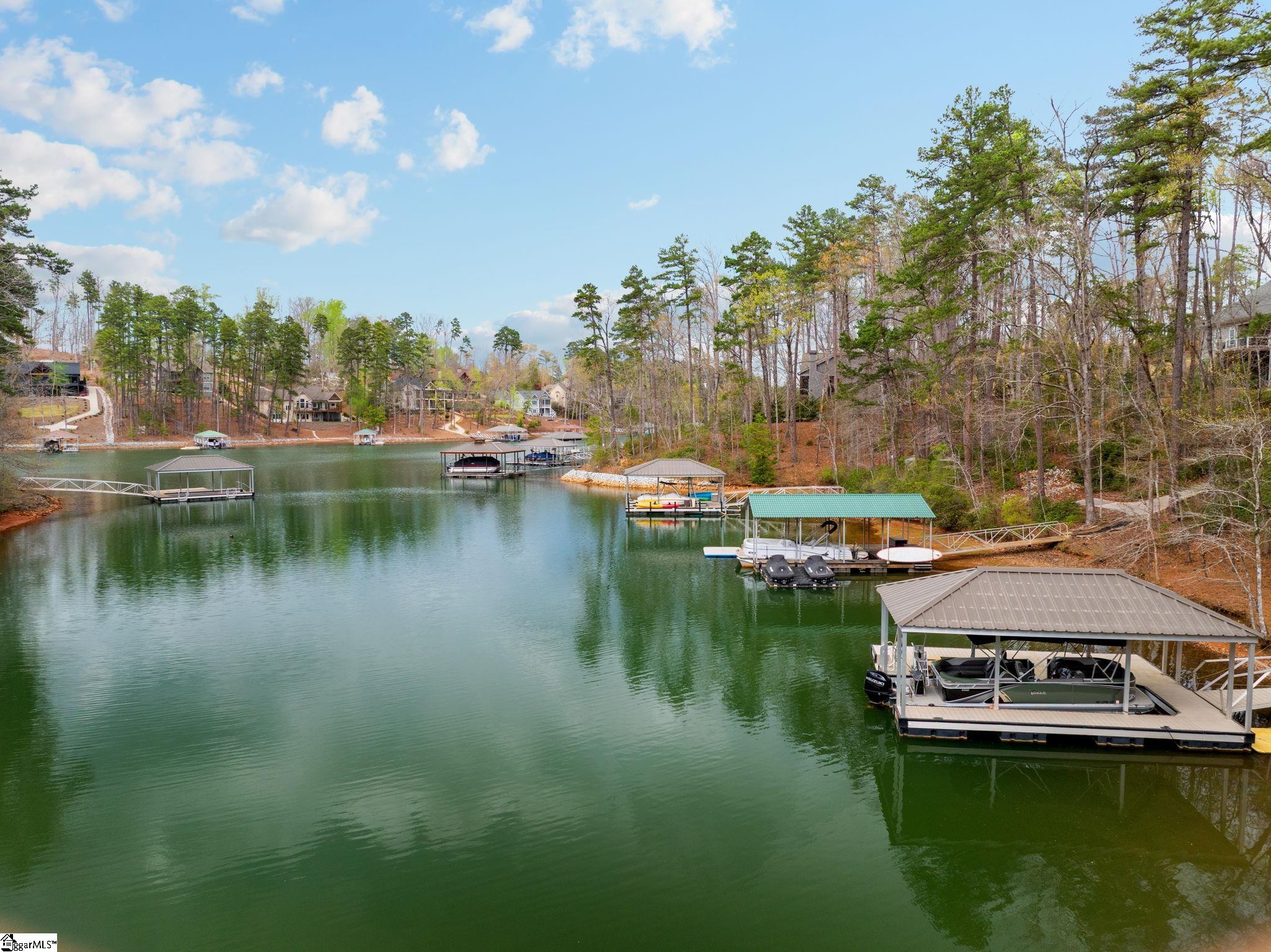 Your Lake Keowee dream home is here! 1408 Cool Ridge Drive in Seneca South Carolina was built in 2021. Situated on over an acre, this stunning waterfront property is perfectly positioned to maximize breathtaking lake views and year round enjoyment. Meticulously maintained, this home remains in like new condition and is exceptionally clean throughout. From the moment you step inside, you are welcomed by panoramic water views, vaulted ceilings, and beautiful wood beams that create the ultimate lakefront ambiance. The open concept design is ideal for entertaining, featuring warm natural finishes, a striking stone gas fireplace, and wide plank pine flooring throughout the main level. The chef’s kitchen is a showstopper with a 9 foot island, farmhouse sink, ample seating, stainless steel appliances, and a 6 burner gas cooktop. A convenient coffee station with a built in wine cooler ensures your favorite beverages are always within reach. The spacious primary suite offers private access to the screened porch along with serene lake views. The en suite bath features a large walk in shower, dual vanities, and a generous walk in closet. An additional bedroom and full bath are also located on the main level, along with a covered porch for relaxing outdoors. Above the garage, you will find an unfinished space perfect for walk in storage or future expansion. The fully finished lower level is designed for entertaining, featuring a large recreation room with custom live edge shelving and plenty of space for game day gatherings. A kitchenette with bar seating, sink, and refrigerator adds convenience. The lower level bedroom is comparable in size to the primary suite and includes direct access to the lower porch with lake views. This level also offers a full bath, flex room, and a bunk room with four twin beds and individual reading lights, perfect for hosting guests. Step outside to the back patio, where you will enjoy easy access to the gently sloping yard. Outdoor features include an outdoor shower, fire pit area, and a full size covered dock with bench seating and EZ steps. Located in a protected cove, the setting is ideal for swimming, kayaking, or simply floating with friends. Located in Harbor Point, one of the few communities on Lake Keowee that allows short term rentals, 1408 Cool Ridge Drive offers the perfect blend of luxury, comfort, and investment potential.