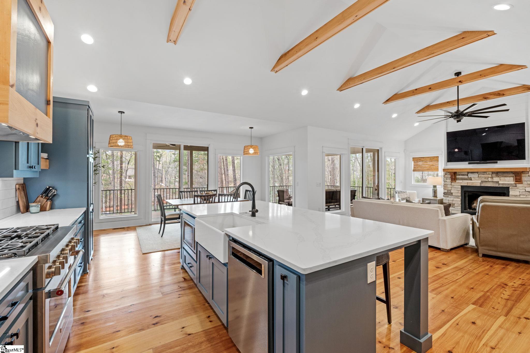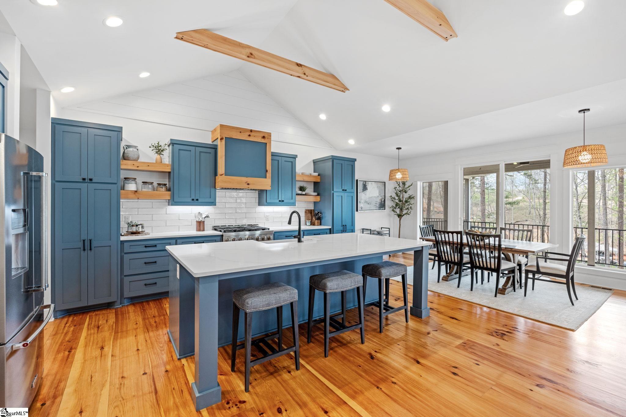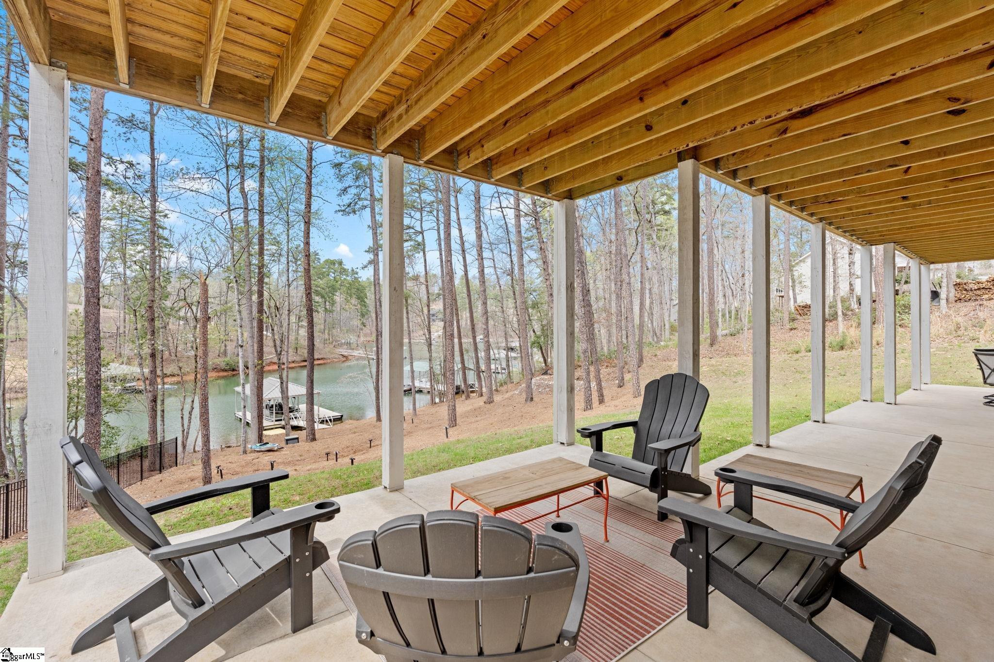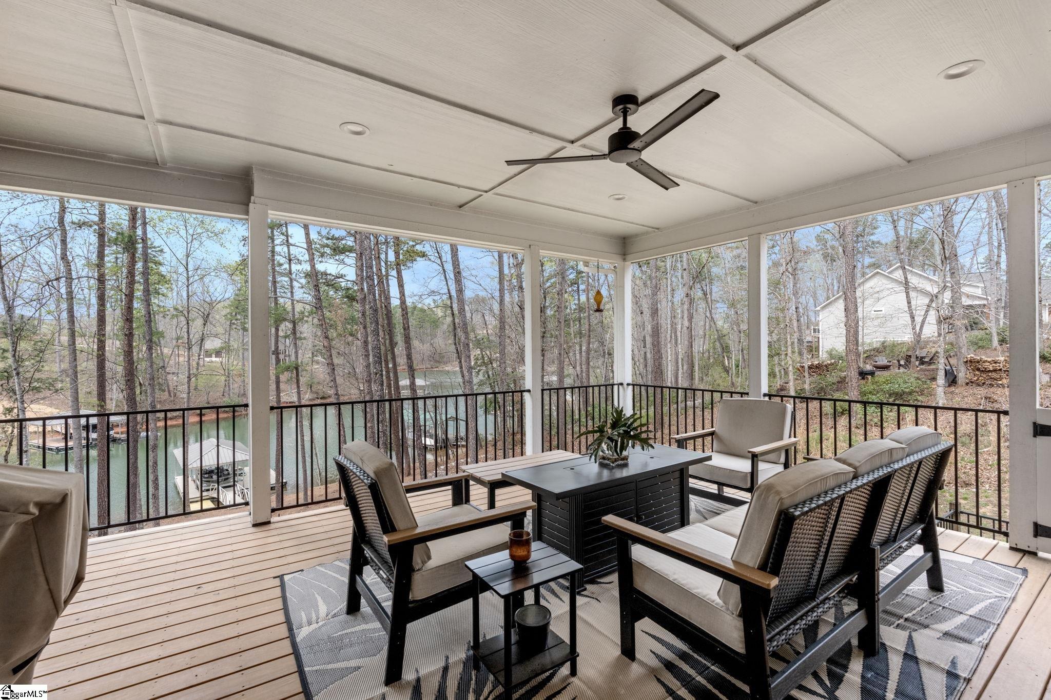 Your Lake Keowee dream home is here! 1408 Cool Ridge Drive in Seneca South Carolina was built in 2021. Situated on over an acre, this stunning waterfront property is perfectly positioned to maximize breathtaking lake views and year round enjoyment. Meticulously maintained, this home remains in like new condition and is exceptionally clean throughout. From the moment you step inside, you are welcomed by panoramic water views, vaulted ceilings, and beautiful wood beams that create the ultimate lakefront ambiance. The open concept design is ideal for entertaining, featuring warm natural finishes, a striking stone gas fireplace, and wide plank pine flooring throughout the main level. The chef’s kitchen is a showstopper with a 9 foot island, farmhouse sink, ample seating, stainless steel appliances, and a 6 burner gas cooktop. A convenient coffee station with a built in wine cooler ensures your favorite beverages are always within reach. The spacious primary suite offers private access to the screened porch along with serene lake views. The en suite bath features a large walk in shower, dual vanities, and a generous walk in closet. An additional bedroom and full bath are also located on the main level, along with a covered porch for relaxing outdoors. Above the garage, you will find an unfinished space perfect for walk in storage or future expansion. The fully finished lower level is designed for entertaining, featuring a large recreation room with custom live edge shelving and plenty of space for game day gatherings. A kitchenette with bar seating, sink, and refrigerator adds convenience. The lower level bedroom is comparable in size to the primary suite and includes direct access to the lower porch with lake views. This level also offers a full bath, flex room, and a bunk room with four twin beds and individual reading lights, perfect for hosting guests. Step outside to the back patio, where you will enjoy easy access to the gently sloping yard. Outdoor features include an outdoor shower, fire pit area, and a full size covered dock with bench seating and EZ steps. Located in a protected cove, the setting is ideal for swimming, kayaking, or simply floating with friends. Located in Harbor Point, one of the few communities on Lake Keowee that allows short term rentals, 1408 Cool Ridge Drive offers the perfect blend of luxury, comfort, and investment potential.