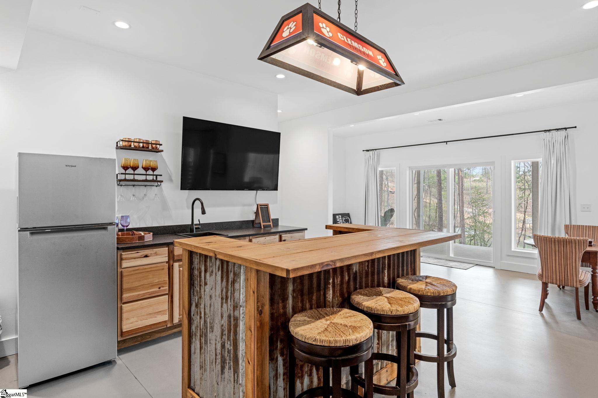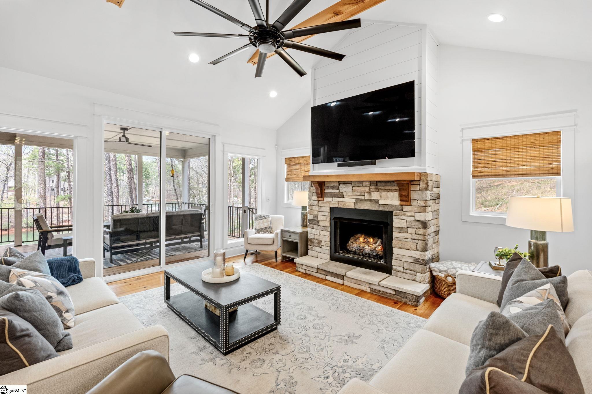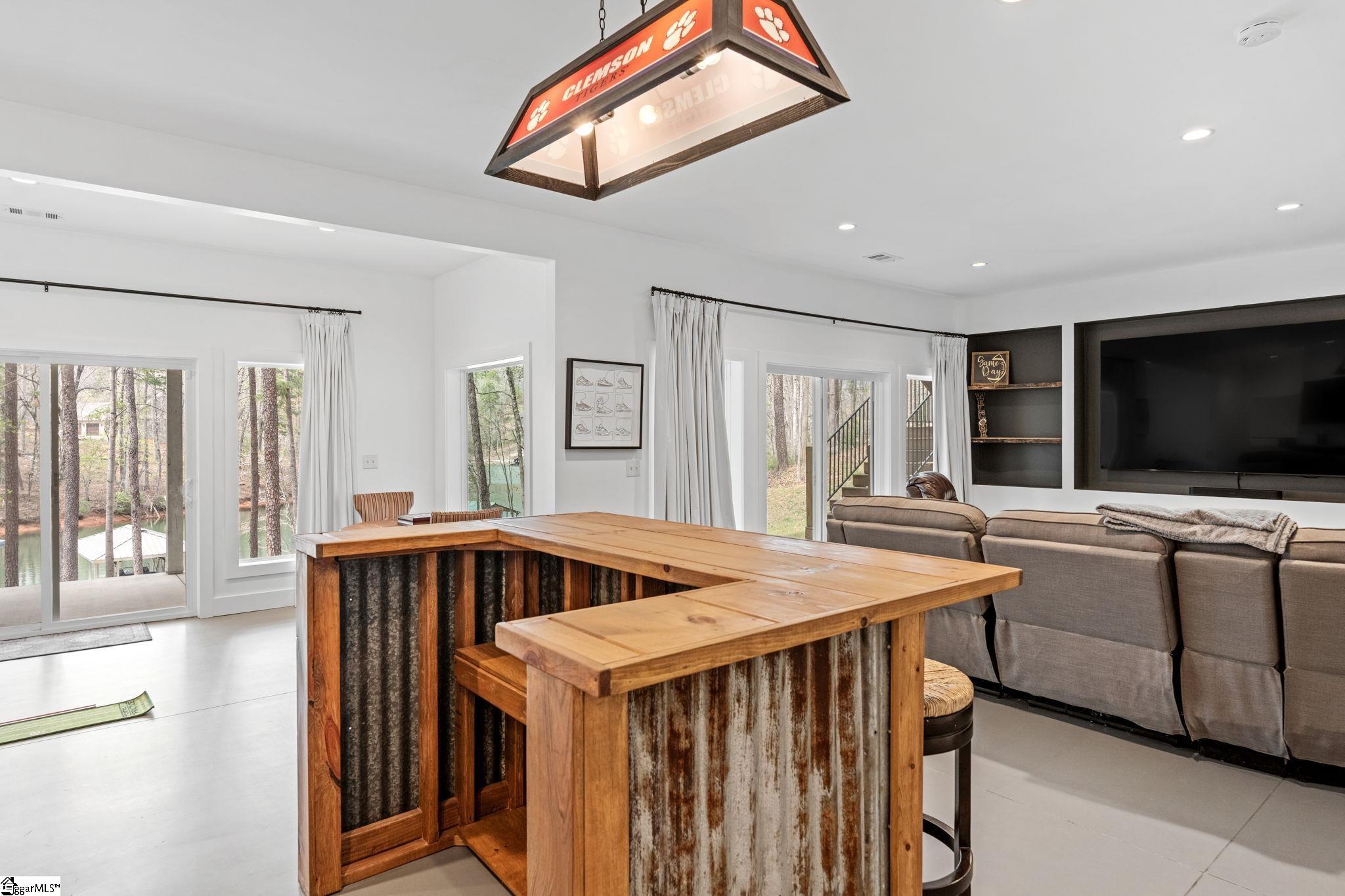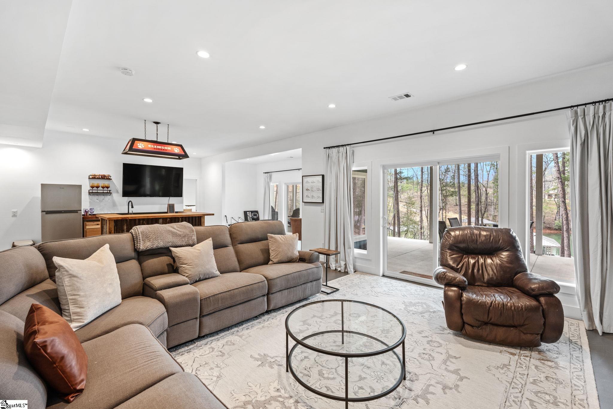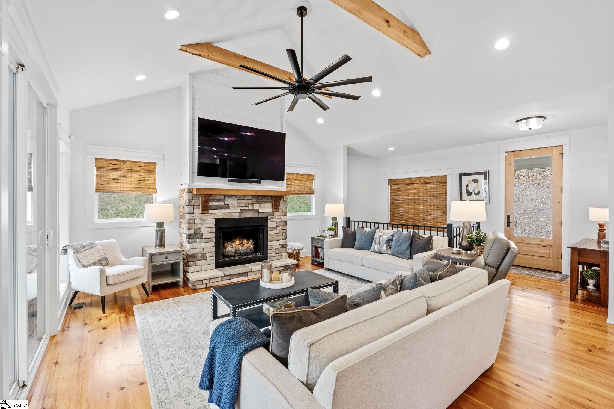 Your Lake Keowee dream home is here! 1408 Cool Ridge Drive in Seneca South Carolina was built in 2021. Situated on over an acre, this stunning waterfront property is perfectly positioned to maximize breathtaking lake views and year round enjoyment. Meticulously maintained, this home remains in like new condition and is exceptionally clean throughout. From the moment you step inside, you are welcomed by panoramic water views, vaulted ceilings, and beautiful wood beams that create the ultimate lakefront ambiance. The open concept design is ideal for entertaining, featuring warm natural finishes, a striking stone gas fireplace, and wide plank pine flooring throughout the main level. The chef’s kitchen is a showstopper with a 9 foot island, farmhouse sink, ample seating, stainless steel appliances, and a 6 burner gas cooktop. A convenient coffee station with a built in wine cooler ensures your favorite beverages are always within reach. The spacious primary suite offers private access to the screened porch along with serene lake views. The en suite bath features a large walk in shower, dual vanities, and a generous walk in closet. An additional bedroom and full bath are also located on the main level, along with a covered porch for relaxing outdoors. Above the garage, you will find an unfinished space perfect for walk in storage or future expansion. The fully finished lower level is designed for entertaining, featuring a large recreation room with custom live edge shelving and plenty of space for game day gatherings. A kitchenette with bar seating, sink, and refrigerator adds convenience. The lower level bedroom is comparable in size to the primary suite and includes direct access to the lower porch with lake views. This level also offers a full bath, flex room, and a bunk room with four twin beds and individual reading lights, perfect for hosting guests. Step outside to the back patio, where you will enjoy easy access to the gently sloping yard. Outdoor features include an outdoor shower, fire pit area, and a full size covered dock with bench seating and EZ steps. Located in a protected cove, the setting is ideal for swimming, kayaking, or simply floating with friends. Located in Harbor Point, one of the few communities on Lake Keowee that allows short term rentals, 1408 Cool Ridge Drive offers the perfect blend of luxury, comfort, and investment potential.