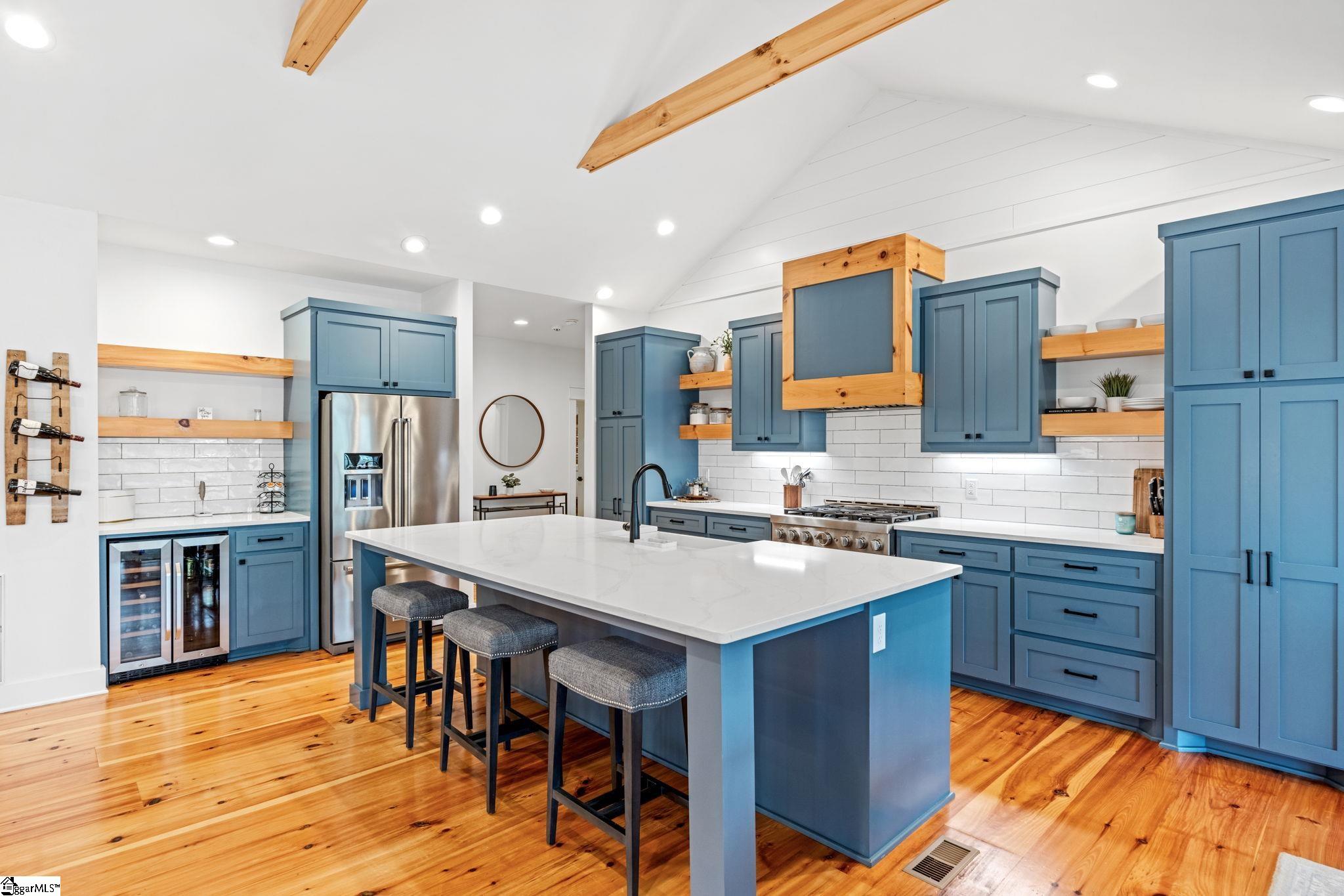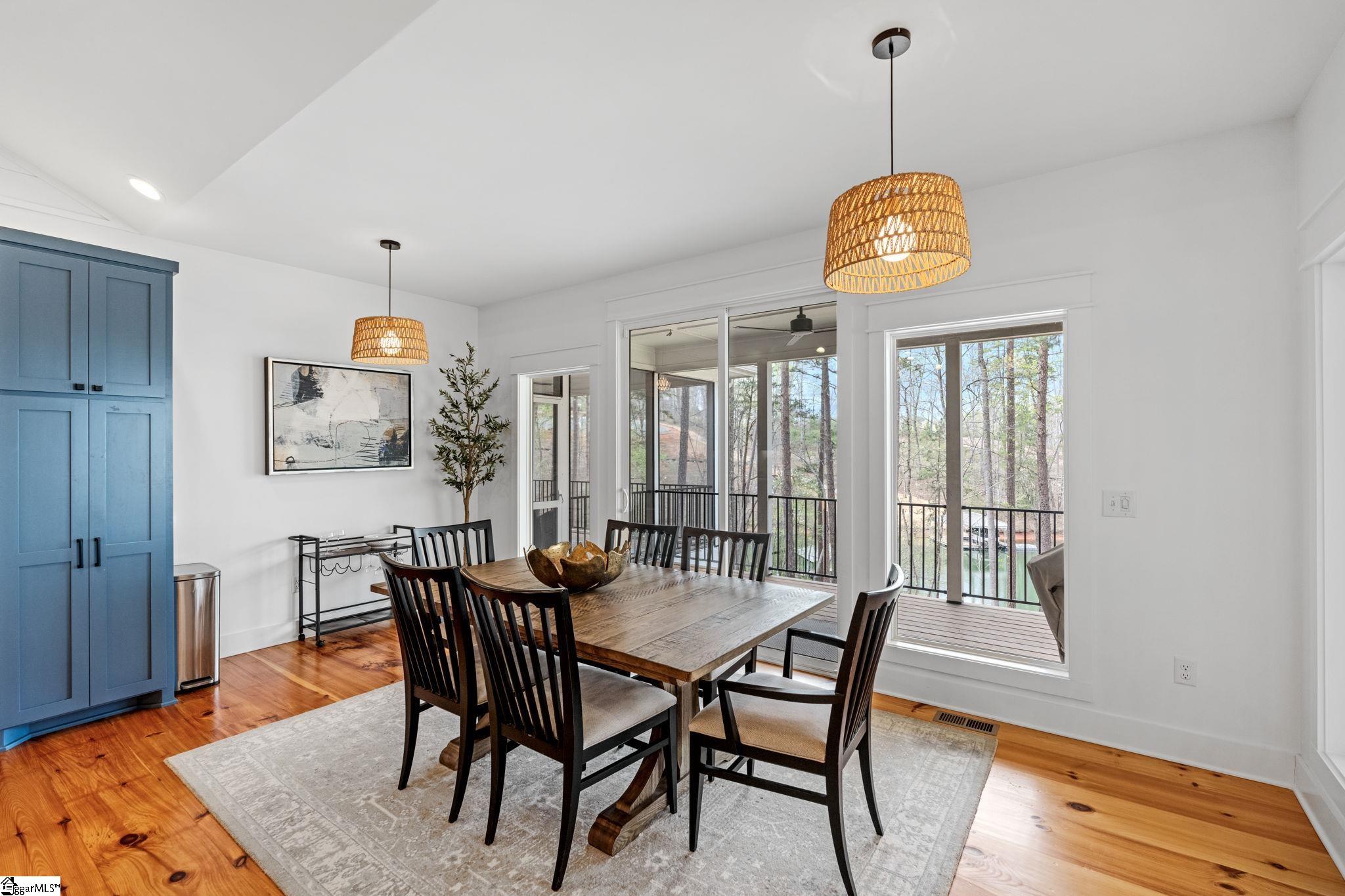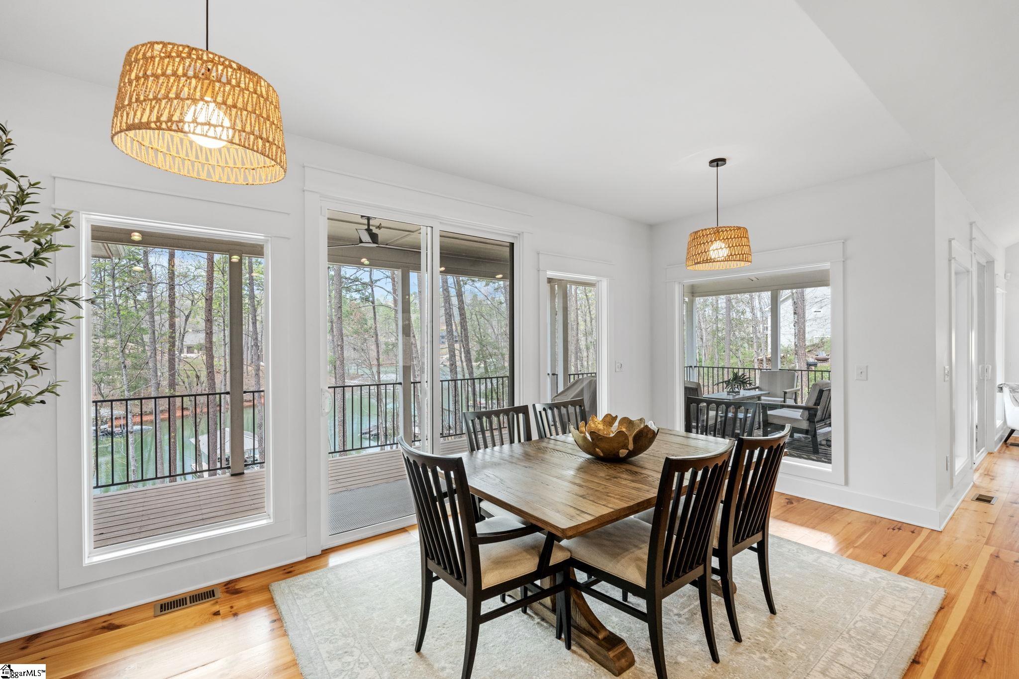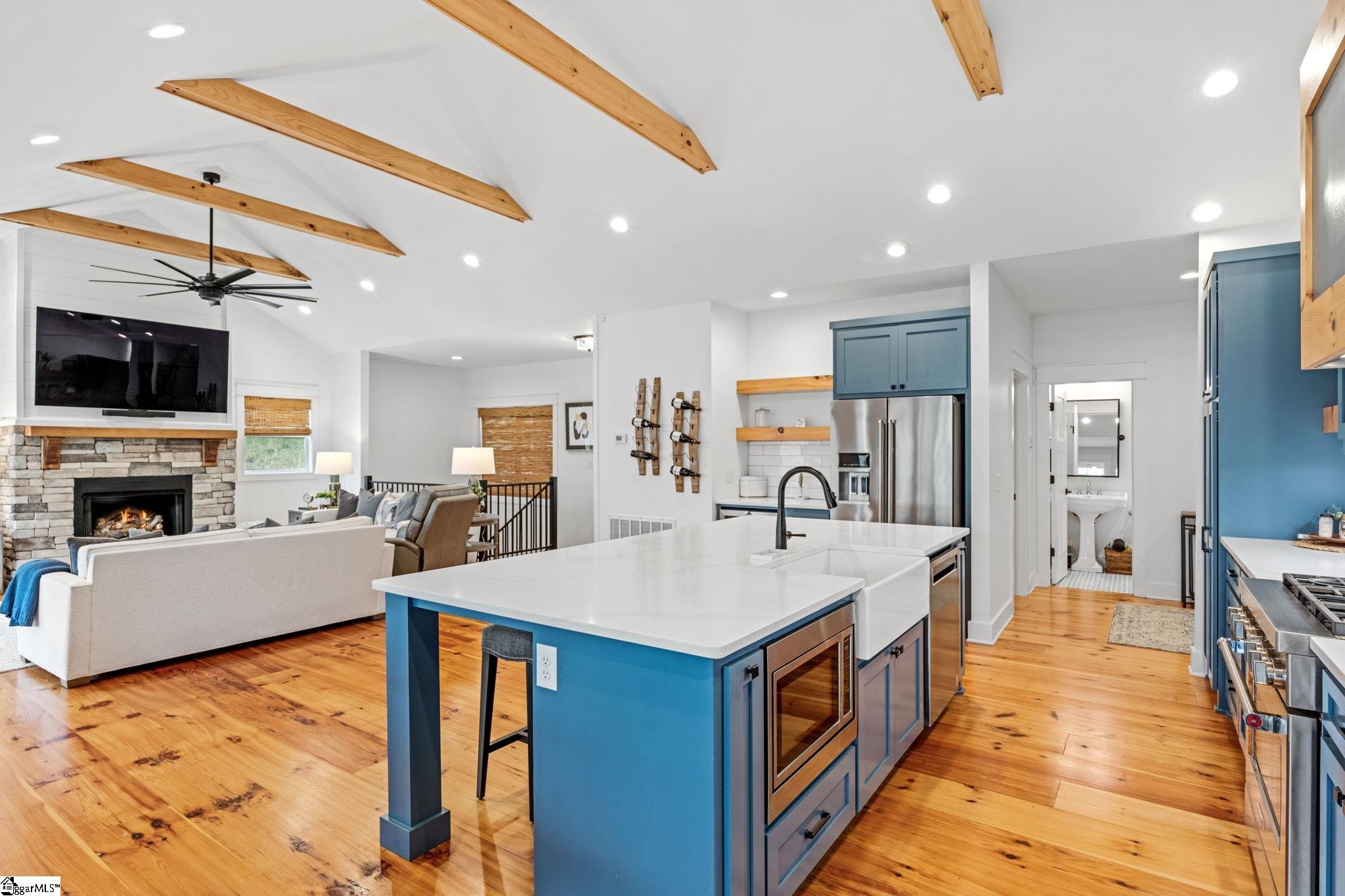 Your Lake Keowee dream home is here! 1408 Cool Ridge Drive in Seneca South Carolina was built in 2021. Situated on over an acre, this stunning waterfront property is perfectly positioned to maximize breathtaking lake views and year round enjoyment. Meticulously maintained, this home remains in like new condition and is exceptionally clean throughout. From the moment you step inside, you are welcomed by panoramic water views, vaulted ceilings, and beautiful wood beams that create the ultimate lakefront ambiance. The open concept design is ideal for entertaining, featuring warm natural finishes, a striking stone gas fireplace, and wide plank pine flooring throughout the main level. The chef’s kitchen is a showstopper with a 9 foot island, farmhouse sink, ample seating, stainless steel appliances, and a 6 burner gas cooktop. A convenient coffee station with a built in wine cooler ensures your favorite beverages are always within reach. The spacious primary suite offers private access to the screened porch along with serene lake views. The en suite bath features a large walk in shower, dual vanities, and a generous walk in closet. An additional bedroom and full bath are also located on the main level, along with a covered porch for relaxing outdoors. Above the garage, you will find an unfinished space perfect for walk in storage or future expansion. The fully finished lower level is designed for entertaining, featuring a large recreation room with custom live edge shelving and plenty of space for game day gatherings. A kitchenette with bar seating, sink, and refrigerator adds convenience. The lower level bedroom is comparable in size to the primary suite and includes direct access to the lower porch with lake views. This level also offers a full bath, flex room, and a bunk room with four twin beds and individual reading lights, perfect for hosting guests. Step outside to the back patio, where you will enjoy easy access to the gently sloping yard. Outdoor features include an outdoor shower, fire pit area, and a full size covered dock with bench seating and EZ steps. Located in a protected cove, the setting is ideal for swimming, kayaking, or simply floating with friends. Located in Harbor Point, one of the few communities on Lake Keowee that allows short term rentals, 1408 Cool Ridge Drive offers the perfect blend of luxury, comfort, and investment potential.