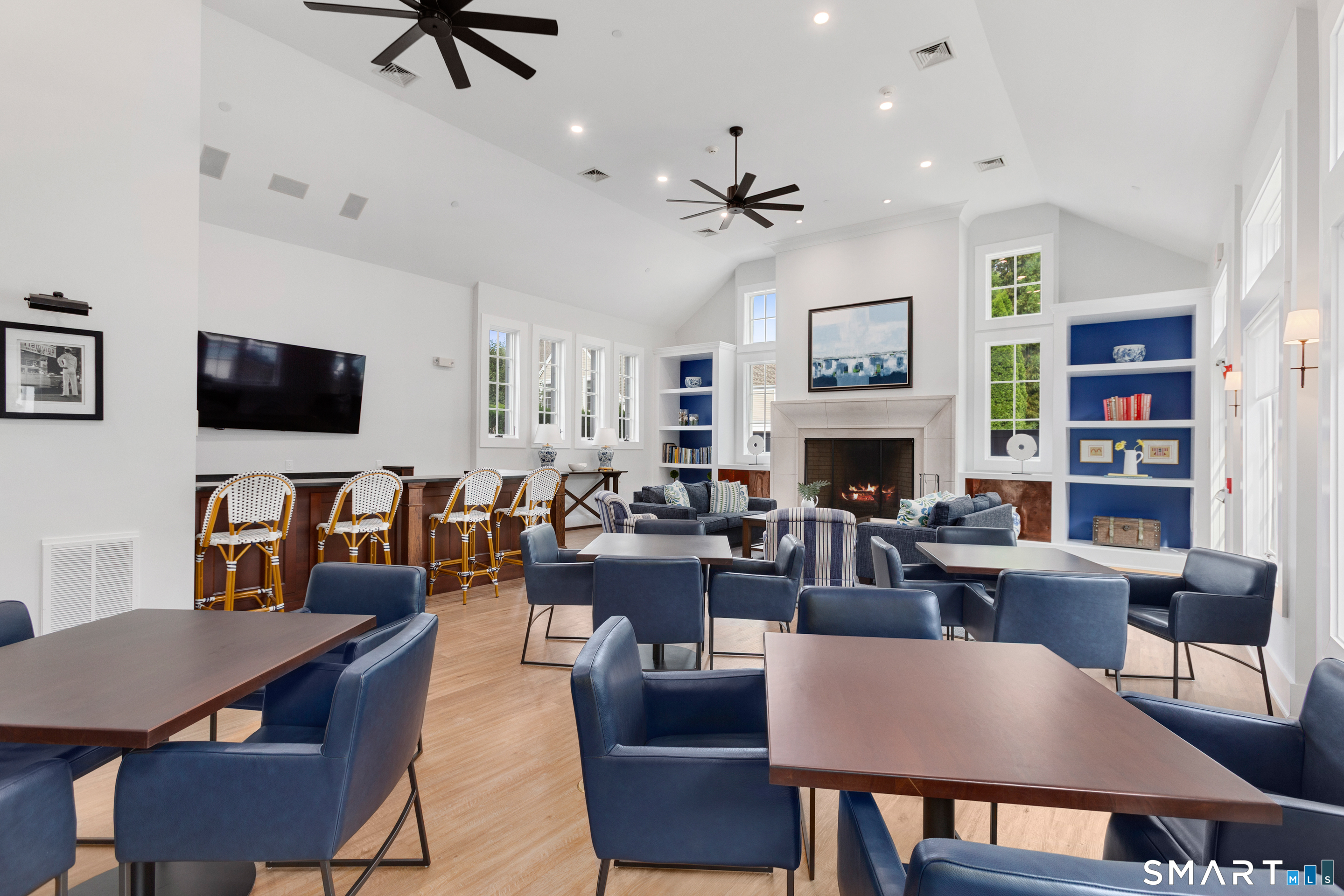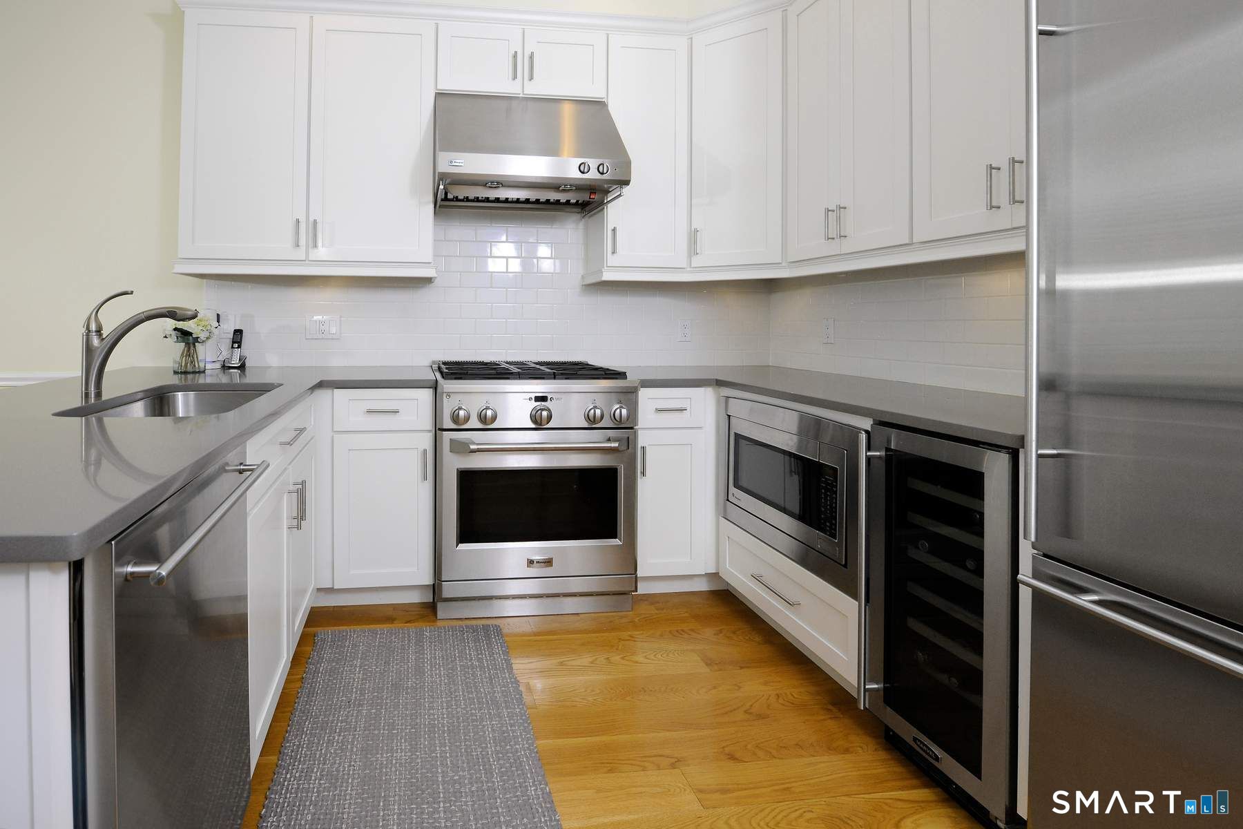 LOCATION! This pristine and sun filled townhouse is in the gated Palmer Hill Association located on the Old Greenwich/Stamford townline. Enter this lovely home at the ground level complete with bedroom/den/home office and full bath. French doors lead to the private patio. The main level offers a gourmet eat-in kitchen with custom cabinets, quartz counters, SS appliances, wine/beverage cooler, and a half bath. The light-filled, open-plan living/dining room comes with a gas fireplace, sound system and custom lighting. Two bedrooms and marble bath make up the second floor. Moldings and hardwood floors are found throughout this fabulous home. Additionally, enjoy the resort like amenities of a gym, pool, business center and community/party room located at the Palmer Hill Clubhouse. Snow removal of driveway, walkway and patio included.