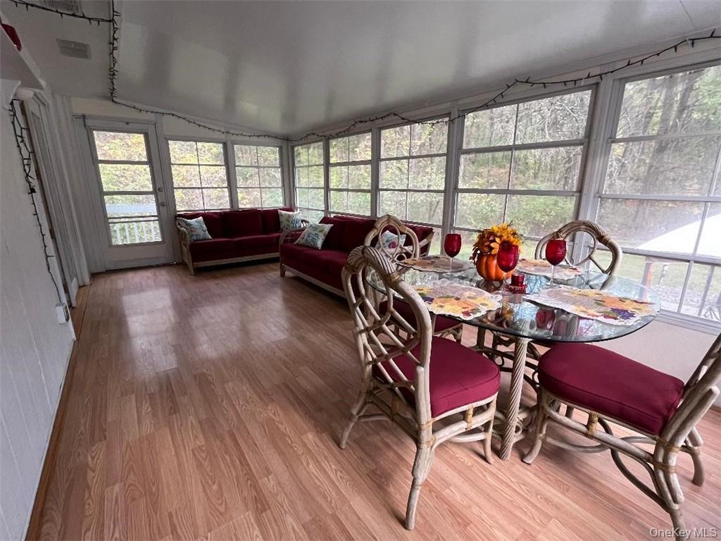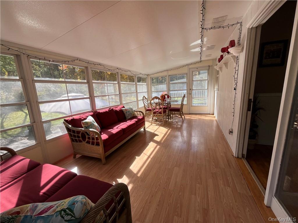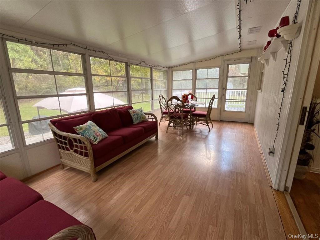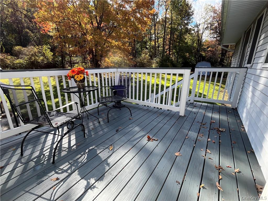 Looking for privacy, yet close to highways, shopping and transit. Look no further. Welcome to your new home on 3 private parklike acres. Spotless, lovingly maintained home featuring spacious open floor plan. Main level offering hardwood floors, large living room with cathedral ceilings, gas fireplace, built ins, eat in kitchen with quartz counters, stainless steel appliances and a formal dining room. Step out onto your 200 square foot 3 seasonal porch and enjoy the peaceful backyard without the bugs. Spacious main bedroom with en-suite bath, plus 2 additional bedrooms and full bath to complete the main level. The lower level features a large den, laundry room an office/multi purpose room, and bathroom. 2 car attached garage. Your secluded back yard offers a patio, fire pit for a your outdoor entertaining plus a large shed for extra storage. Quiet no through traffic road. Just a short walk from your driveway will lead to a Orange County's newest park which is in development of turning 258 acres to future recreation including with tennis, pickleball, dog parks, playground, walking trails, ballfields, splash pad, picnic and in addition this will connect to the 18 mile Heritage Trail. All this, plus quick access to Route 17. Under 10 minutes from the Woodbury Commons, LegoLand and within a few minutes from grocery stores, retails stores and schools.