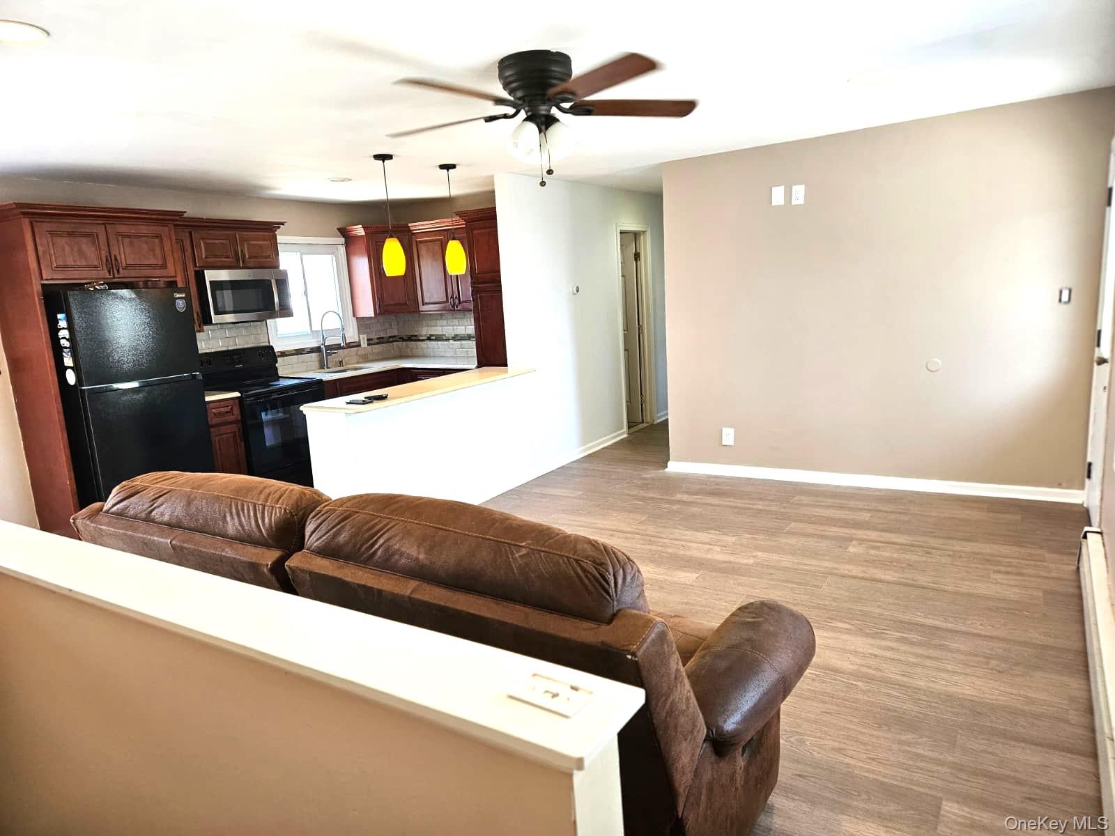 This charming 3-bedroom, 1-bath ranch offers a bright and inviting open-concept layout perfect for comfortable living. The spacious living room features a large bay window that fills the home with natural light. The eat-in kitchen is equipped with quality appliances, beautiful wood cabinetry, quartz countertops, and a convenient breakfast bar—ideal for everyday meals or entertaining. Enjoy easy maintenance with laminate and tile flooring throughout the home. Step outside to a large, fully fenced backyard complete with a cement patio—perfect for outdoor gatherings, relaxation, or play. A wonderful rental opportunity combining comfort, style, and functionality!