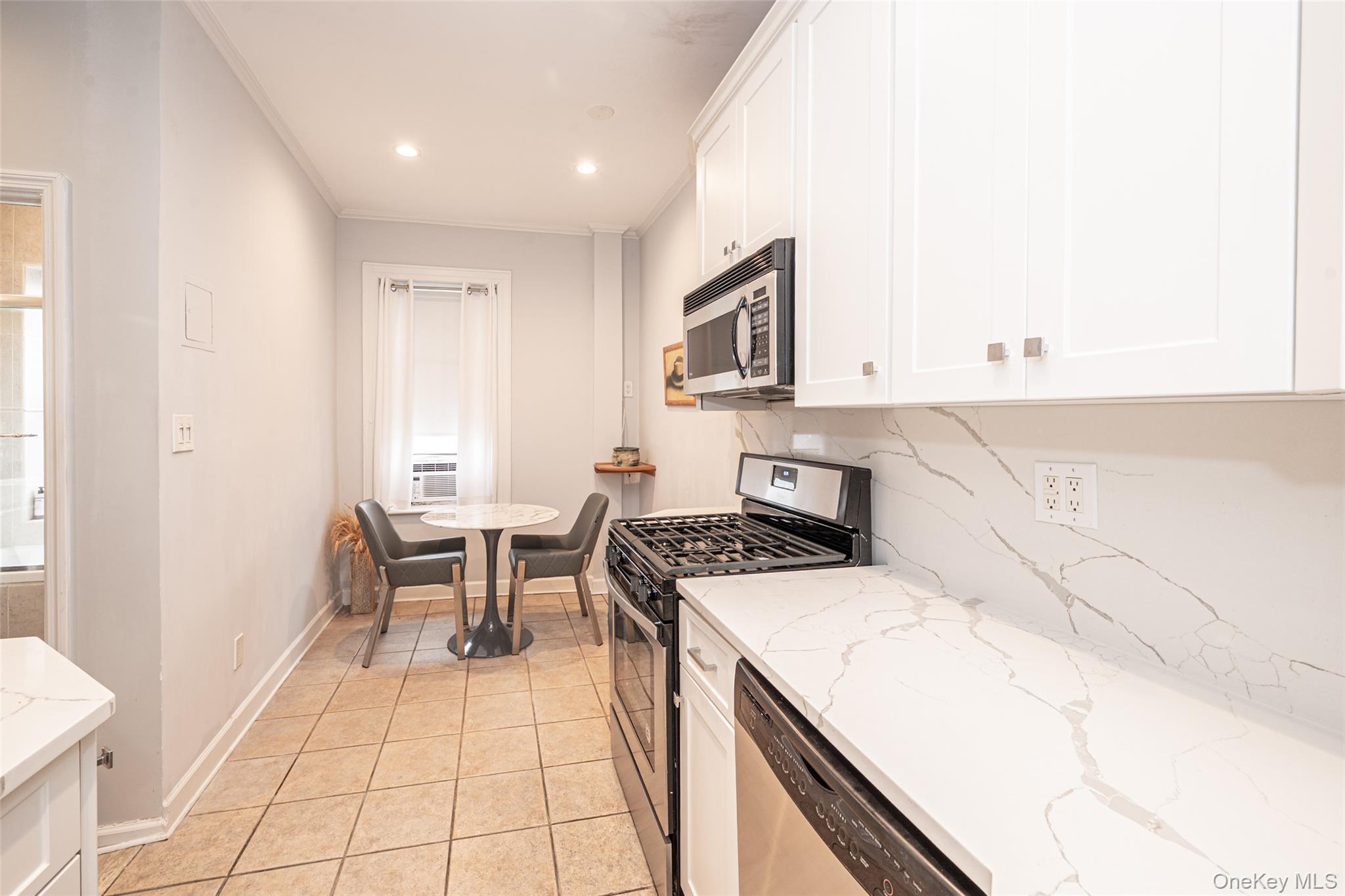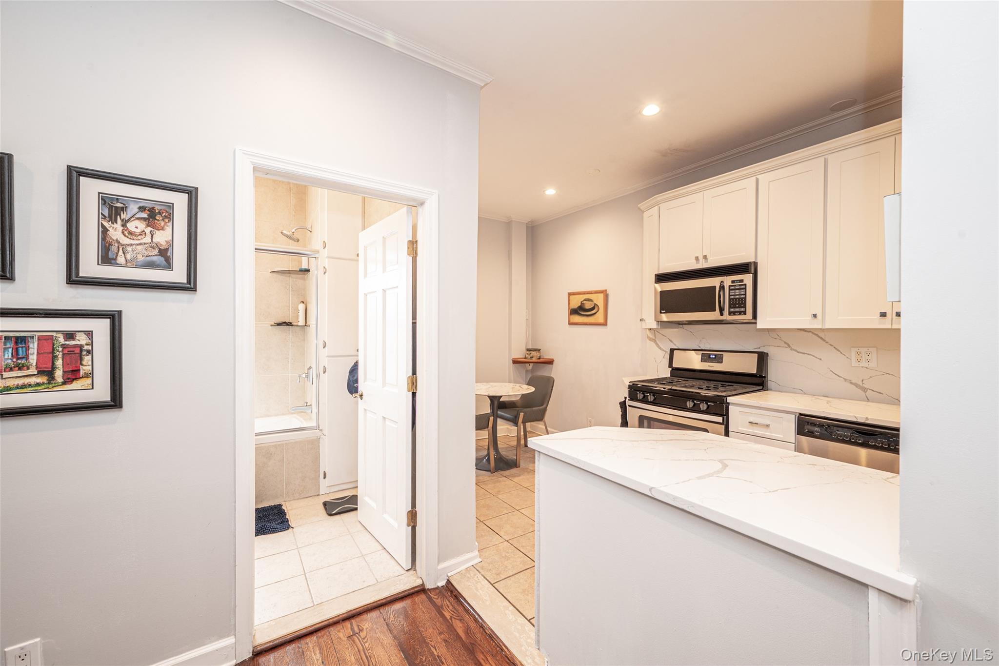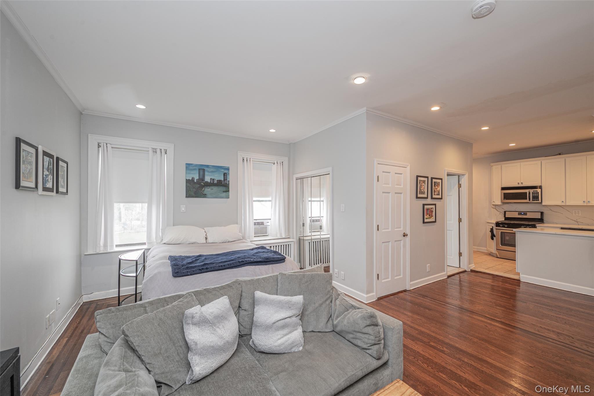 Welcome to this beautifully renovated spacious Alcove Studio in the prestigious village of Thomaston / Great Neck. This Pre-war Charm blends classic character with modern upgrades featuring soaring 9' ceilings and high hat lighting throughout. The sleek upgraded kitchen features white wood cabinetry , gray and white quartz countertops and back splash with stainless appliances. A convenient washer/dryer hookup is also included. Enjoy brand new hardwood floors and stunningly renovated bath complete with Jacuzzi tub for ultimate relaxation. This sunny apartment faces front of building offering scenic views of picturesque multi-million dollar homes. Low Maintenance of 790. 00 includes heat, hot water, storage bin in basement and one outdoor parking spot right near convenient back entrance. Ideally located near town, restaurants, gym, library, schools, worship, and public transportation including the LIRR and N-22 Bus. Also part of the Great Neck Park District which includes pools, tennis, ice skating an more. A MUST SEE! This Apartment has it all!