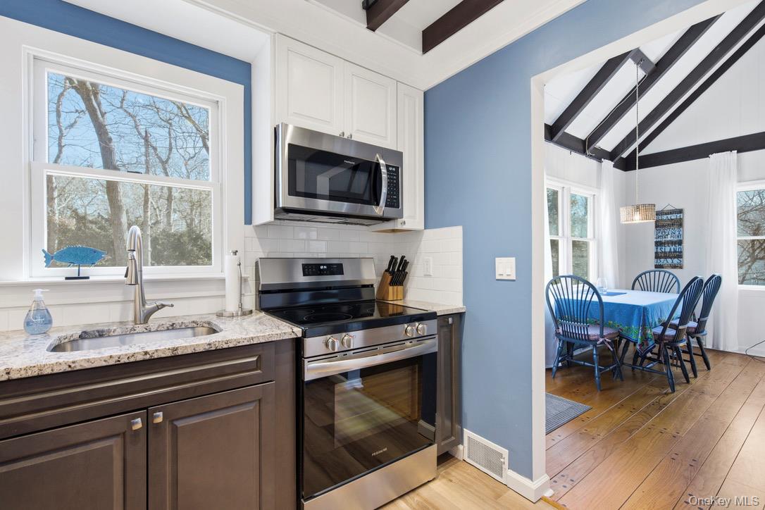 Experience the best of Hampton Bays South in this stunningly renovated 2-bed, 2-bath retreat. Blending "Old Hamptons" soul with 2026's desired luxuries, the home features double-height ceilings, a designer loft/office, and sun-soaked interiors. Enter outside to your own private park-manicured gardens, al fresco dining, and the essential Hamptons outdoor shower. Enjoy the privacy of a quiet coastal street while remaining moments from the ocean and local village favorites. Move-in ready and waiting for your best summer yet.