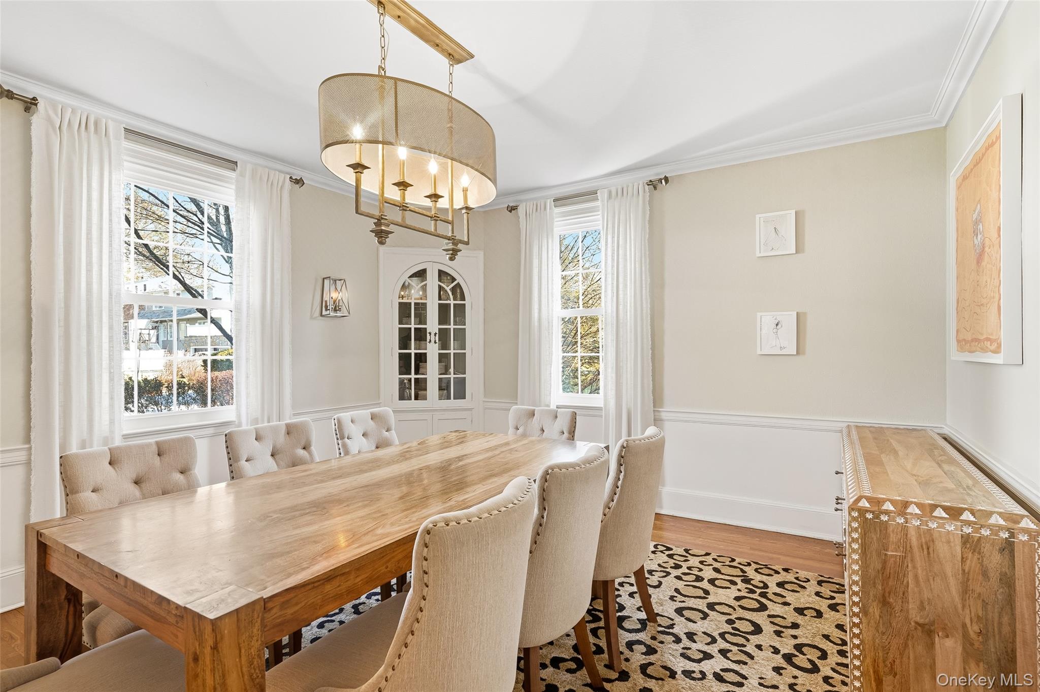 Nestled in the prestigious Edgewood neighborhood of Scarsdale, this exceptional brick Center Hall Colonial embodies timeless elegance and refined living. Located within one of America’s most coveted and affluent villages, renowned for its top-rated schools, charming downtown, boutique shopping, fine dining, and an effortless 35-minute commute to New York City, this residence offers a truly unparalleled lifestyle. A grand and gracious foyer welcomes you into a home rich with character and classic architectural detail. The formal living room is both sophisticated and inviting, featuring a striking marble-front fireplace, custom built-ins, and elegant French doors that enhance the home’s seamless flow. Designed for memorable gatherings, the formal dining room showcases original built-in hutches and an exquisite chandelier, creating the perfect backdrop for entertaining on any scale. The spectacular designer kitchen is a true showpiece, appointed with beautifully curated light blue cabinetry, high-end appliances, statement pendant lighting, and thoughtfully designed spaces including a coffee bar, built-in office nook, and sunlit breakfast area. With direct access to both the backyard and dining room, it is perfectly suited for effortless indoor-outdoor entertaining. A sun-drenched sunroom with walls of windows offers a tranquil retreat, while a guest bedroom on the main level provides comfort and flexibility. Upstairs, four generously sized bedrooms provide serene accommodations, including a luxurious primary suite complete with a sitting area, walk-in closets, and a spa-like ensuite bath. The lower level is equally impressive, offering a spacious great room, a temperature-controlled wine cellar for the discerning collector, a dedicated fitness room, and a separate laundry area, all with direct access to the garage. The outdoor setting is nothing short of enchanting, a private sanctuary designed for both relaxation and entertaining. A serene Zen-inspired garden, complete with a charming bridge, natural stone elements, and tranquil water features, creates a sense of harmony and escape. The grounds offer a dreamlike backdrop, blending beauty and tranquility to provide the ultimate outdoor living experience. This is a rare opportunity to own a distinguished home that perfectly blends classic charm with modern luxury in one of Westchester’s most sought-after communities.