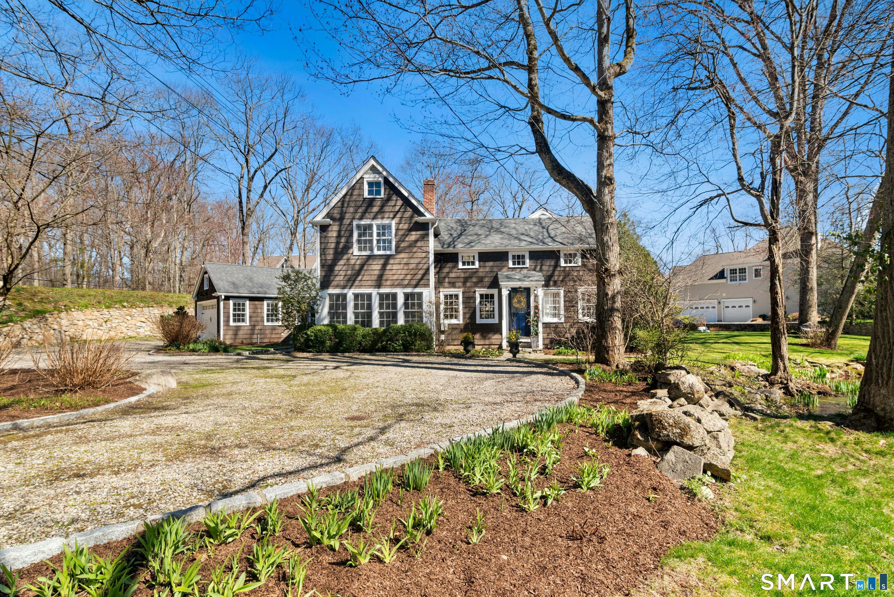 MULTIPLE OFFERS HAVE BEEN RECEIVED - SELLER IS REQUESTING ALL OFFERS BE SUBMITTED BY MONDAY, APRIL 20 AT 8PM. Filled with natural light from large, plentiful windows and featuring two fireplaces, this lovely 3-5 bedroom, 2-bath home blends authentic New England character with thoughtful updates in a peaceful pondside setting close to town and schools. Originally an 1800s home that was carefully deconstructed and rebuilt at its current location in 1952, the property retains beautiful antique details, including historic wood paneling and charming architectural elements. Inviting living spaces include a spacious family room addition and a second-floor sitting area. Flexible bonus rooms offer options for a nursery, home office, guest or au pair space, or potential primary-suite expansion. Main-level laundry, mudroom/office, attached garage, and central A/C provide everyday convenience. Set on a serene 0. 80-acre lot, the property features multiple outdoor living areas for entertaining and relaxing, including a welcoming front porch, a firepit gathering space, and seating areas overlooking the picturesque pond and seasonal brook. Spring brings blooming daffodils and irises along the water's edge, enhancing the natural beauty of the setting. Backing to a private lane with a warm neighborhood feel and located close to Wilton's town center, schools, and the Norwalk River walking trail, this home offers a rare combination of historic charm, natural beauty, and convenience.