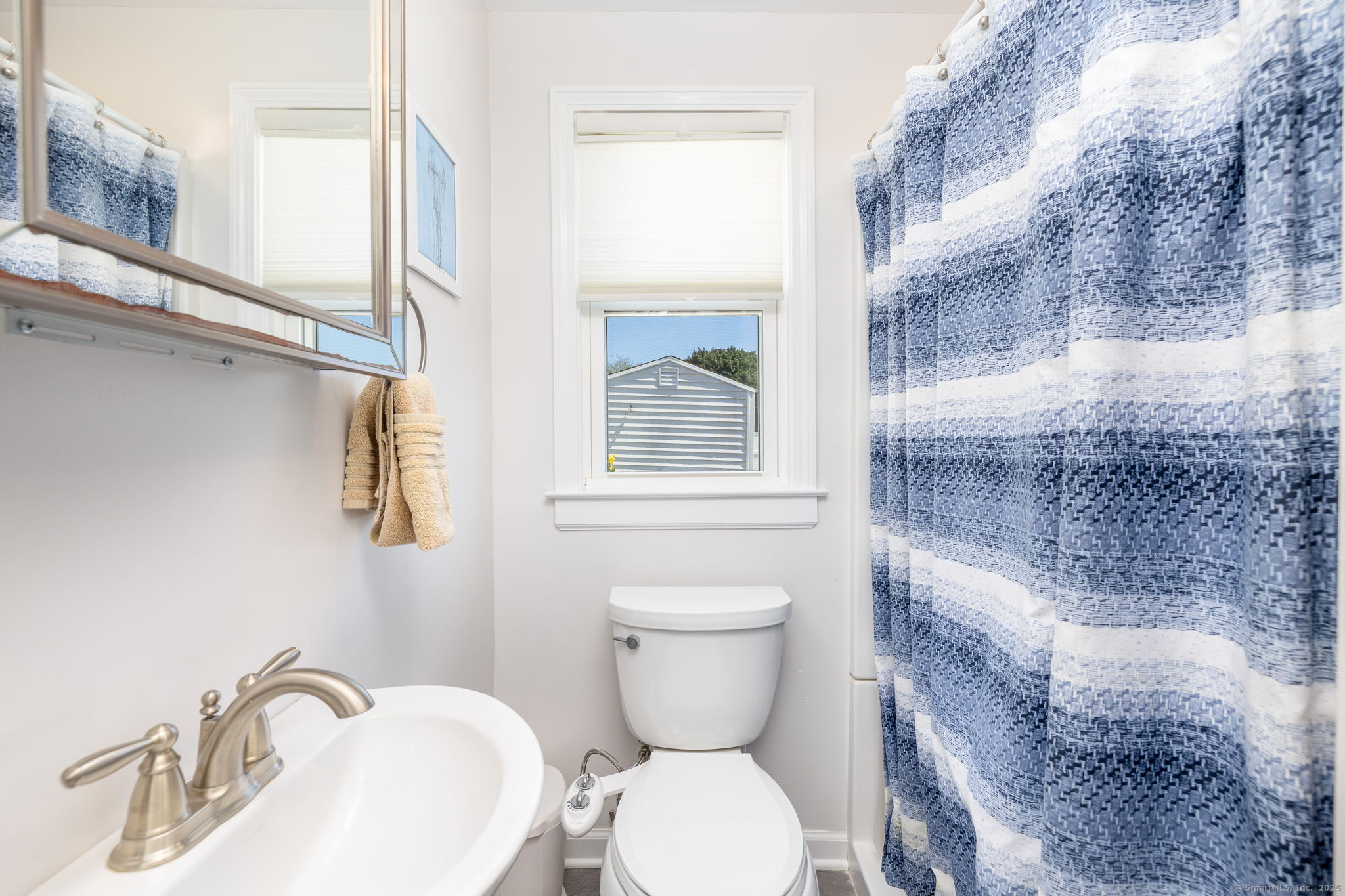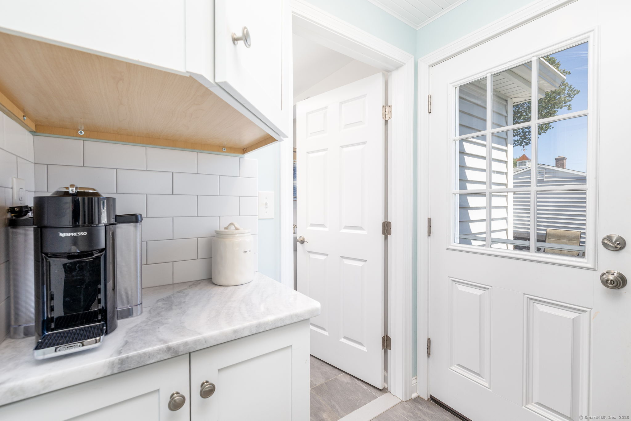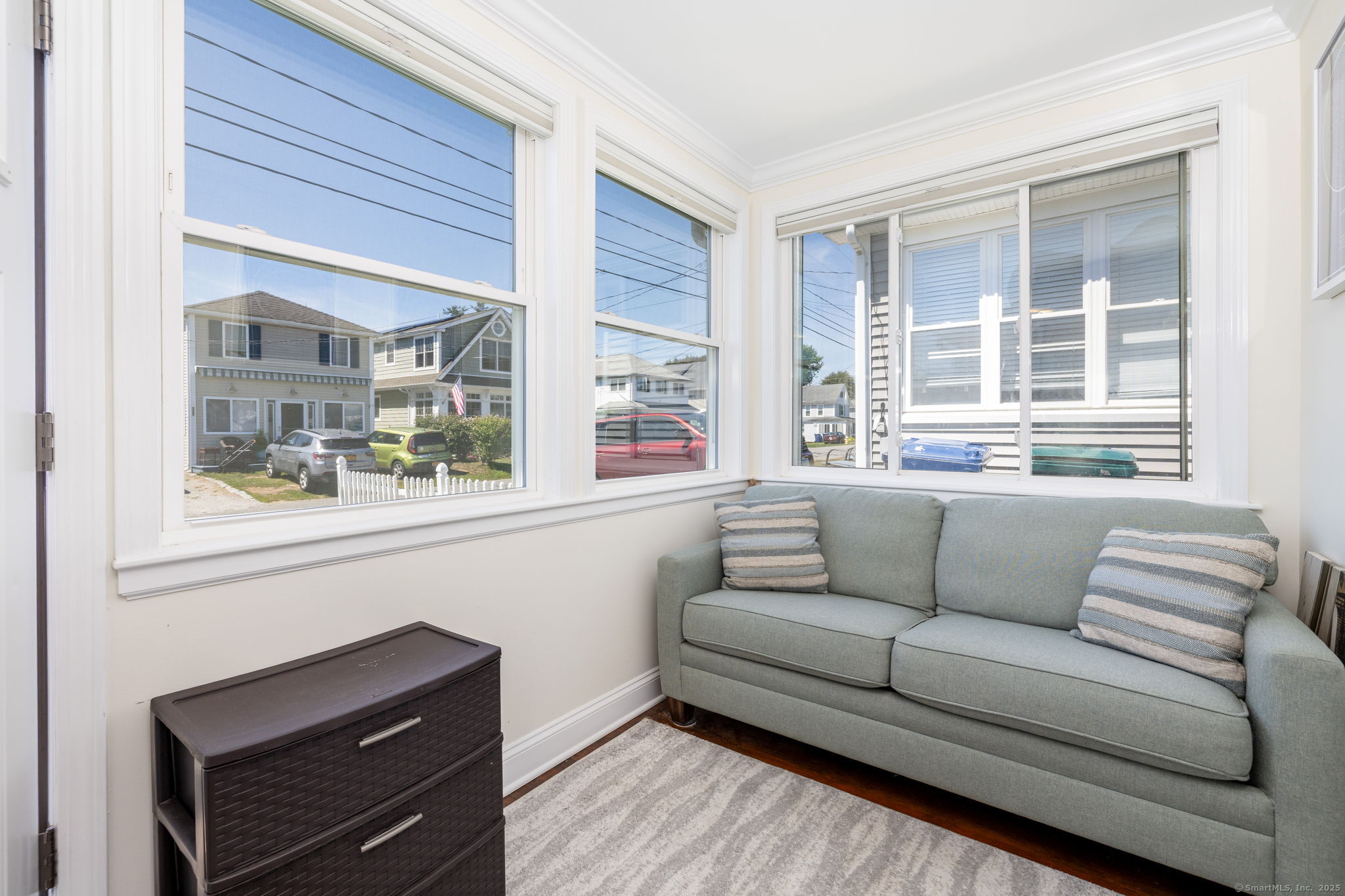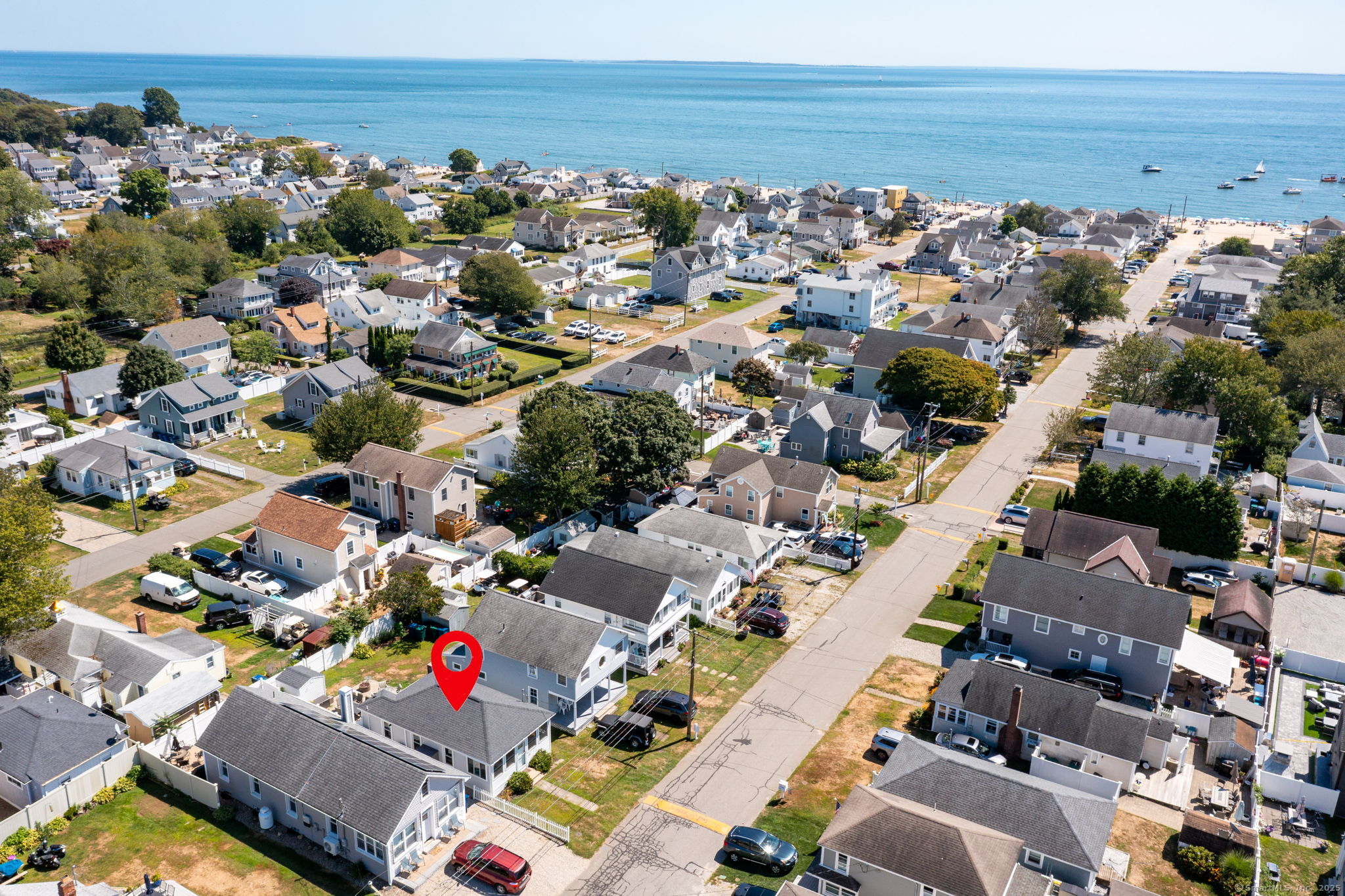 Absolutely everything has been done! This charming, fully furnished bungalow, in the heart of Old Colony's beach community was completely renovated in 2018, blending modern luxury with timeless coastal charm. The only original features remaining is the gorgeous refinished hardwood floors and the bead-board ceilings. Every square inch of this thoughtfully designed home exudes style and functionality, perfect for relaxed beachside living. The heart of the home is a chef's kitchen, boasting sleek shaker white cabinets, sparkling quartz countertops, a chic subway tile backsplash, and stainless steel appliances. Enjoy mornings at the cozy breakfast or coffee bar, while the open, airy layout flows seamlessly into the living room and inviting front sunroom. This versatile sunroom doubles as a dining area and cozy den, bathed in natural light-ideal for entertaining or unwinding. The fully remodeled bathroom features a modern shower stall and convenient stackable laundry area. Additional upgrades include a newer roof, vinyl replacement windows, ductless AC and heat, propane on-demand hot water, an outdoor shower, and updated interior/exterior doors with stylish lighting throughout. Host unforgettable summer gatherings on the expansive rear stone pebble patio, with ample storage in the outdoor shed. Just a short walk or golf cart ride to Old Colony Beach, the iconic Pavilion, Kokomo's restaurant, and the quaint shops and charm of Old Lyme. This home offers the ultimate coastal lifestyle. Gated private security in the summer provides peace of mind. Move-in ready and brimming with upgrades, this bungalow is your perfect seaside retreat!