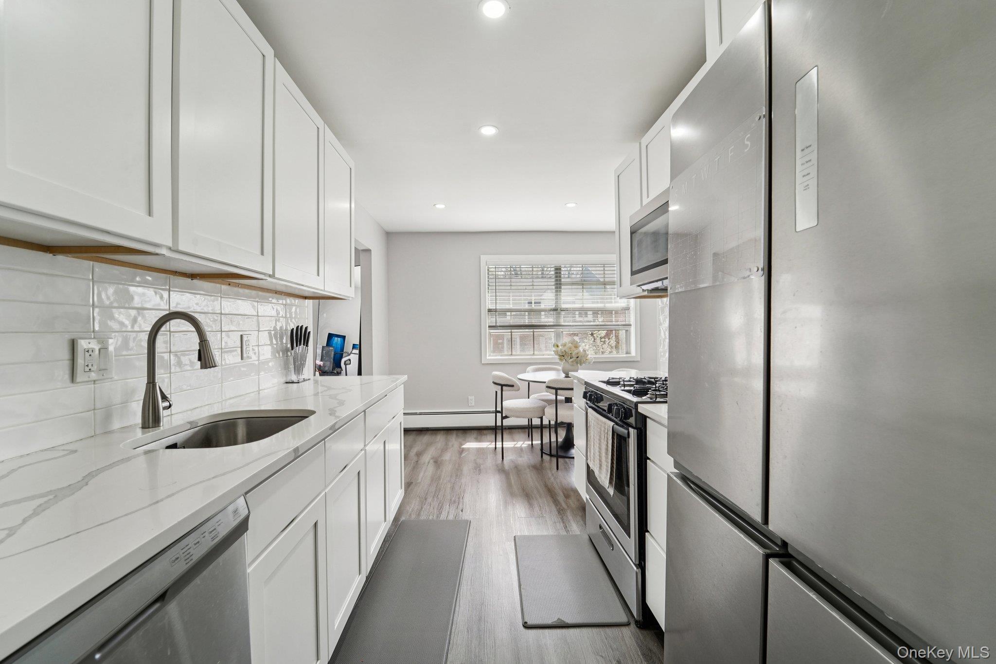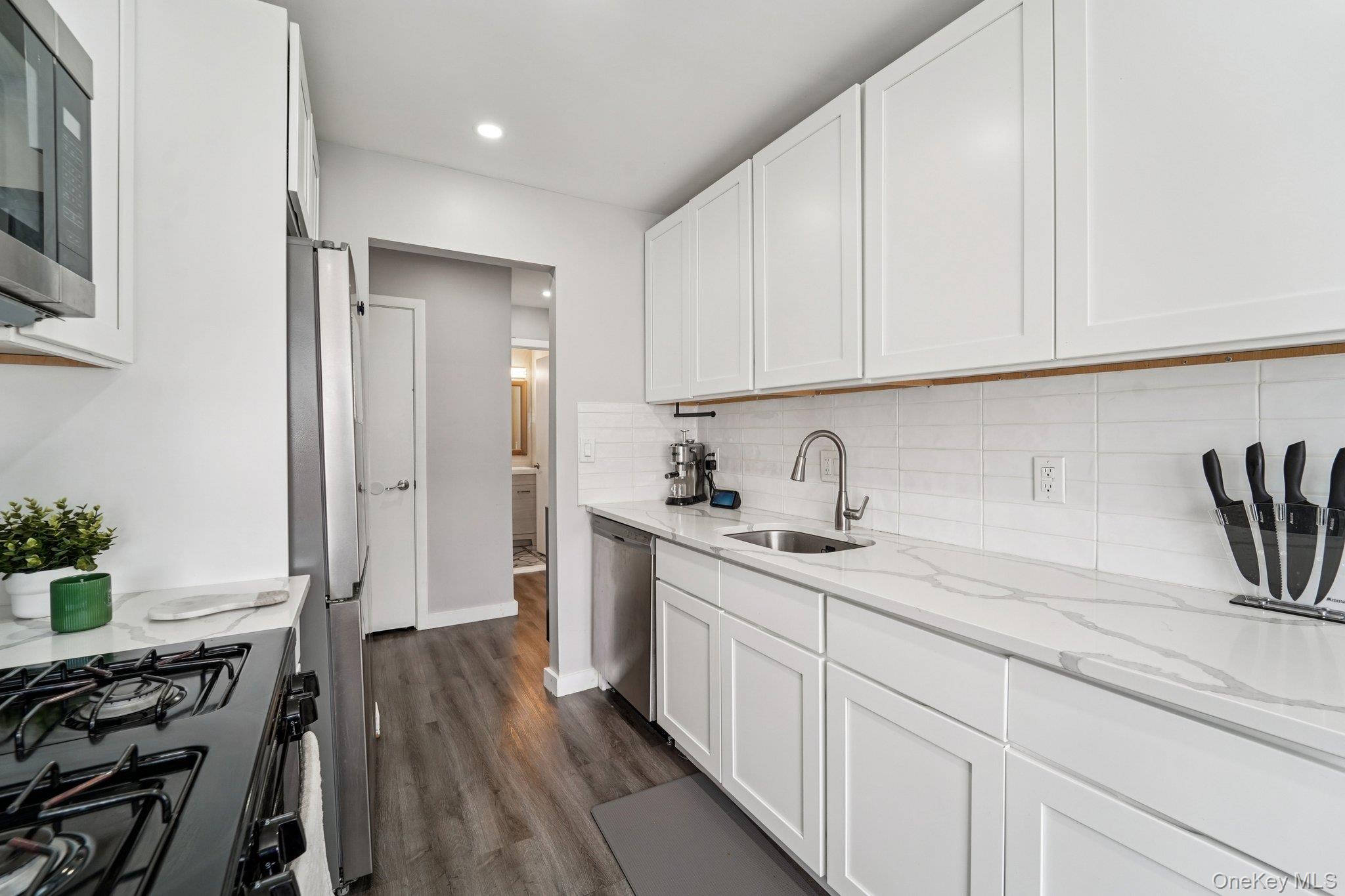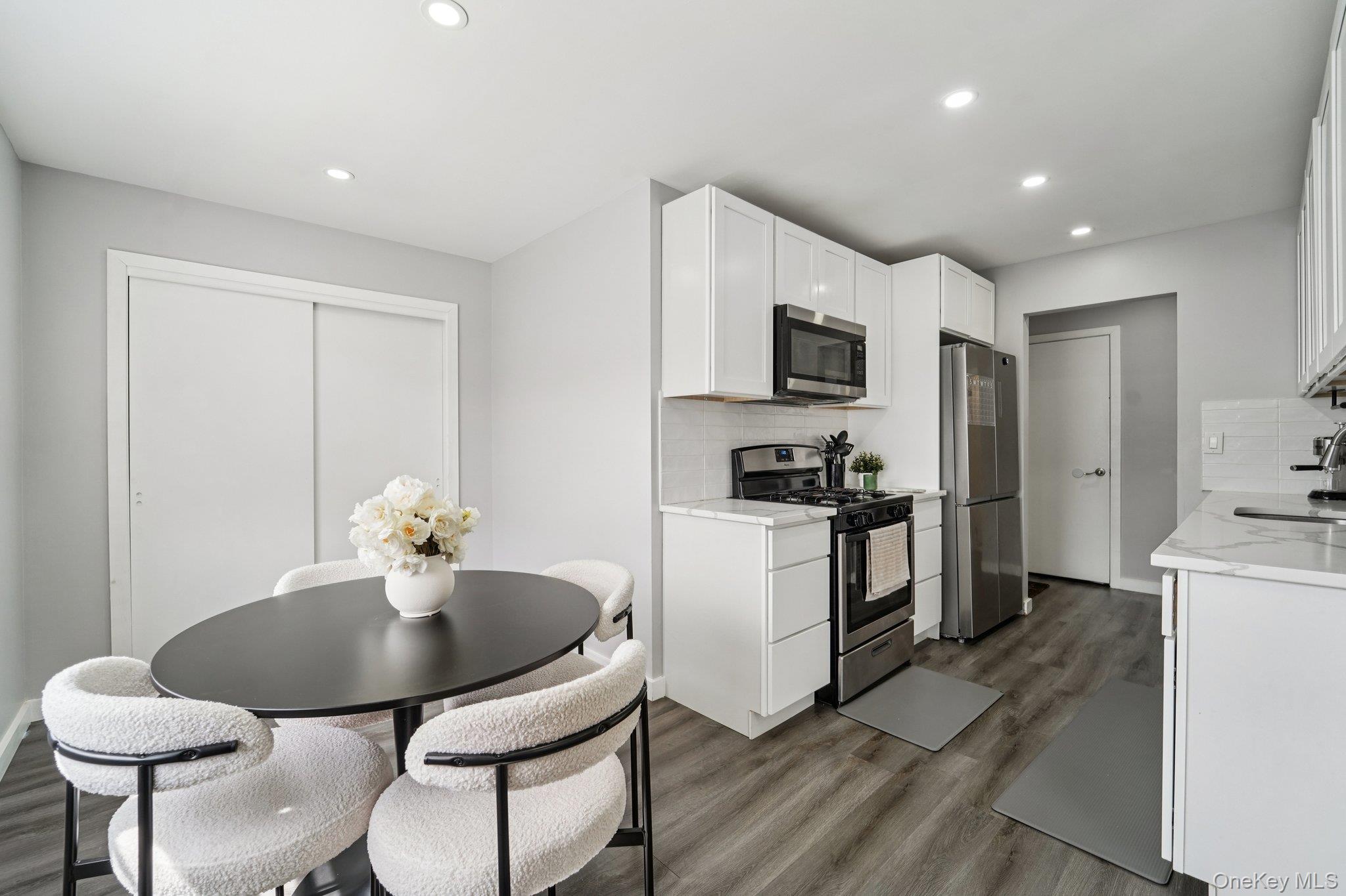 Mint condition condo featuring a renovated kitchen with granite counters, stainless steel appliances and timeless shaker style cabinets. This home offers lots of storage including a walk-in closet in the bedroom and a huge unfinished basement perfect for a home-gym. The bedroom also showcases sliders to a private terrace. Don’t miss the beautifully redone bathroom. Get ready for maintenance free living. Heat, Hot Water and Gas Included in Your HOA Fees. NO need to worry about a furnace or hot water Heater. Wonderful location, Stone's throw away from restaurants and Village of Suffern shopping. Commuter’s dream, close to NJ Transit, train to NYC, major highways and New Jersey border. Lots of visitor parking nearby. This is a pet friendly community.