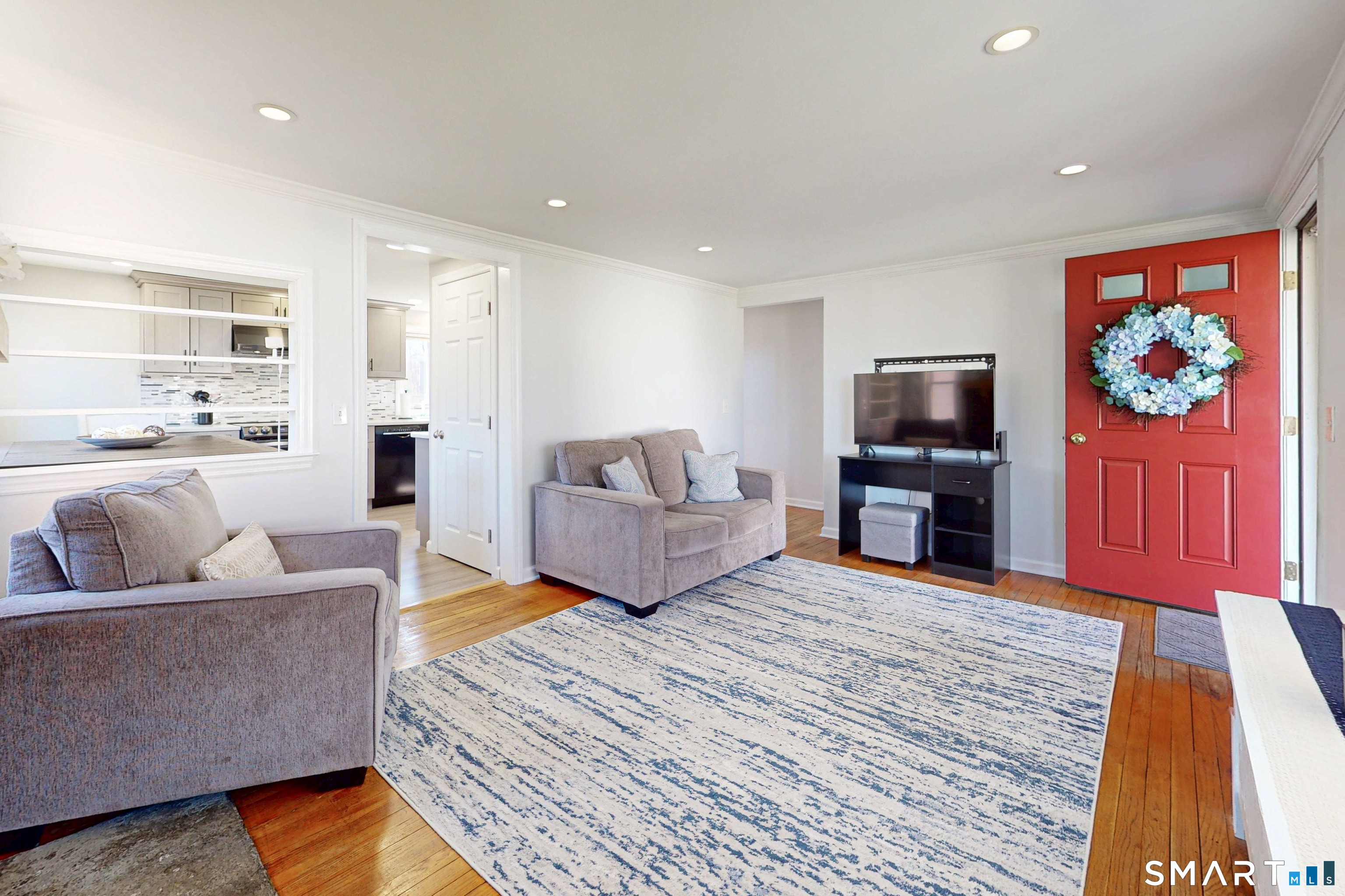 Turnkey gem in a vibrant lake area community, this three-bedroom Cape with garage perfectly blends character with high-end modern updates in a desirable lake location! Exceptional curb appeal begins with a Belgian block front entrance that leads to the front porch. Inside, you will find a generous living room with gleaming hardwood floors, Crown molding, a brick-styled fireplace anchored by a natural wood mantle. This space flows seamlessly into a stunning, renovated dream kitchen featuring high-end appliances, quartz countertops, mosaic backsplash, farmhouse sink and a dedicated dining area. The main level offers convenient living with a primary and guest bedroom, both boasting ample closet space, served by a well-appointed full bathroom. The upper level hosts a private third bedroom characterized by airy vaulted ceilings and charming original built-ins. The backyard is a private oasis, featuring a custom blue-stone patio with exterior awning, an above-ground pool, storage shed, all backed by a privacy fence. Practicality meets peace of mind with a lower level offering storage and workspace, a 10-year-old Peerless furnace, a generator hookup, and new well pump. This home has vinyl siding, Harvey windows, new window shades, and the convenience of city sewer. This home is situated close to Candlewood Lake Town Park, which features a sandy beach, playground, boat launch and picnic areas. Minutes away from local favorites like Lakeview Pizza, shopping, schools and I-84 NY.
