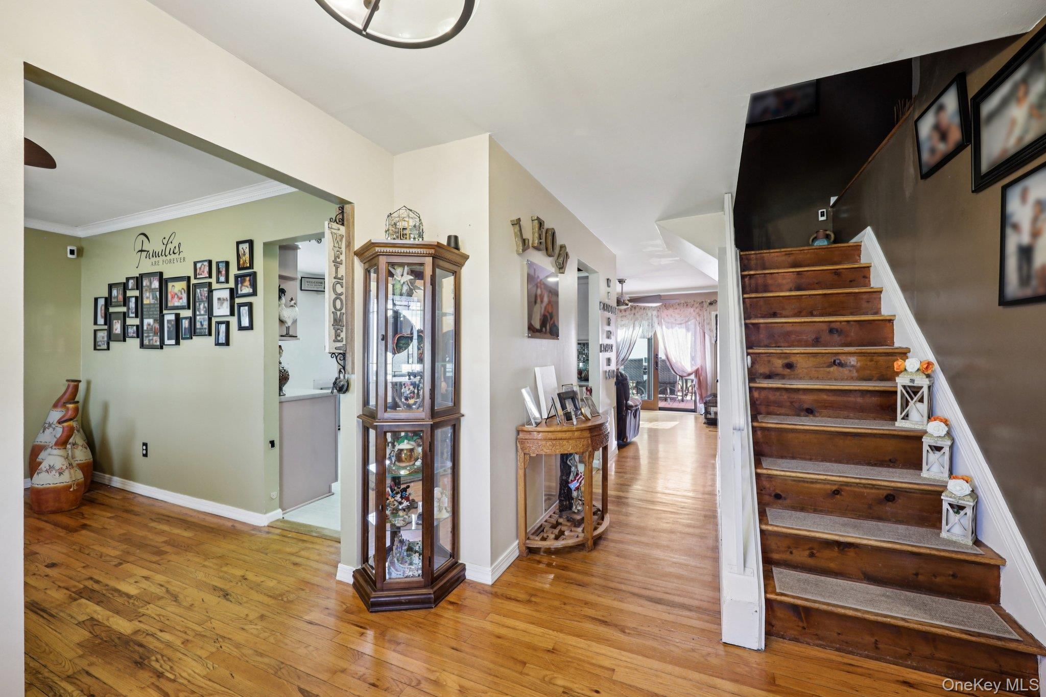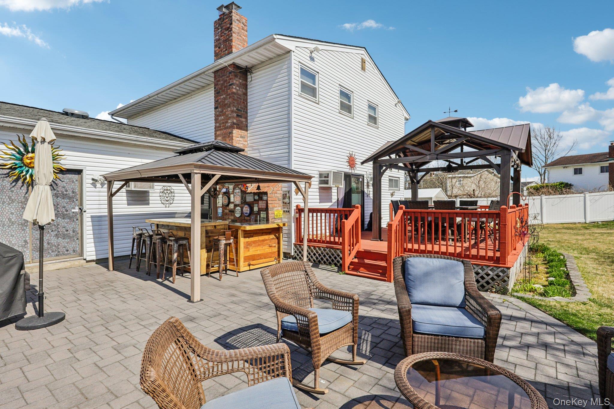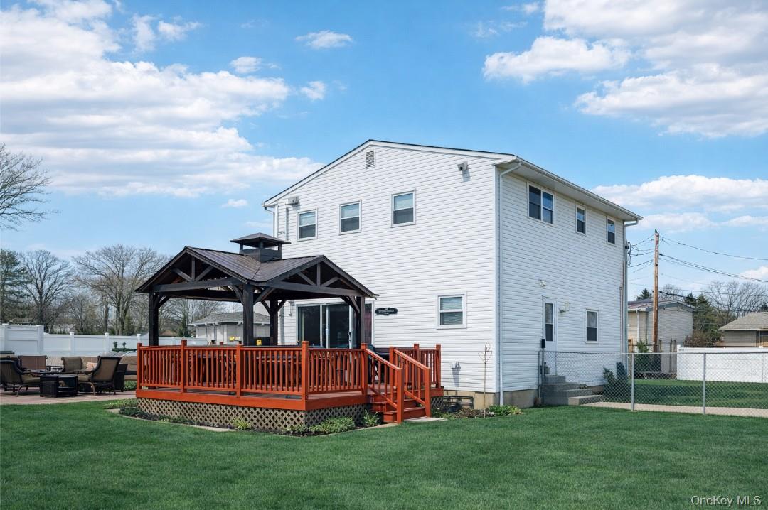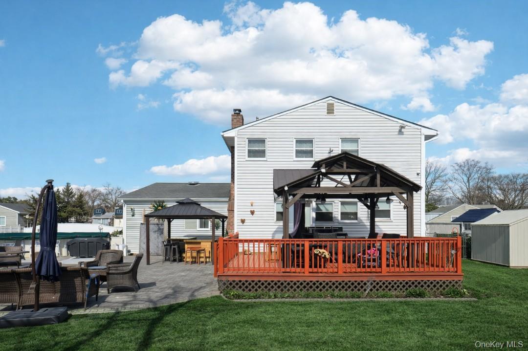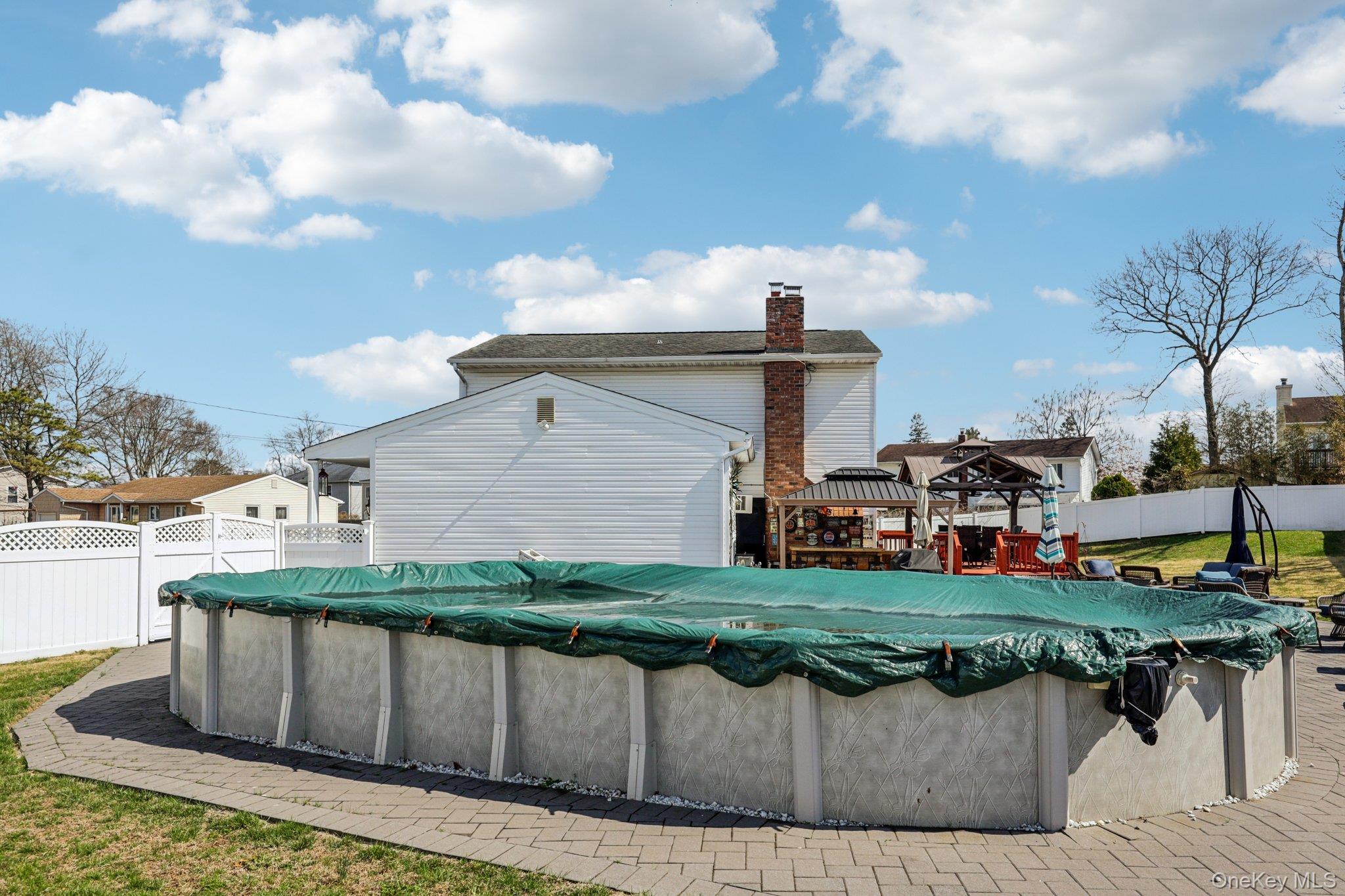 Welcome to this beautifully maintained traditional Colonial Home set on a magnificent oversized property with a Country Club backyard. Enjoy sunny days in your oversized above ground pool while sipping refreshments at the Tiki Bar. Features of this lovingly cared for home include: Maintenance free Vinyl Siding, oversized 6 car driveway with custom pavers, 4 generous sized bedrooms including a separate En Suite Primary Bedroom, charming formal dining room with decorative moldings, sunken den, eat-in-kitchen, separate laundry area, formal living room with brick wall fireplace, Anderson sliding door to deck, hardwood floors, 1. 5 car garage with new door, 8 zone sprinkler system and more.