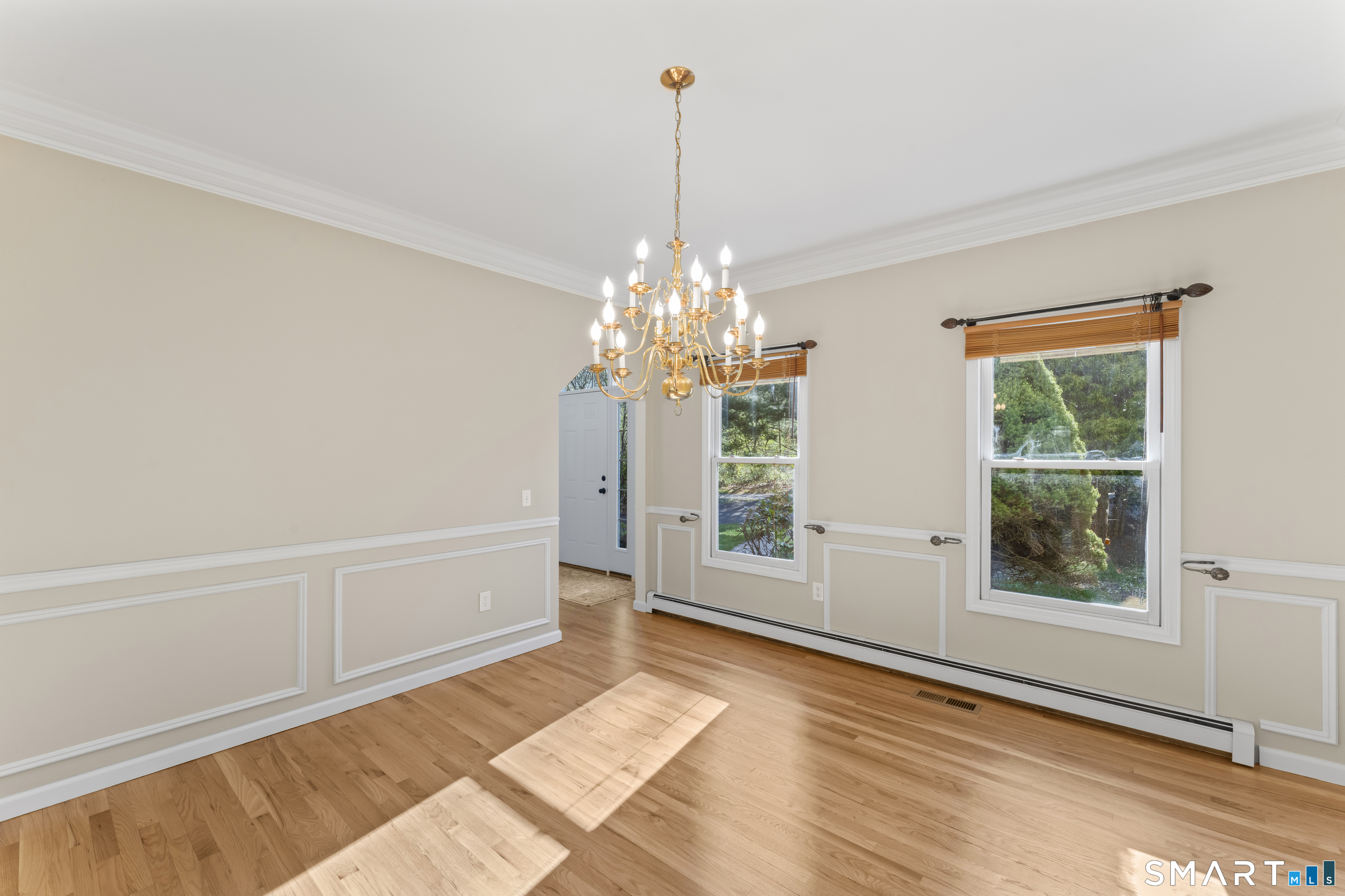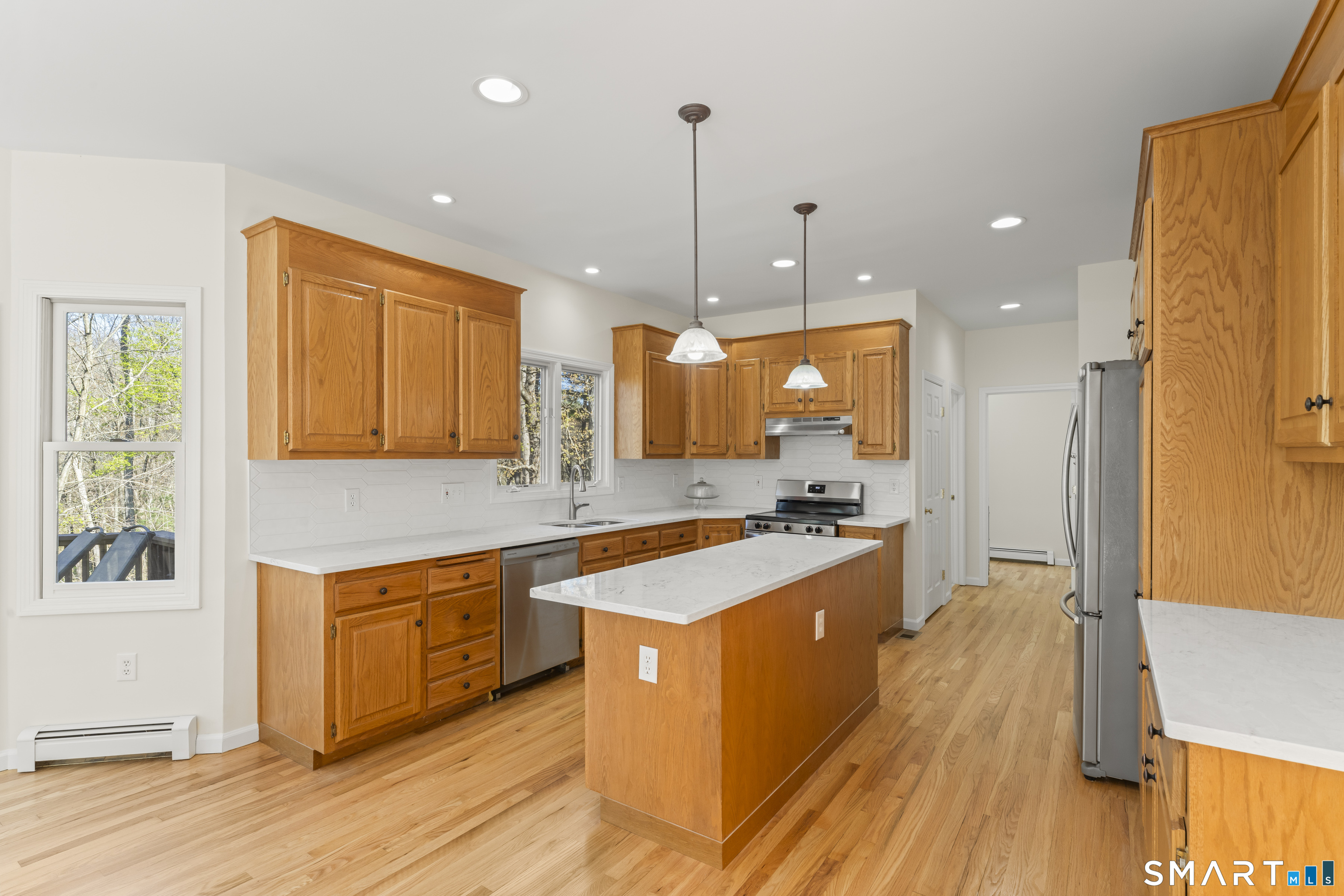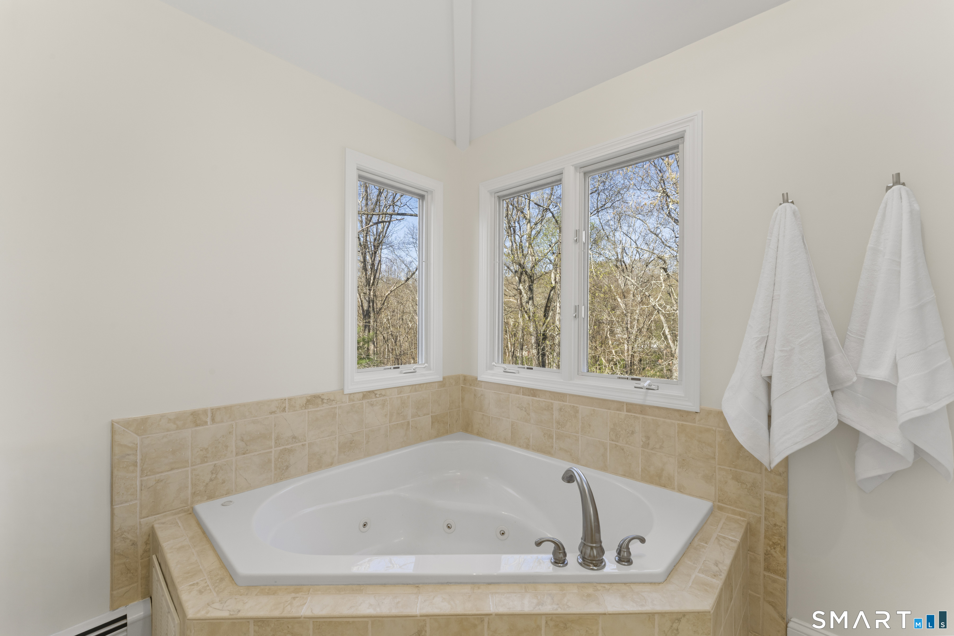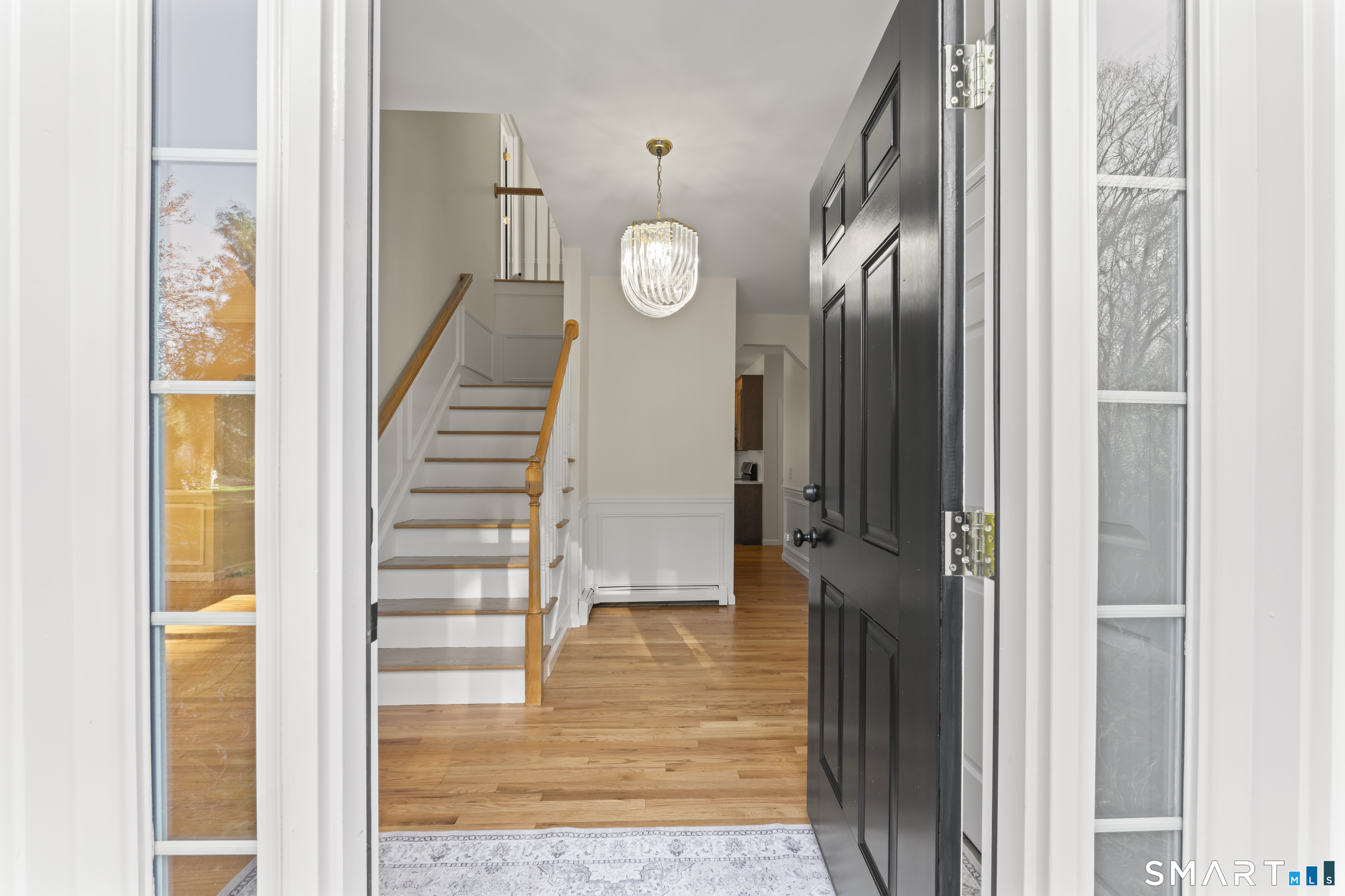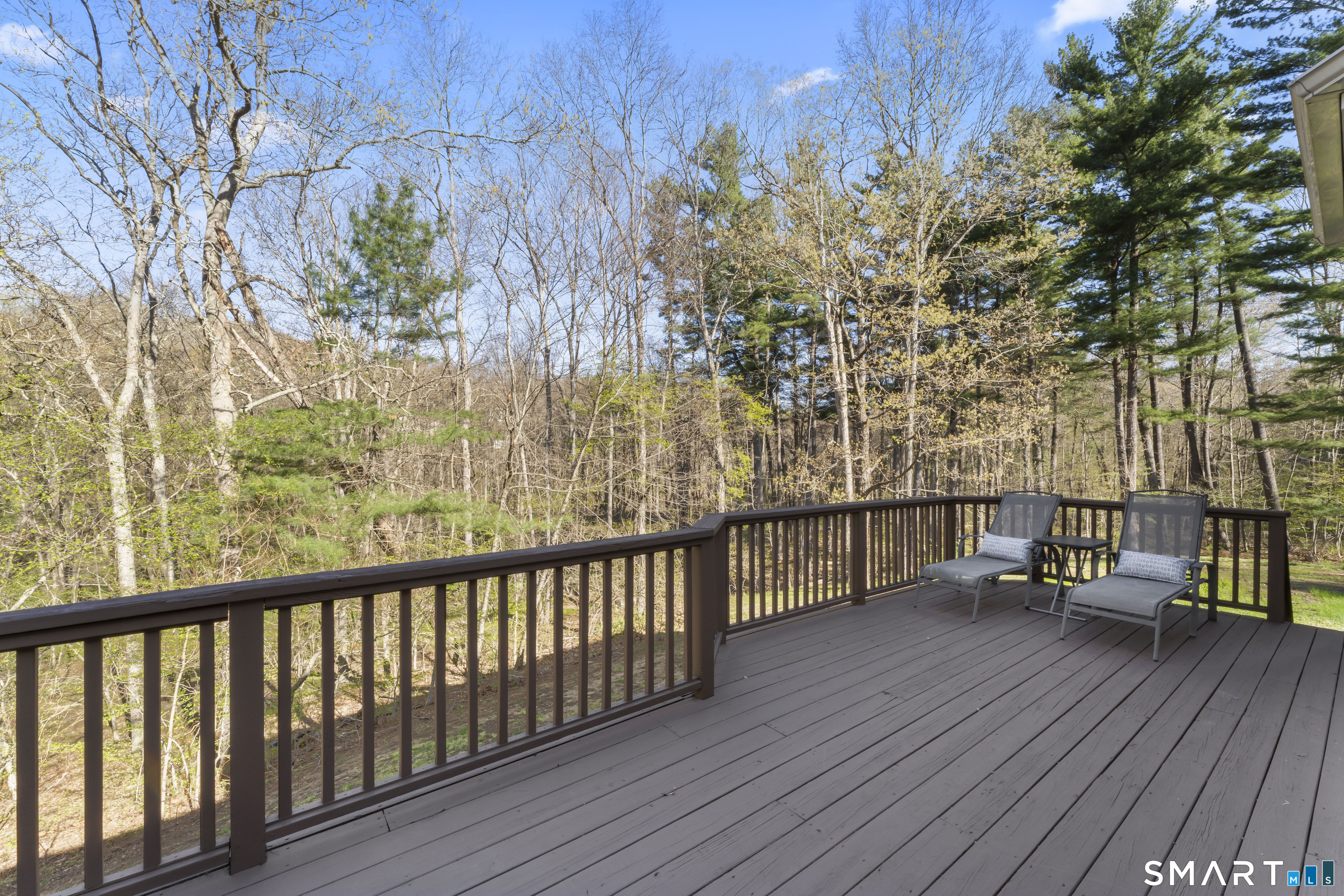 Welcome to 5 Beagle Trail, a beautifully situated Colonial tucked at the end of a quiet cul-de-sac neighbor hood. Set on a serene wooded lot bordering bridle trails & a gentle stream all while offering plenty of room for play. Privacy without seclusion, natural beauty, & convenience converge to make this house a home combining peaceful surroundings with everyday comfort. Inside, natural light fills the spacious interior, enhanced by 9-foot ceilings on the main level & a modern layout ideal for both daily living & entertaining. The updated kitchen features quartz countertops, subway tile backsplash, stainless steel appliances, & a center island, flowing seamlessly into the family room with vaulted ceiling & fireplace. Sliders & French doors open to a large rear deck overlooking the tranquil backyard. Upstairs, the spacious primary suite features vaulted ceilings, skylights, a spa tub, separate shower overlooking the backyard, & a walk-in closet. The finished walkout lower level adds flexible living space with wide plank flooring & sliding glass doors, perfect for a home office, gym, media room, or playroom. Extensive recent updates include new roof (2022), garage doors (2024), fresh interior and exterior paint (2025), refinished hardwood floors (2026), plus new oil tank, water tank, whole-house water filtration system, boiler (2025) and pre-wired for a generator. A touchscreen security system completes this turnkey offering in one of areas most peaceful settings!
