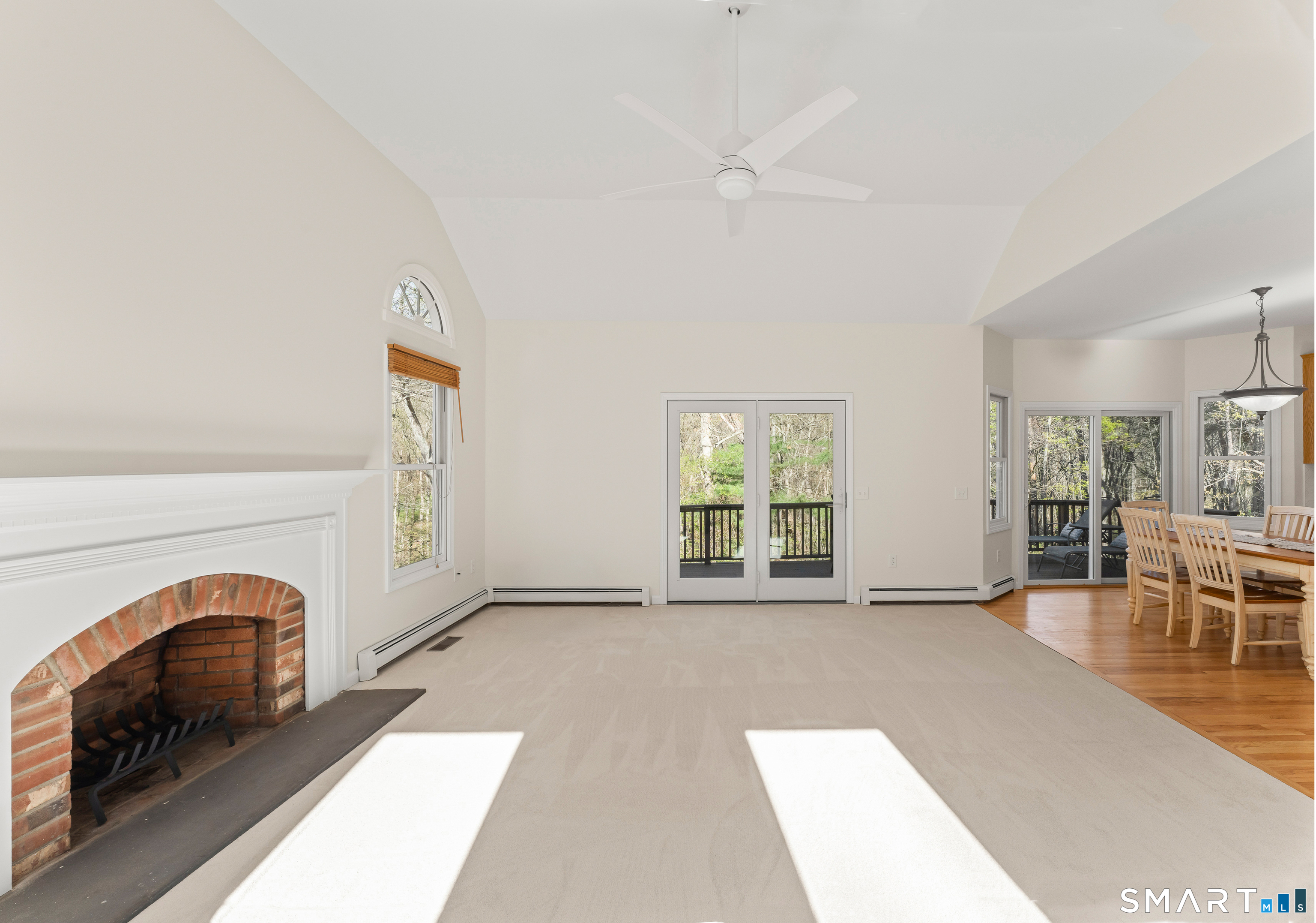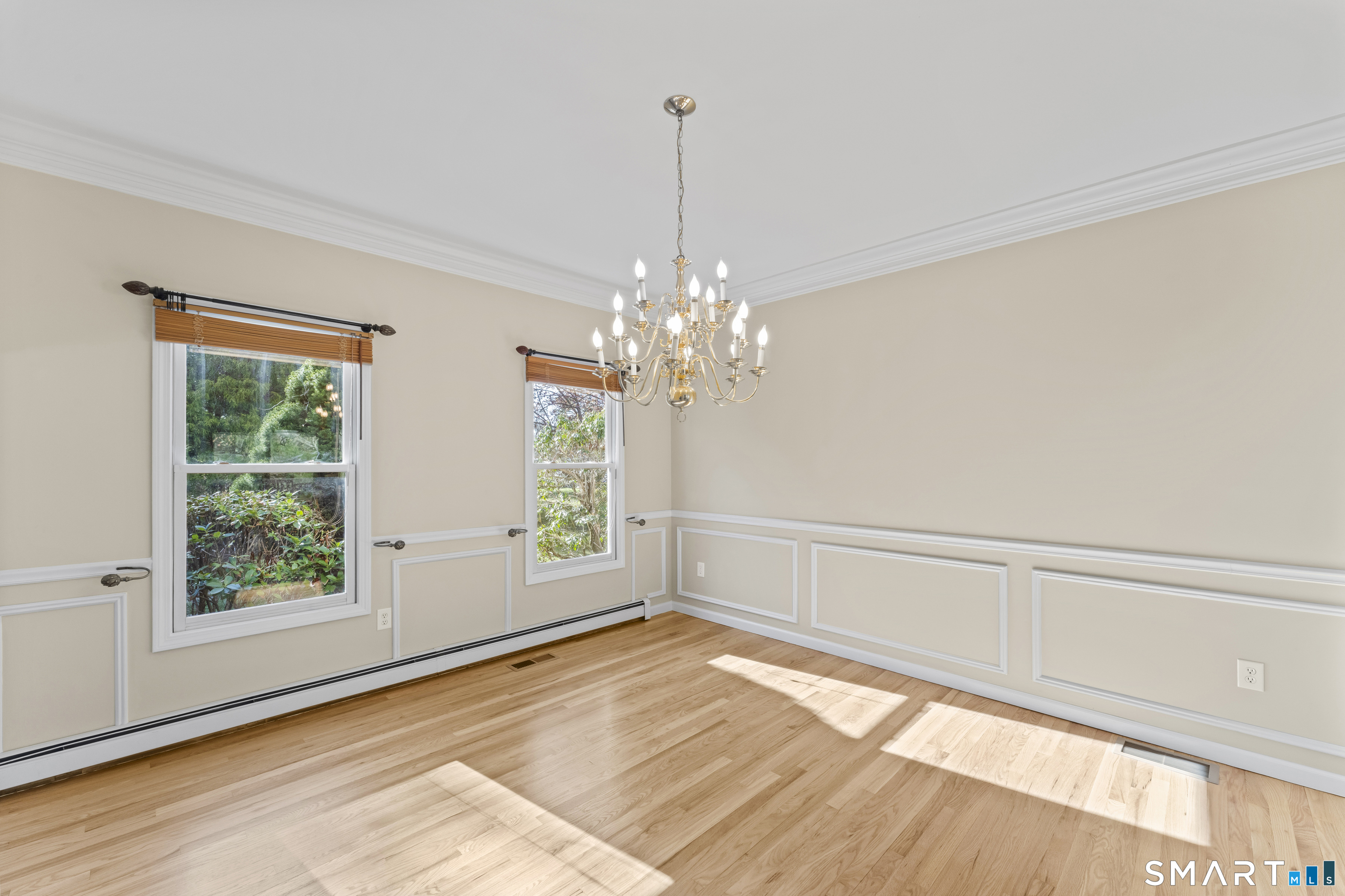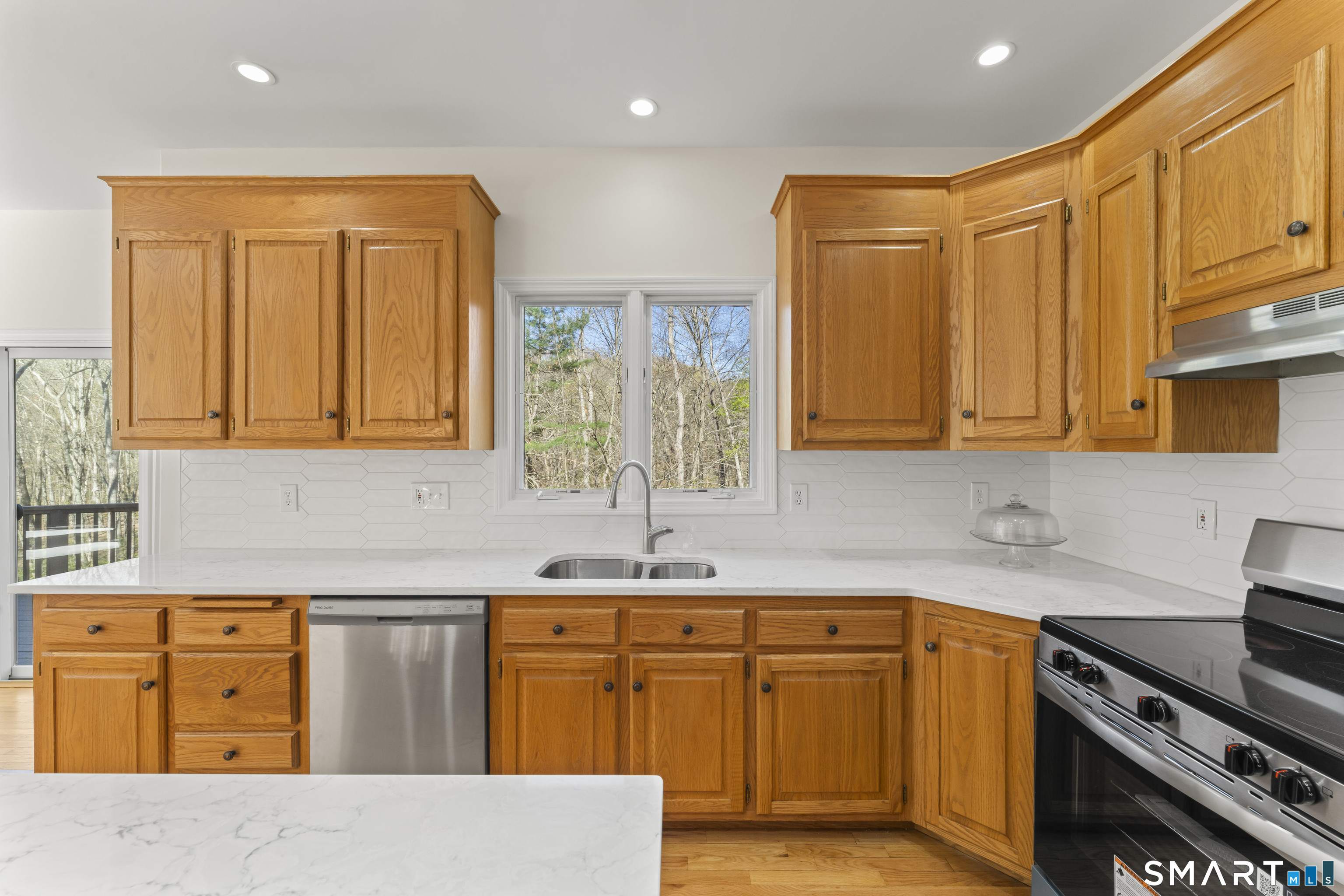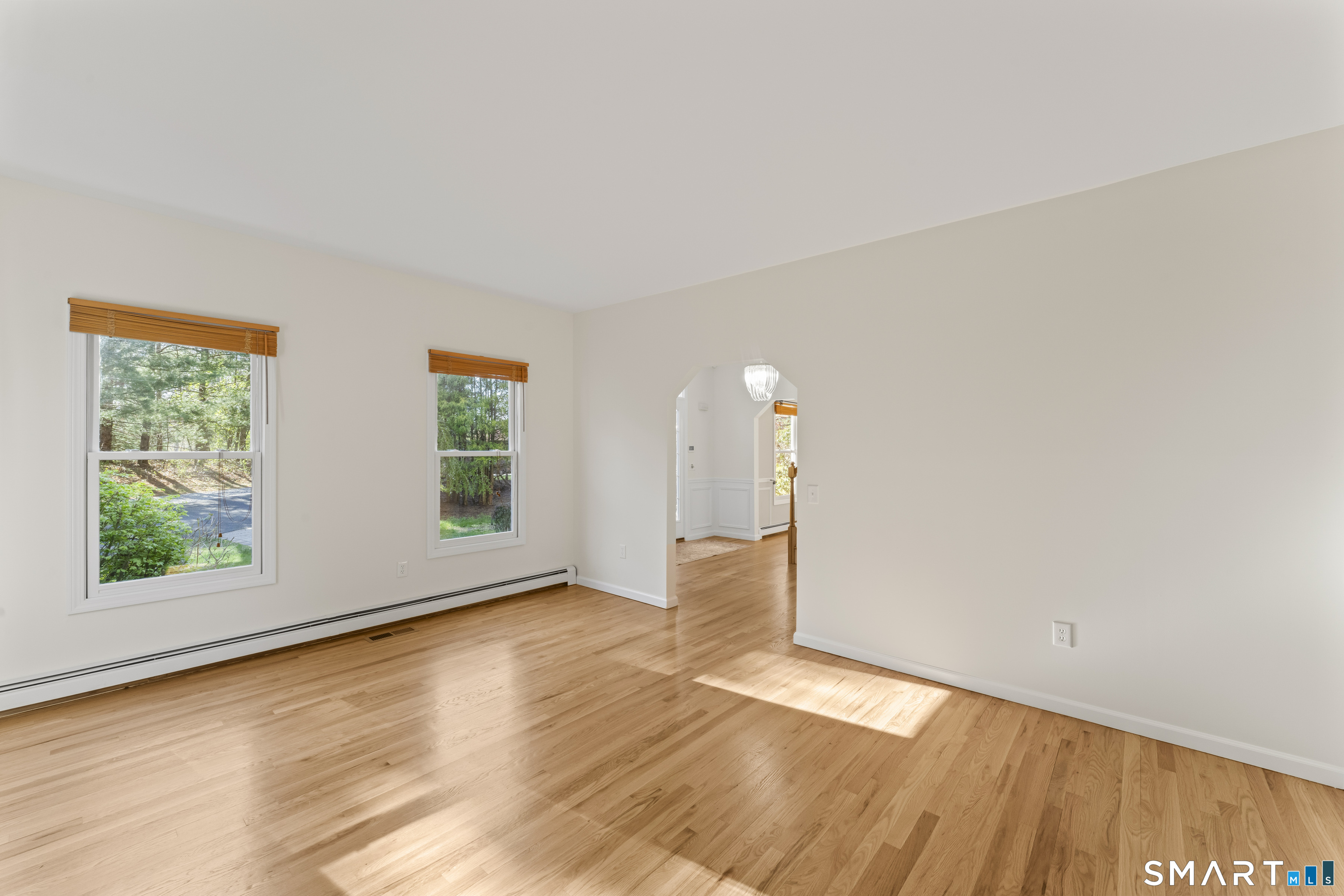 Welcome to 5 Beagle Trail, a beautifully situated Colonial tucked at the end of a quiet cul-de-sac neighbor hood. Set on a serene wooded lot bordering bridle trails & a gentle stream all while offering plenty of room for play. Privacy without seclusion, natural beauty, & convenience converge to make this house a home combining peaceful surroundings with everyday comfort. Inside, natural light fills the spacious interior, enhanced by 9-foot ceilings on the main level & a modern layout ideal for both daily living & entertaining. The updated kitchen features quartz countertops, subway tile backsplash, stainless steel appliances, & a center island, flowing seamlessly into the family room with vaulted ceiling & fireplace. Sliders & French doors open to a large rear deck overlooking the tranquil backyard. Upstairs, the spacious primary suite features vaulted ceilings, skylights, a spa tub, separate shower overlooking the backyard, & a walk-in closet. The finished walkout lower level adds flexible living space with wide plank flooring & sliding glass doors, perfect for a home office, gym, media room, or playroom. Extensive recent updates include new roof (2022), garage doors (2024), fresh interior and exterior paint (2025), refinished hardwood floors (2026), plus new oil tank, water tank, whole-house water filtration system, boiler (2025) and pre-wired for a generator. A touchscreen security system completes this turnkey offering in one of areas most peaceful settings!