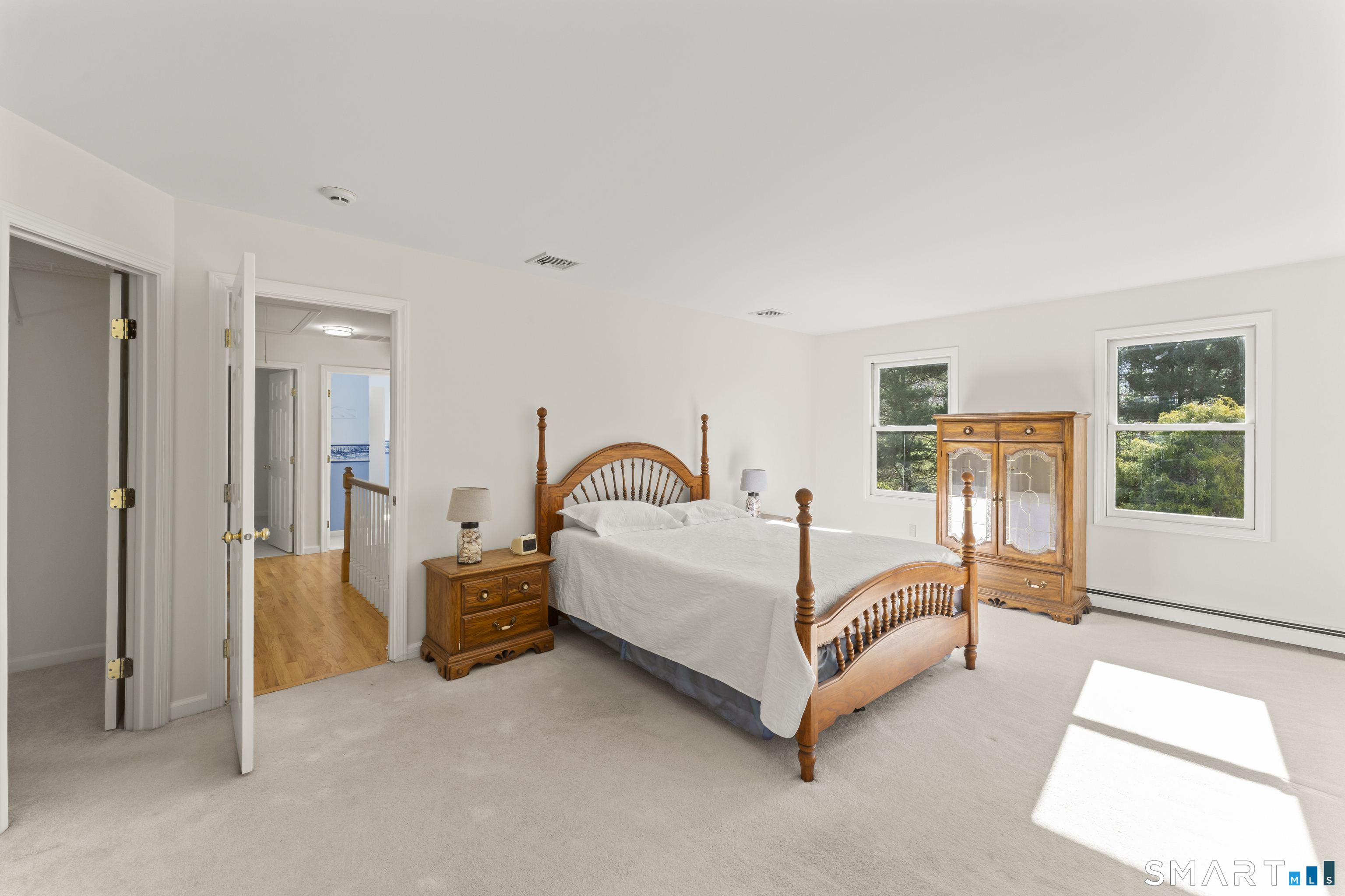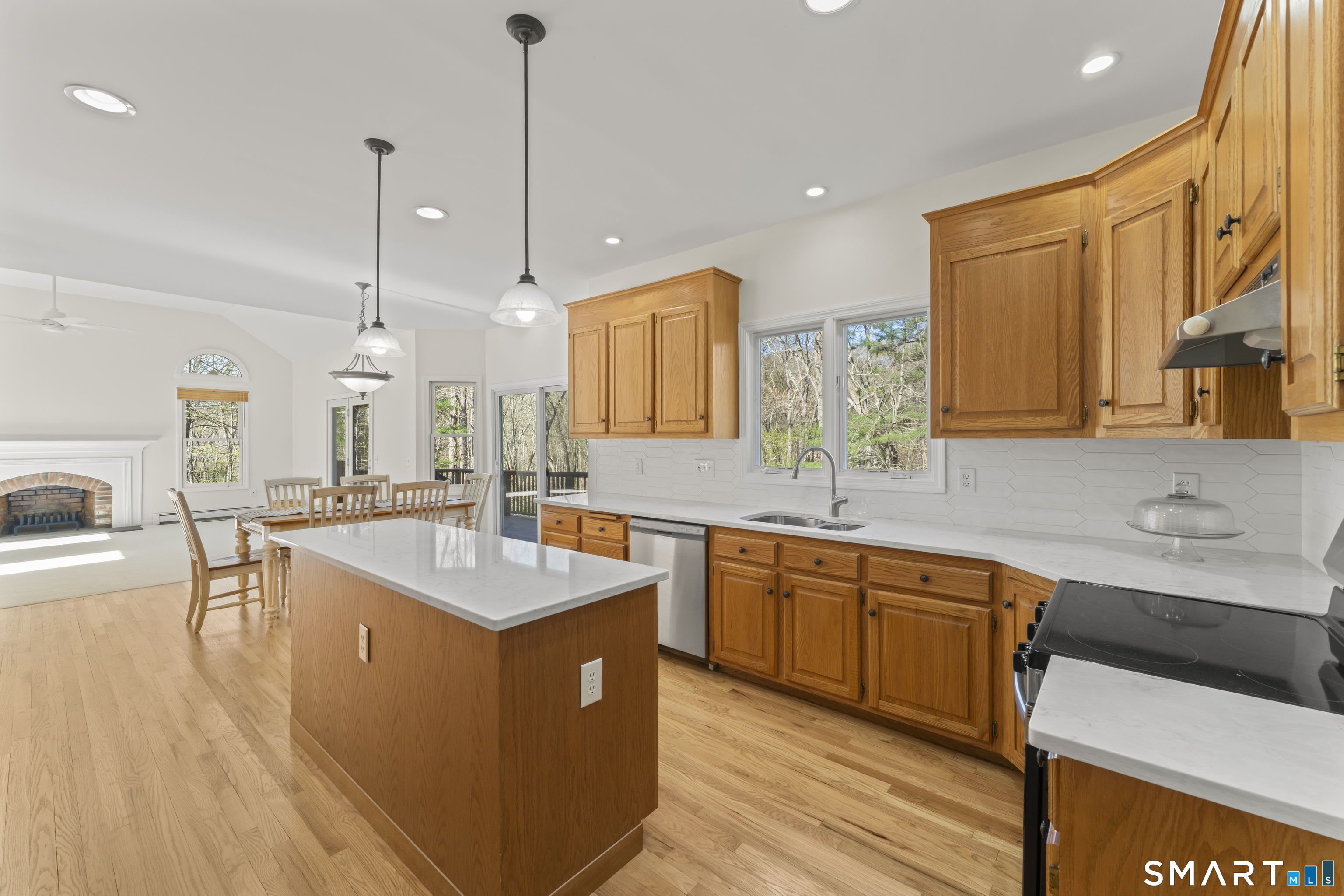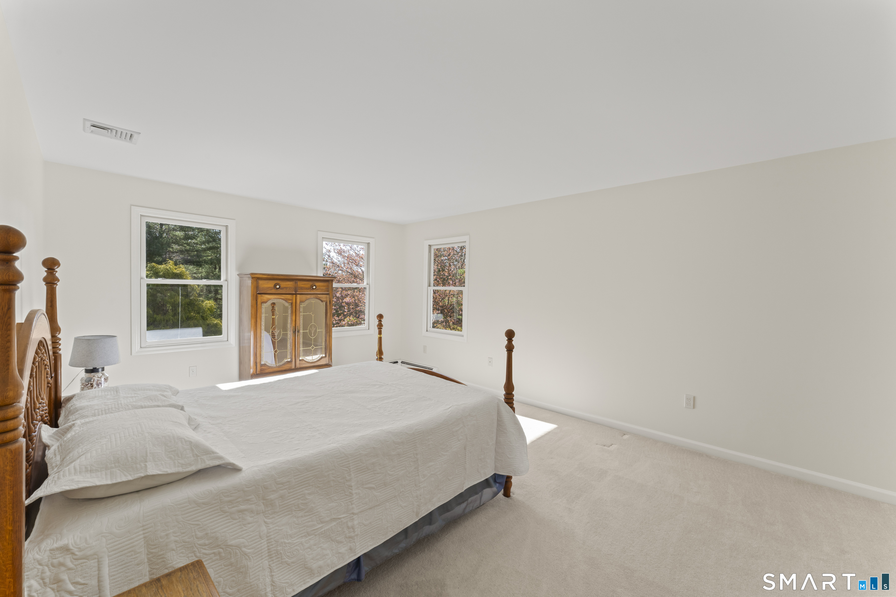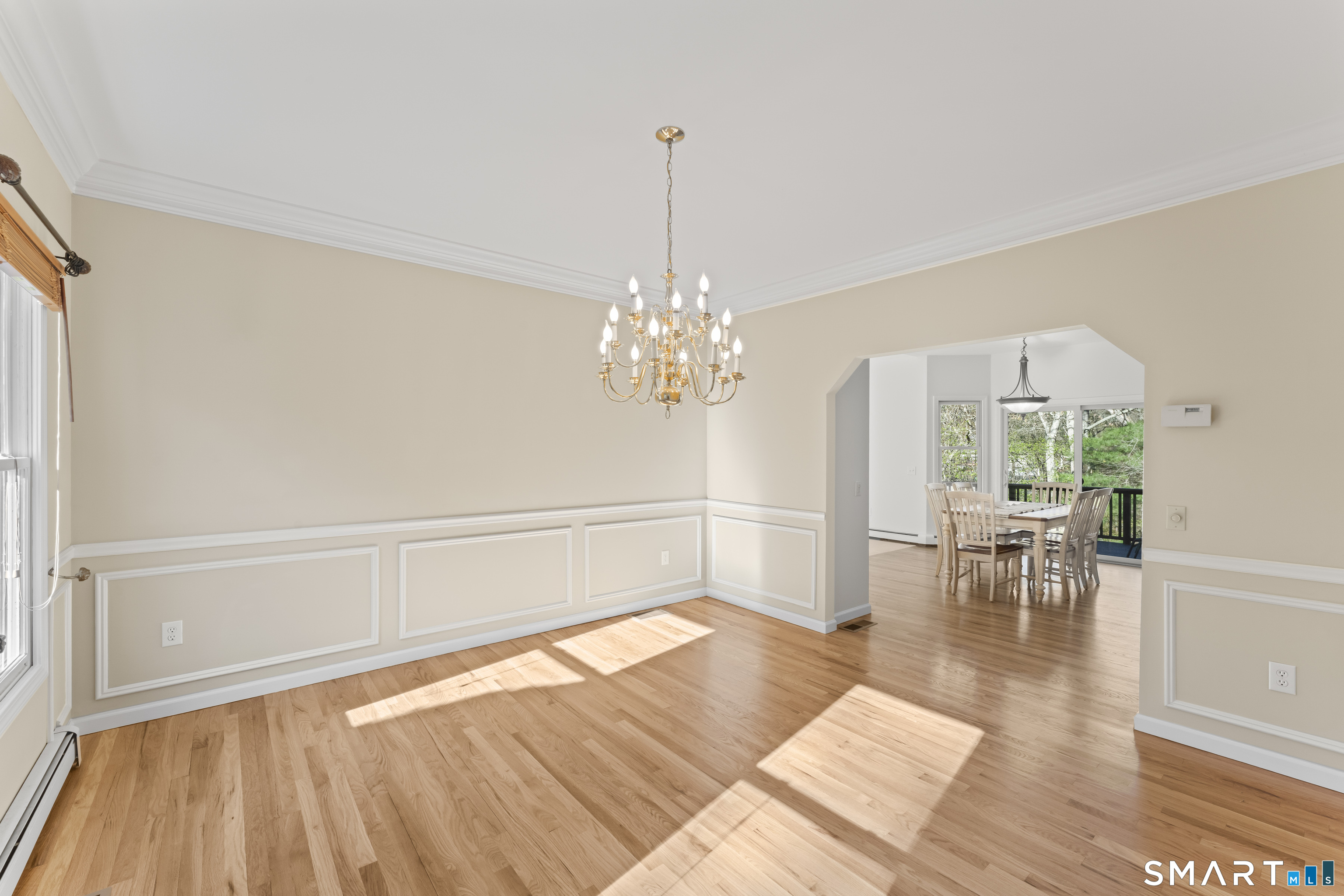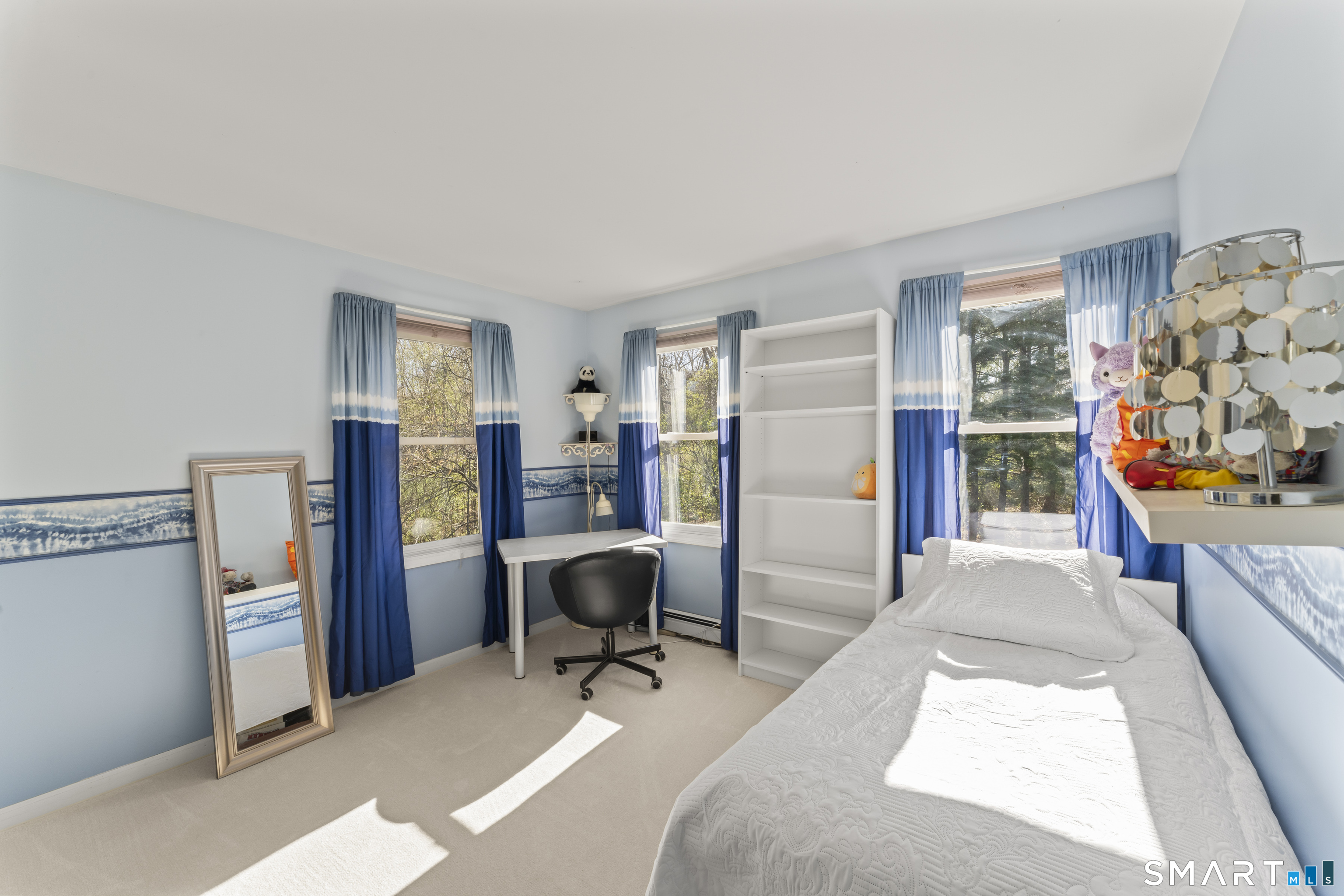 Welcome to 5 Beagle Trail, a beautifully situated Colonial tucked at the end of a quiet cul-de-sac neighbor hood. Set on a serene wooded lot bordering bridle trails & a gentle stream all while offering plenty of room for play. Privacy without seclusion, natural beauty, & convenience converge to make this house a home combining peaceful surroundings with everyday comfort. Inside, natural light fills the spacious interior, enhanced by 9-foot ceilings on the main level & a modern layout ideal for both daily living & entertaining. The updated kitchen features quartz countertops, subway tile backsplash, stainless steel appliances, & a center island, flowing seamlessly into the family room with vaulted ceiling & fireplace. Sliders & French doors open to a large rear deck overlooking the tranquil backyard. Upstairs, the spacious primary suite features vaulted ceilings, skylights, a spa tub, separate shower overlooking the backyard, & a walk-in closet. The finished walkout lower level adds flexible living space with wide plank flooring & sliding glass doors, perfect for a home office, gym, media room, or playroom. Extensive recent updates include new roof (2022), garage doors (2024), fresh interior and exterior paint (2025), refinished hardwood floors (2026), plus new oil tank, water tank, whole-house water filtration system, boiler (2025) and pre-wired for a generator. A touchscreen security system completes this turnkey offering in one of areas most peaceful settings!