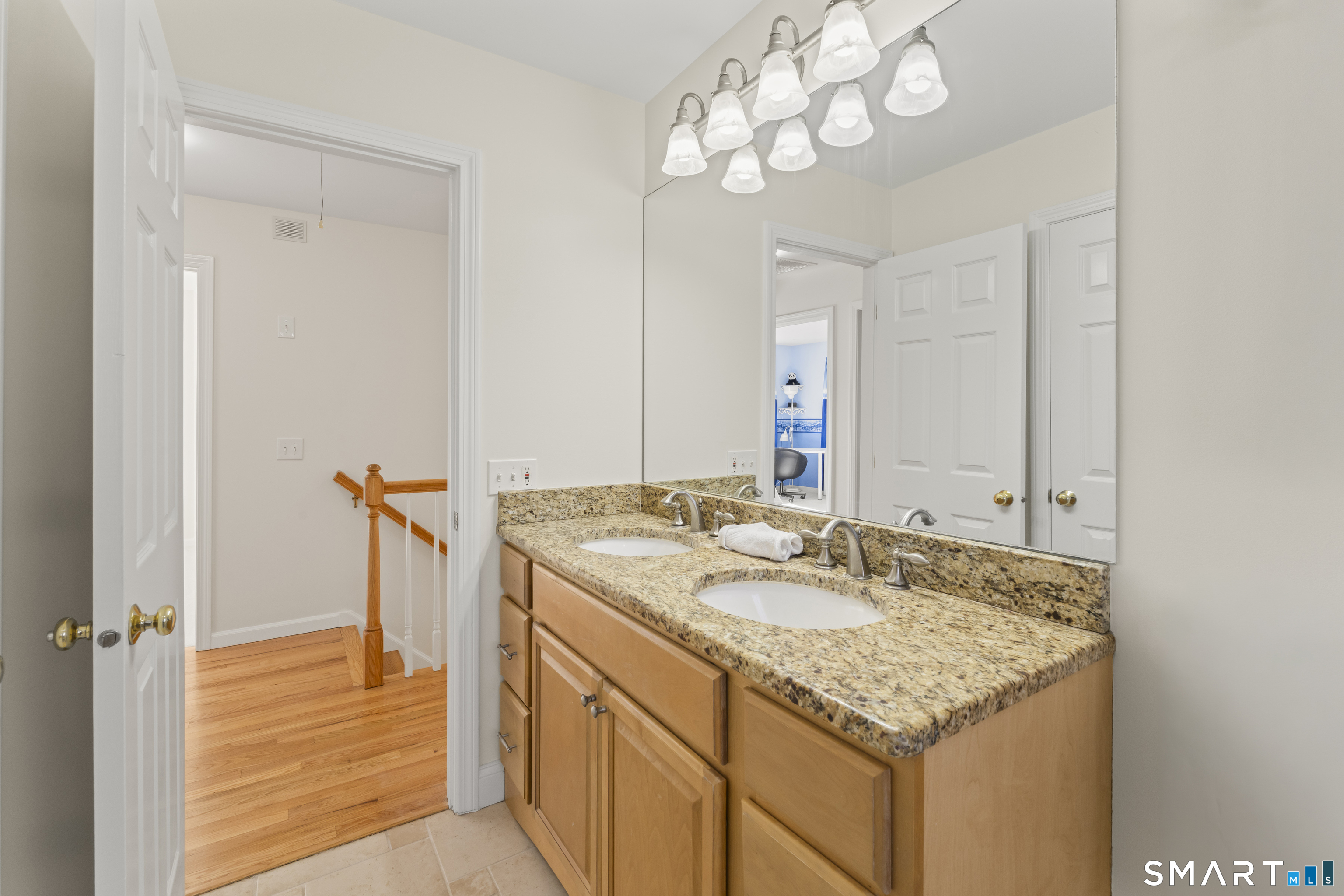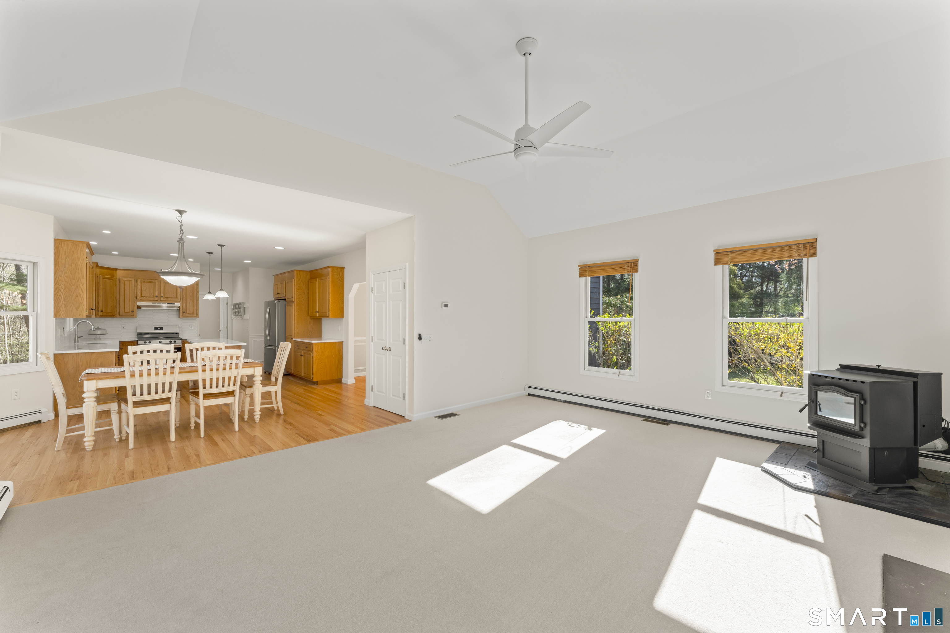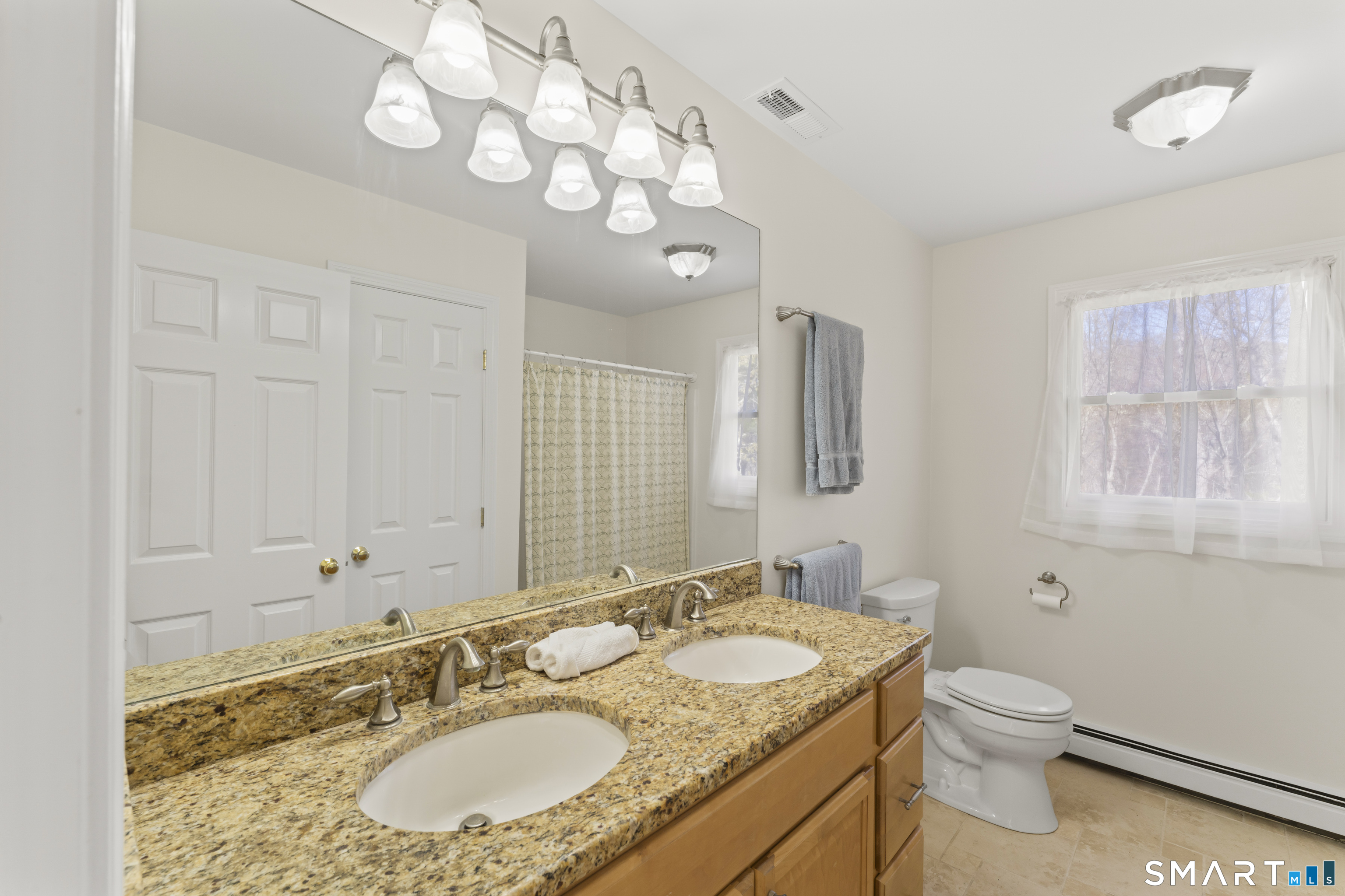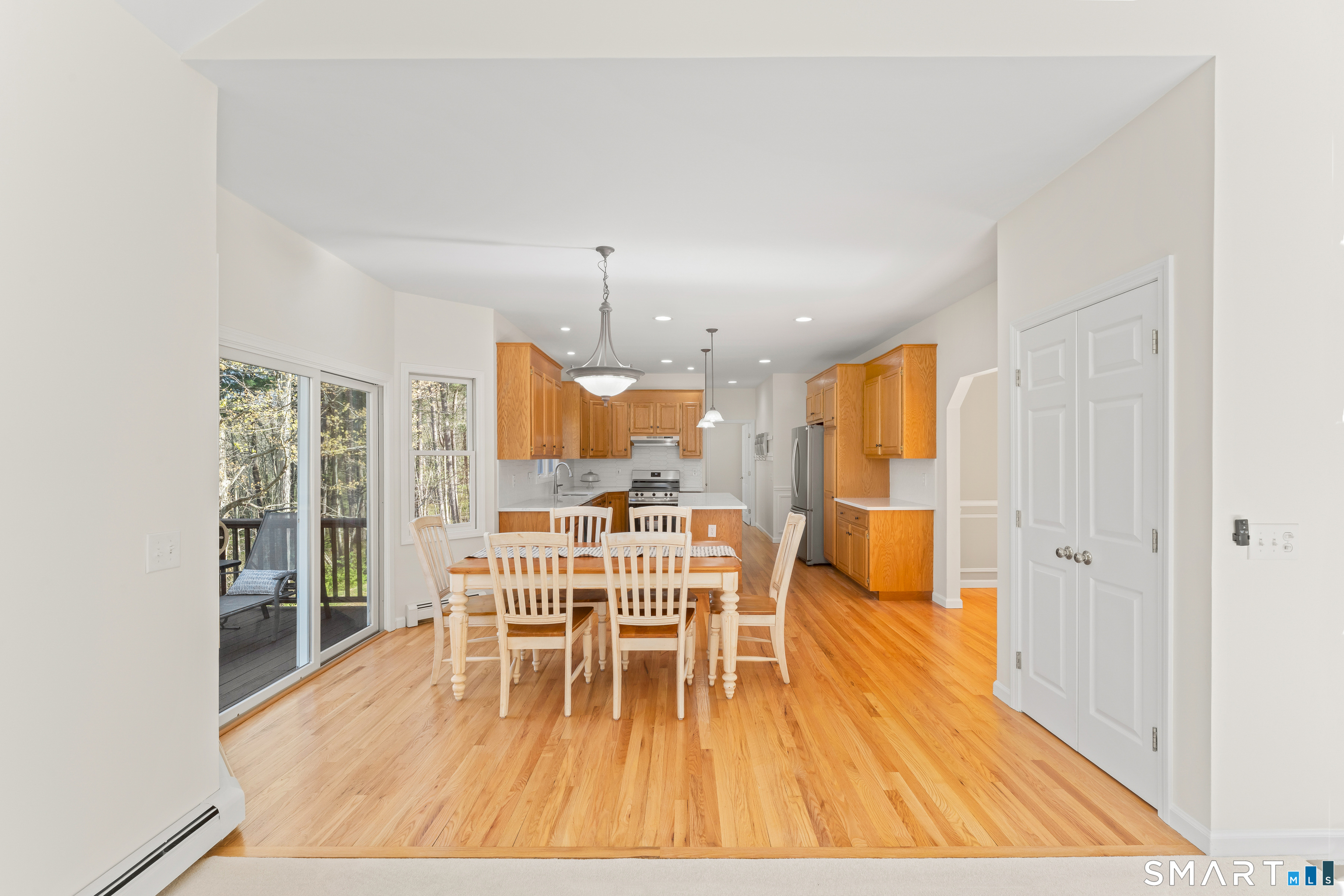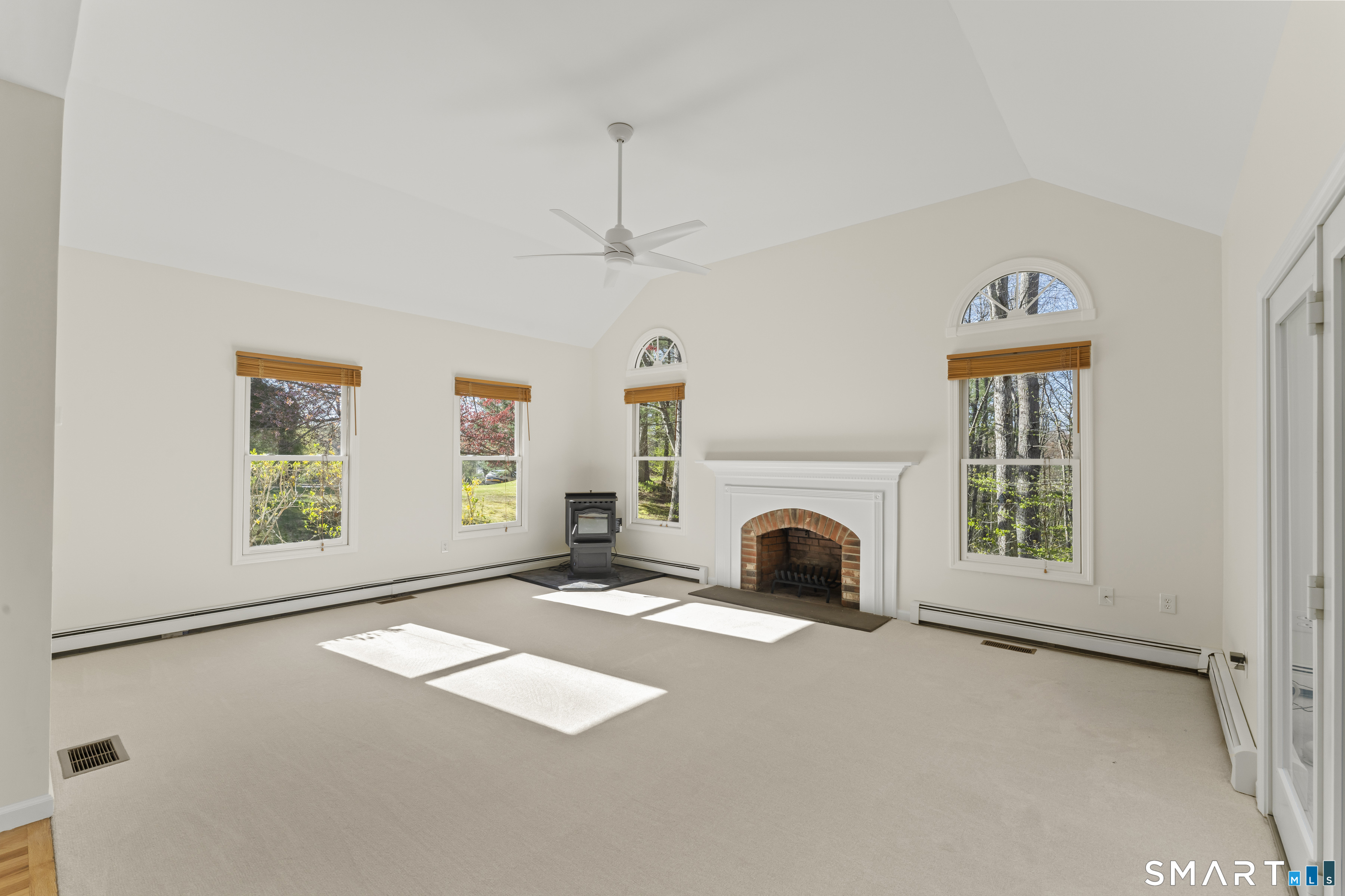 Welcome to 5 Beagle Trail, a beautifully situated Colonial tucked at the end of a quiet cul-de-sac neighbor hood. Set on a serene wooded lot bordering bridle trails & a gentle stream all while offering plenty of room for play. Privacy without seclusion, natural beauty, & convenience converge to make this house a home combining peaceful surroundings with everyday comfort. Inside, natural light fills the spacious interior, enhanced by 9-foot ceilings on the main level & a modern layout ideal for both daily living & entertaining. The updated kitchen features quartz countertops, subway tile backsplash, stainless steel appliances, & a center island, flowing seamlessly into the family room with vaulted ceiling & fireplace. Sliders & French doors open to a large rear deck overlooking the tranquil backyard. Upstairs, the spacious primary suite features vaulted ceilings, skylights, a spa tub, separate shower overlooking the backyard, & a walk-in closet. The finished walkout lower level adds flexible living space with wide plank flooring & sliding glass doors, perfect for a home office, gym, media room, or playroom. Extensive recent updates include new roof (2022), garage doors (2024), fresh interior and exterior paint (2025), refinished hardwood floors (2026), plus new oil tank, water tank, whole-house water filtration system, boiler (2025) and pre-wired for a generator. A touchscreen security system completes this turnkey offering in one of areas most peaceful settings!