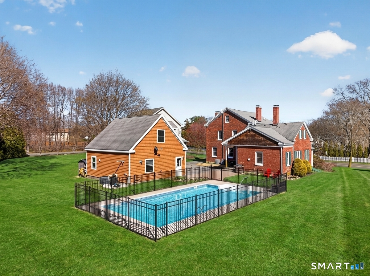 Historic Farmhouse Colonial with Pool, Guest Suite & Walk to Train - Prime Milford, Connecticut Location Best of both worlds-timeless New England charm meets modern luxury living in this beautifully updated 8-room historic Colonial set in a sought-after neighborhood of upscale homes. Ideally located next to the neighborhood grammar school. This 4-bedroom, 2. 5-bath home is rich in character with 7 (potential) fireplaces, gleaming hardwood floors, crown molding, and custom raised panel trim throughout. Enjoy year-round comfort with 3-zone central air conditioning. The main level features a formal living room, formal dining room, and a spacious family room with gas fireplace-perfect for entertaining. The chef's kitchen is a standout with granite countertops, stainless steel appliances, oversized breakfast bar, and a charming brick oven, blending historic detail with modern functionality. A pool-access half bath adds convenience for indoor/outdoor entertaining. Upstairs, find 4 bedrooms, including a bedroom suite with its own staircase and full bath-ideal for multi-generational living, home office, or au pair setup. A walk-up attic for future expansion. Step outside to your private backyard oasis: a level . 63-acre lot featuring an in-ground pool, patio space, and a versatile pool house with finished rec room and bar-perfect for summer. Close to Metro North/New York City train and downtown Milford. This exceptional home offers elegance, comfort, and an unbeatable location! Must see