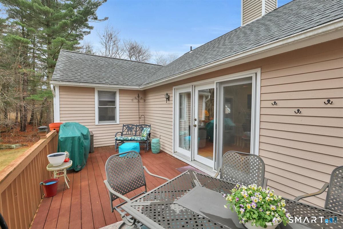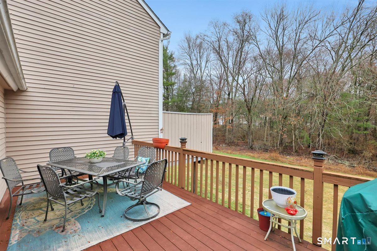 This exceptional ranch style condo in The Villages Freedom Green has so much to offer. Sitting on a quiet corner lot, it is one of the most private units throughout the entire complex. The updated kitchen is spacious and bright leading into the large dining room which is open to the living room, a perfect set up for entertaining. Off of the living room is a large and secluded balcony to enjoy the peaceful outdoors. The primary bedroom sits on the far side of the unit, the second bedroom down the hall and both bathrooms recently renovated. The lower level offers a third full bathroom and two finished rooms with endless possibilities; a third bedroom, office space, gym, family room and so on. Walk out on to the covered patio and into the level backyard. Minutes from shopping, UCONN, and ECSU as well as an easy commute to both Hartford and Boston with association amenities including an inground pool, clubhouse, tennis and basketball courts, this condo has it all!