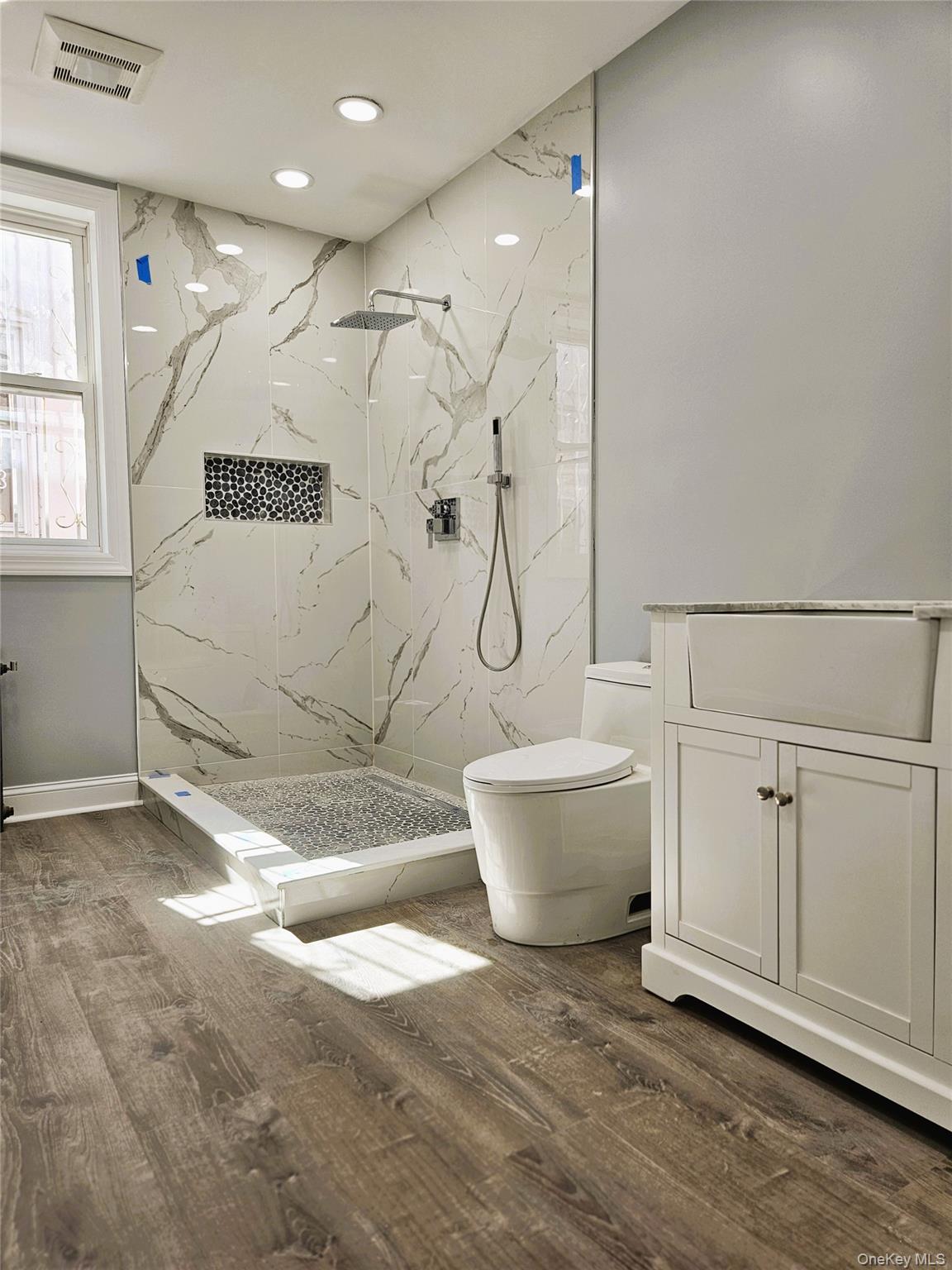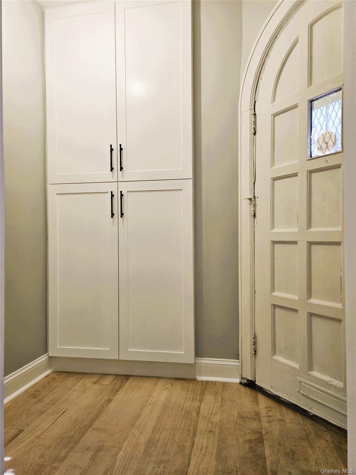 This lovely, large, and spacious Tudor-style home offers 2, 500 sq ft of living space in Zone 4 on a beautiful tree-lined street. It features large rooms, 9-ft ceilings, and a 6x6 entry foyer with glass French door and a new custom coat closet with built-in shelving. Original hardwood floors run through the formal living and formal dining rooms, staircase, upstairs hallway, and bedrooms, soon to be sanded and refinished. The expansive living room boasts a large stone fireplace, crown molding, and a real crystal chandelier, while the formal dining room has new crown molding and a second real crystal chandelier. The brand-new eat-in kitchen showcases white shaker cabinets, quartz countertops, stainless steel appliances, recessed lighting, new flooring, a new window, and a large custom pantry with built-in shelving. There’s a new half bath on the first floor and a large full bath upstairs with a 5x4 shower with built-in shelve, Delta rainfall shower head, vanity, infinity drain, recessed lighting, Delta faucets, and new flooring. Additional updates include new rear exit stairs, a 10-ft walk-in closet in the basement with new flooring. Fresh paint and plaster, new light switches and panels, and approximately 20 new interior doors with new moldings and casings. The large, full finished basement has two outside entrances. Zoned for easy conversion into a legal two- or three-family home! Rental $3, 500/ $2, 000. Conveniently located minutes from LGA Airport, parkways, parks, playgrounds, public transit, shopping, restaurants, and schools, with a quick commute to Manhattan. This beautiful home offers plenty of space and a fantastic layout with endless possibilities.