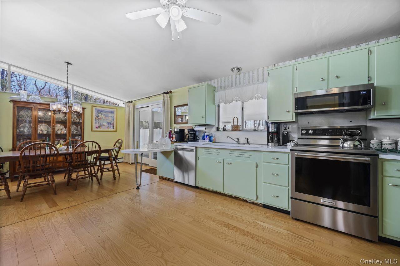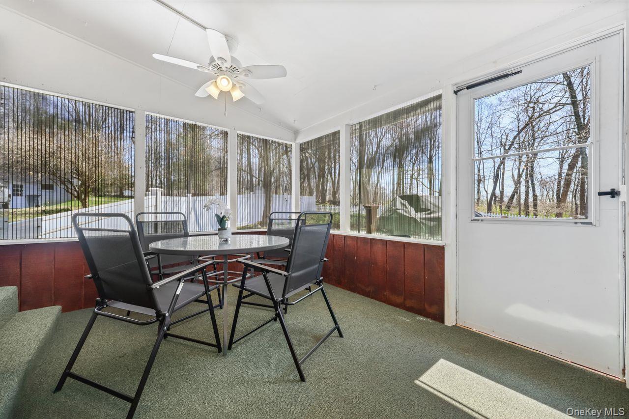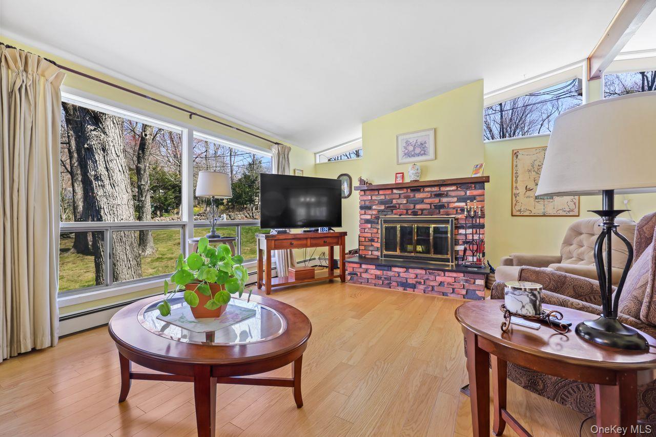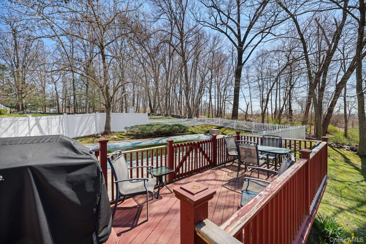 Welcome home to this inviting 3-bedroom, 2. 5-bath raised ranch offering vaulted ceilings and an open-concept layout filled with natural light. The spacious kitchen flows seamlessly into the dining area and features sliders leading to a screened-in porch, perfect for indoor-outdoor living. The living room is warm and welcoming with a wood-burning fireplace and large windows that flood the space with sunlight. The main level is anchored by a primary bedroom with en-suite bath, plus two additional bedrooms and a full hall bathroom, providing comfortable accommodations for all. The lower level expands your living space with an oversized family room, half bath, and laundry room, along with access to the two-car garage—ideal for everyday convenience. Outside, enjoy a true backyard retreat featuring a screened-in porch, deck, and an in-ground pool with patio, all set within a generous yard perfect for entertaining or relaxing all summer long. Ideally located just 1 mile to the Brewster Train Station and 2 miles to I-684, this home offers an easy commute and is situated just over the Westchester County border, blending convenience with suburban charm.