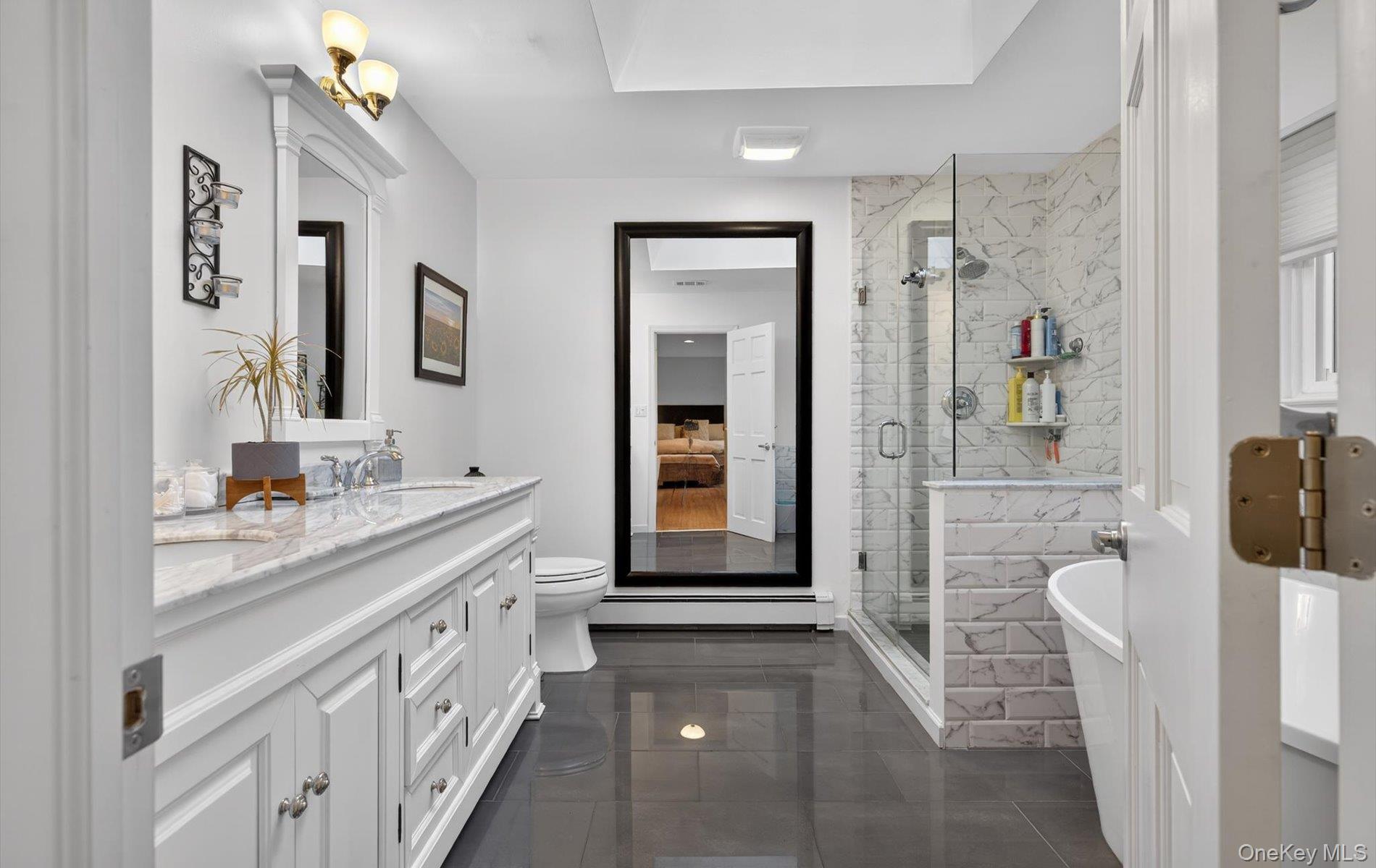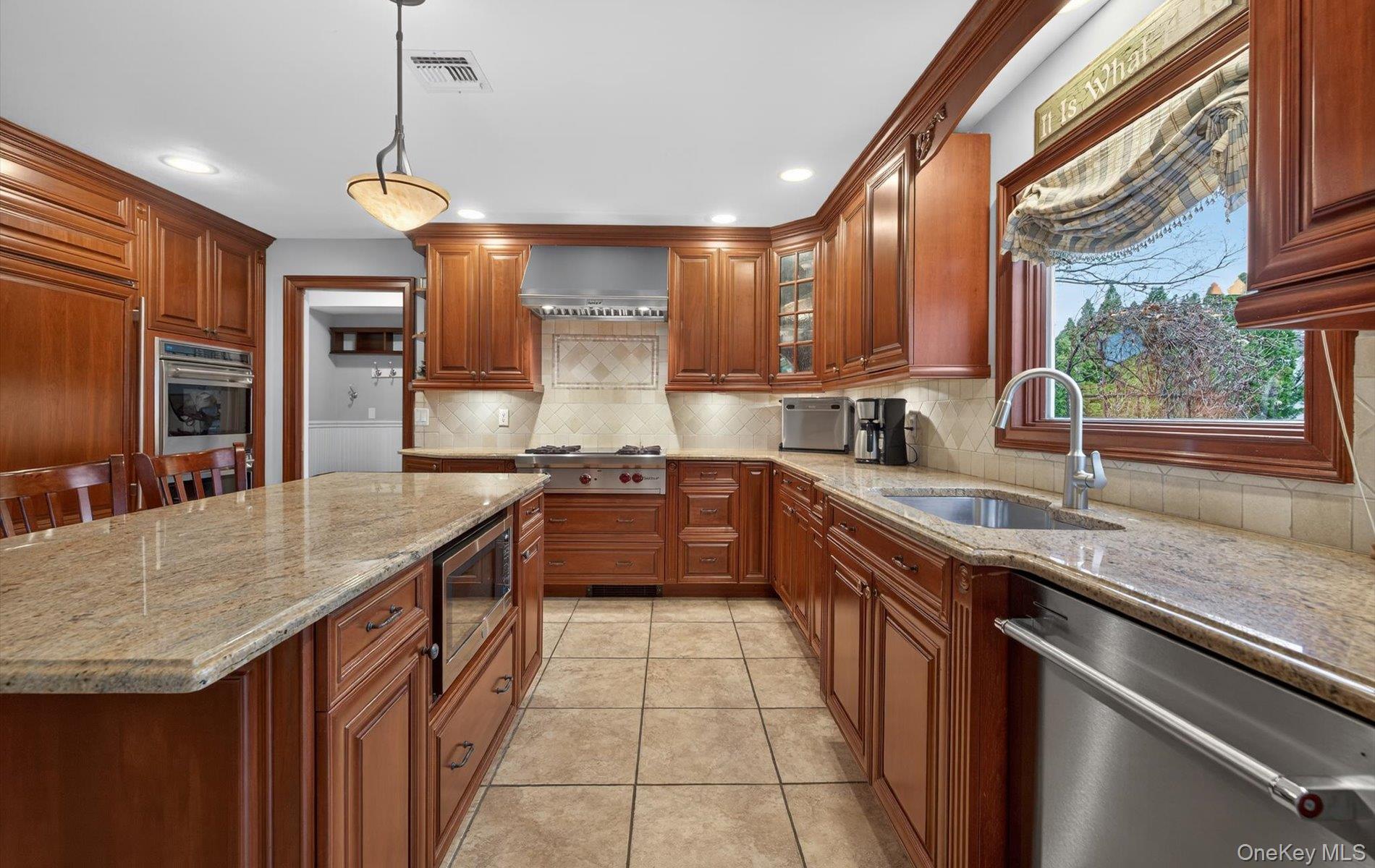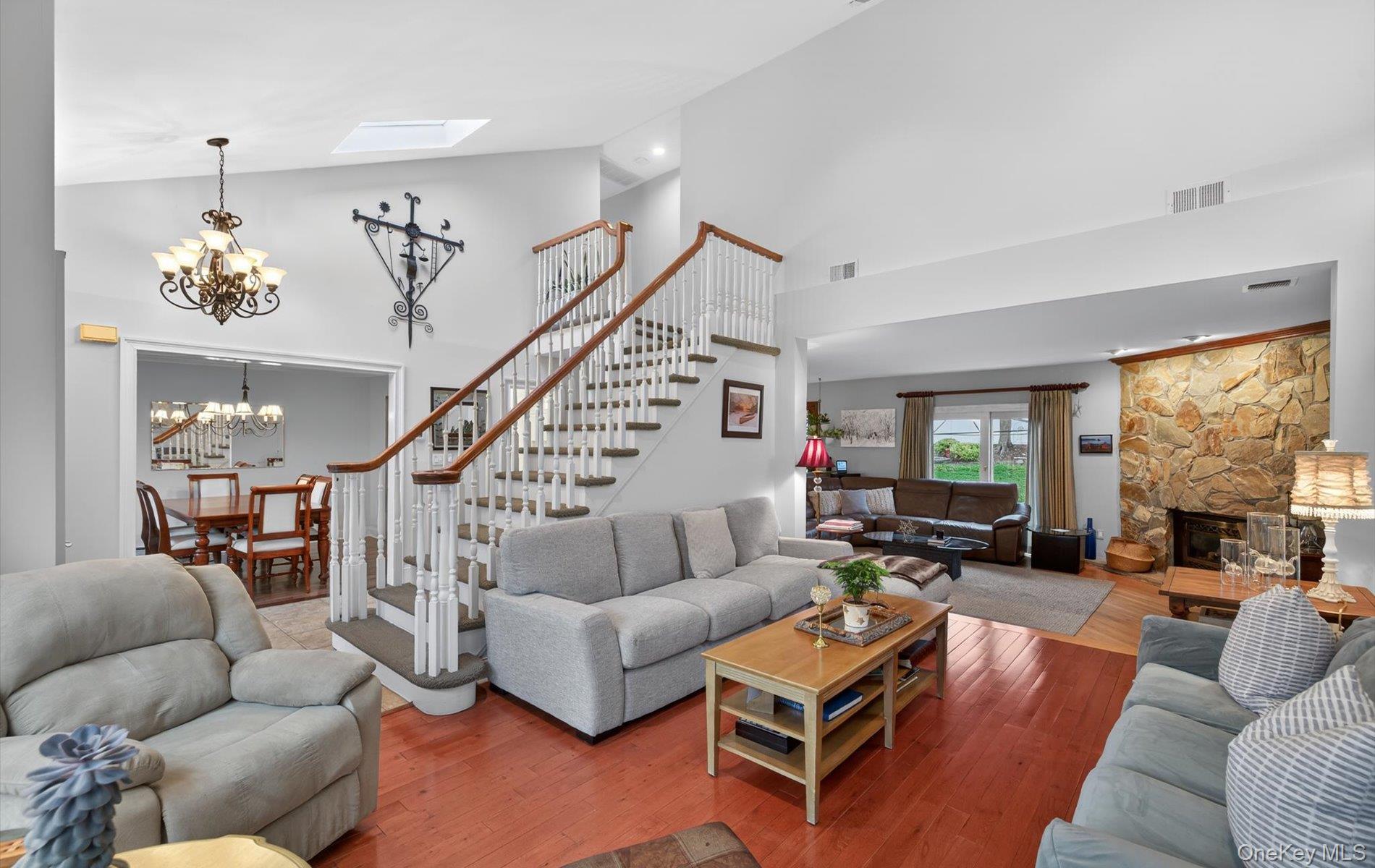 Welcome to this exceptional 5-bedroom Colonial with a FULL BASEMENT! Located in the highly desirable Country Woods community within Commack School District #10. Beautifully maintained, this impressive home offers the perfect blend of space, elegance, and comfort. Step into the grand two-story foyer with soaring vaulted ceilings, creating a dramatic first impression and setting the tone for the home’s spacious and inviting open layout. The custom chef’s kitchen is designed for both everyday living and entertaining, featuring granite countertops, top-of-the-line stainless steel appliances, and recessed lighting. The primary suite serves as a private retreat, complete with a newly renovated full bathroom and a walk-in closet. Additional highlights include a gas fireplace and newer central air conditioning, providing year-round comfort and efficiency. The full basement offers excellent storage and endless potential. Step outside to your private resort-style backyard set on . 38 acres, designed for exceptional outdoor entertaining with a patio and a spacious lounge area perfect for gatherings. The flat property also offers plenty of room for a future pool. Conveniently located just minutes from shopping, parks, and major roadways, this remarkable home combines luxury, privacy, and everyday convenience.