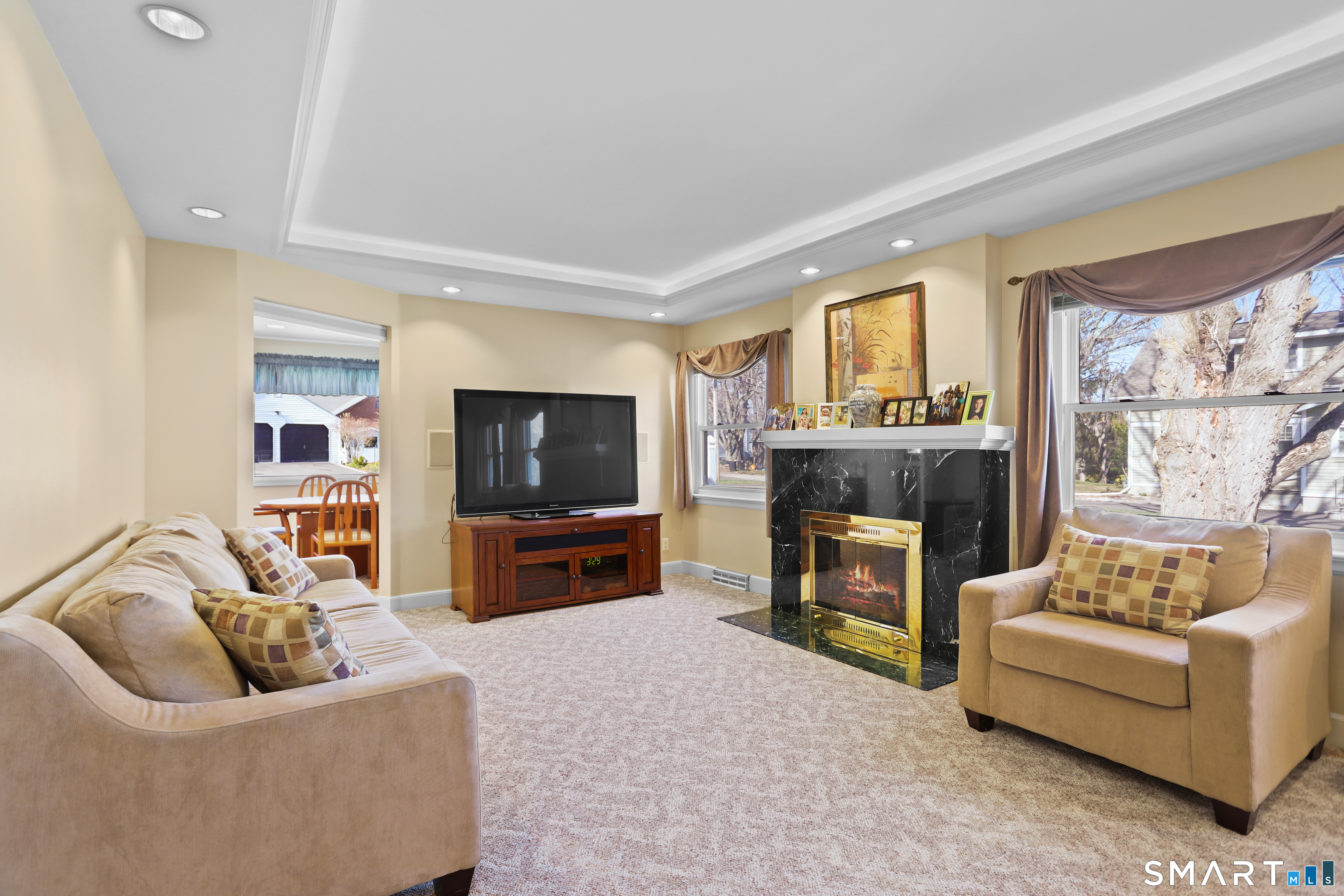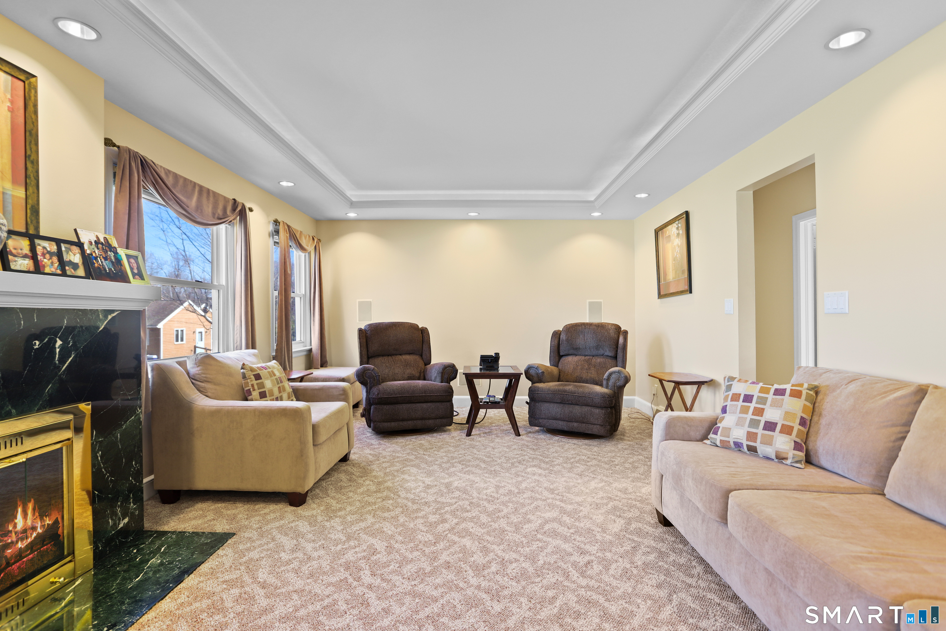 Thoughtfully appointed, this home offers a perfect blend of everyday comfort and standout features in a sought-after private cul-de-sac location. Main Level is enhanced by stylish pod lighting creating warm & inviting atmosphere throughout. Oversized LR s features cozy fireplace & illuminated tray ceiling that adds architectural interest. The Formal DR is highlighted by a large picture window that fills the space with natural light. The expansive kitchen offers abundant cabinetry & workspace, along with dedicated dining area and convenient slider access to the private Trex deck-perfect for seamless indoor/outdoor living. A closeted washer/dryer and additional coat closet add to the home's everyday functionality. The Primary Bedroom Suite is a true retreat, complete with comfortable sitting area, generous walk-in closets, sliders leading to a private Trex deck. The en-suite bath features a shower w/skylight, bringing in beautiful natural light. The upper level offers 2 BR, including one with an ante room ideal for hobbies, office space, or a sitting area, plus a smaller third with the potential to be finished into a full bath-offering excellent expansion opportunities. Additional highlights include 3-zone heating for efficiency and comfort and rare Oversized Heated Garage with space for four cars-incredible feature for car enthusiasts, hobbyists or tradespeople seeking a functional workspace. Large level private yard for outdoor entertaining or peaceful relaxation!