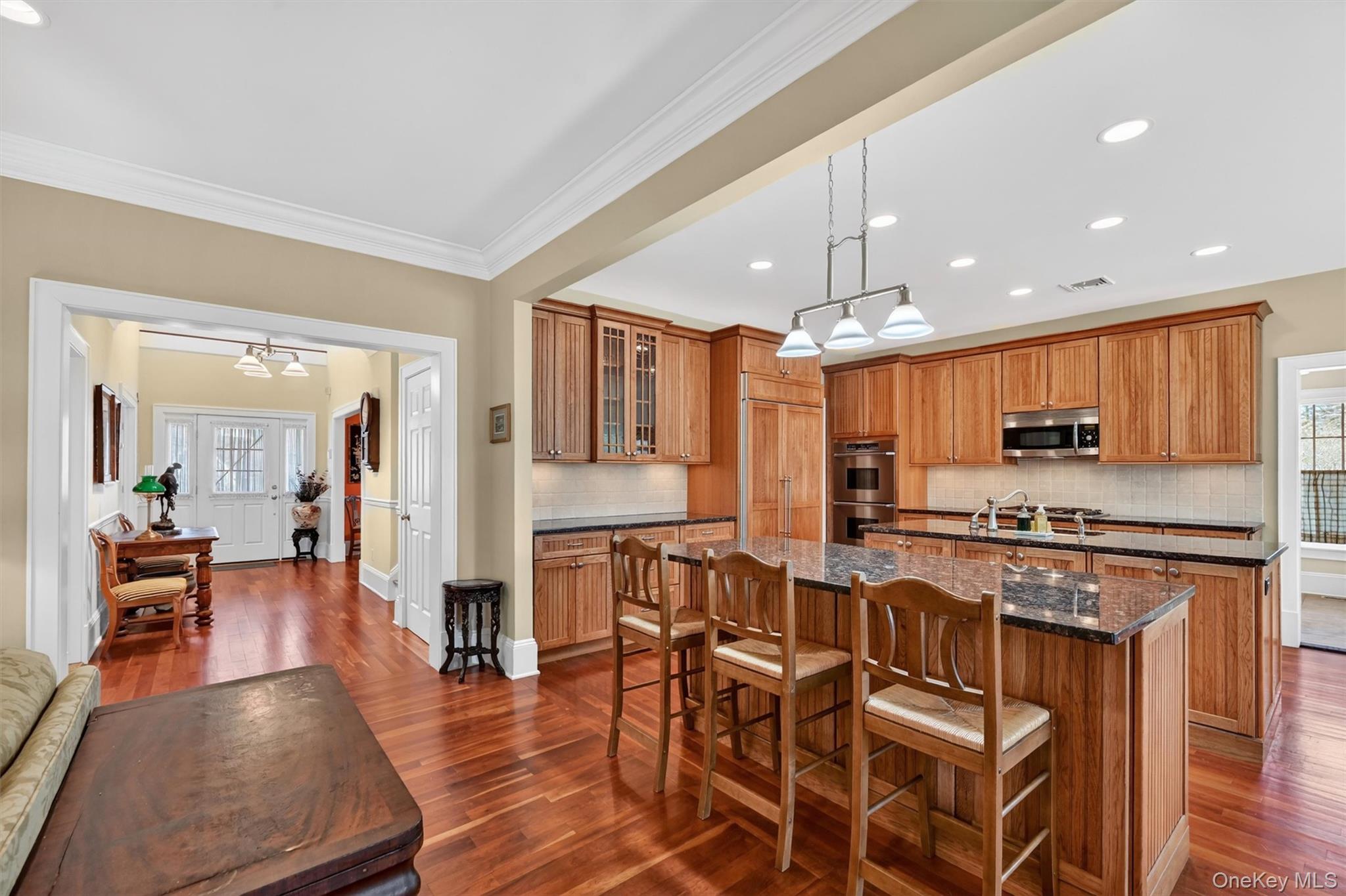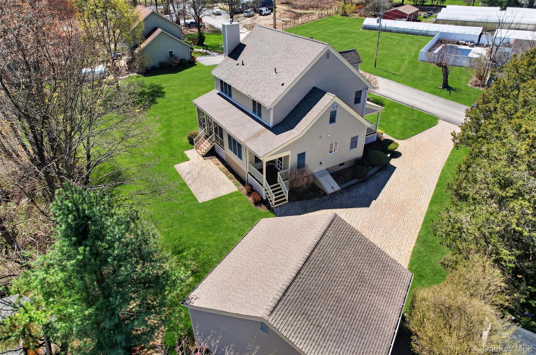 Welcome to 3 Clinton Avenue Extension, located in the heart of the Village of Warwick, NY, where modern construction meets timeless farmhouse charm. This thoughtfully designed home offers the perfect balance of privacy and convenience, just moments from the vibrant shops, dining, and lifestyle of Warwick in Orange County, NY. Custom built in 2006 and lovingly maintained by its original owners, this home reflects a true pride of ownership, with careful attention to detail evident throughout. Set on beautifully landscaped grounds, a paver driveway and detached two-car garage create a striking first impression. Inside, Brazilian cherry hardwood floors span the home, complemented by a layout designed for both everyday living and effortless entertaining. The open-concept kitchen serves as the heart of the home, featuring two islands, abundant cabinetry, and a seamless connection to the formal dining room through a well-appointed butler’s pantry. The kitchen is equipped with premium panel-ready appliances, including a Miele dishwasher, Kitchenaide refrigerator, Advantium 120 microwave, and Dacor cooktop and double wall ovens, offering both performance and reliability for cooking and entertaining. This combination of high-end features and thoughtful design creates a space that truly meets the expectations of today’s discerning buyers. Just off the kitchen and family room, a stunning screened porch with custom removable panels provides a versatile indoor-outdoor living experience—easily enjoyed as a screened retreat or open-air space. A paver patio extends the living area even further, ideal for outdoor dining and summer gatherings. The home offers four spacious bedrooms and 3. 5 baths, including flexible living options ideal for multigenerational households, a live-in nanny, or a main-level primary suite. The second level features three generously sized bedrooms, including a primary suite with double vanities, a soaking tub, tiled shower, and dual closets. A main-level office keeps daily life organized, while a second office upstairs supports today’s work-from-home lifestyle. Additional highlights include a powder room and main floor laundry, a partially finished basement (adding 600 additional sqft of finished space) perfect for recreation, fitness, or media use, and an unfinished workshop area ideal for hobbyists or craftspeople. The attic, currently accessible via pull-down stairs, offers exciting potential for future finished living space. With municipal services, a prime village location, and a rare combination of charm, functionality, and high-end features, 3 Clinton Ave Ext. presents a unique opportunity in one of Warwick’s most desirable settings.