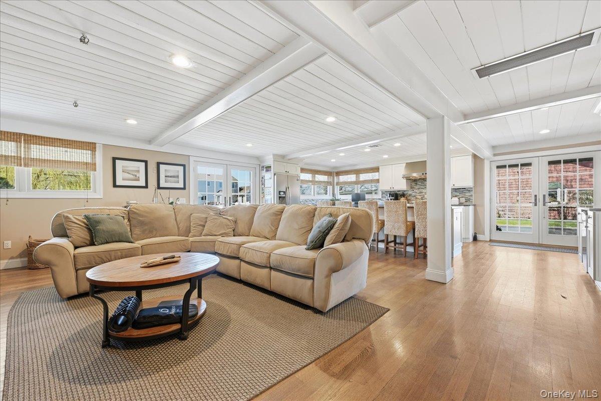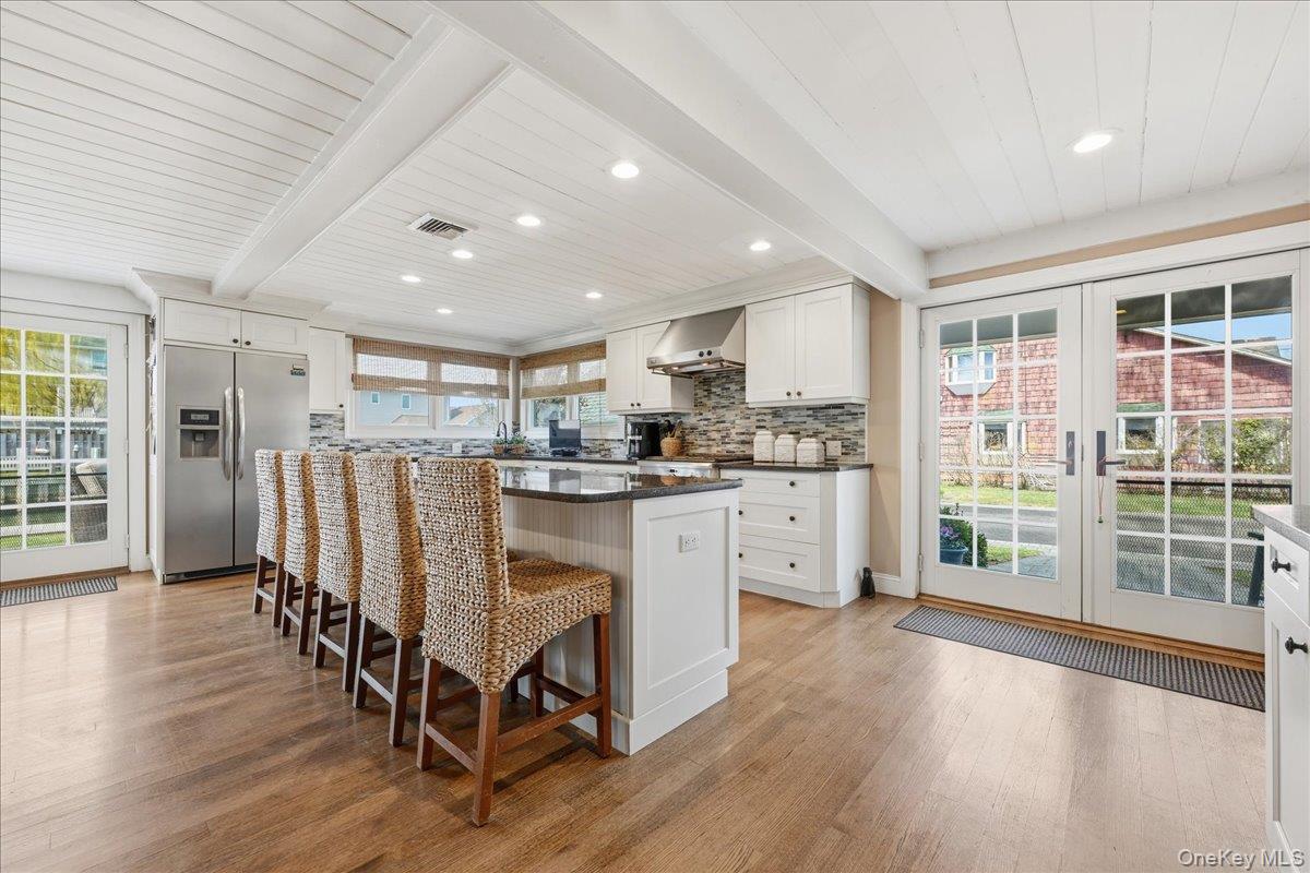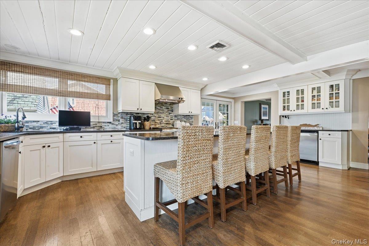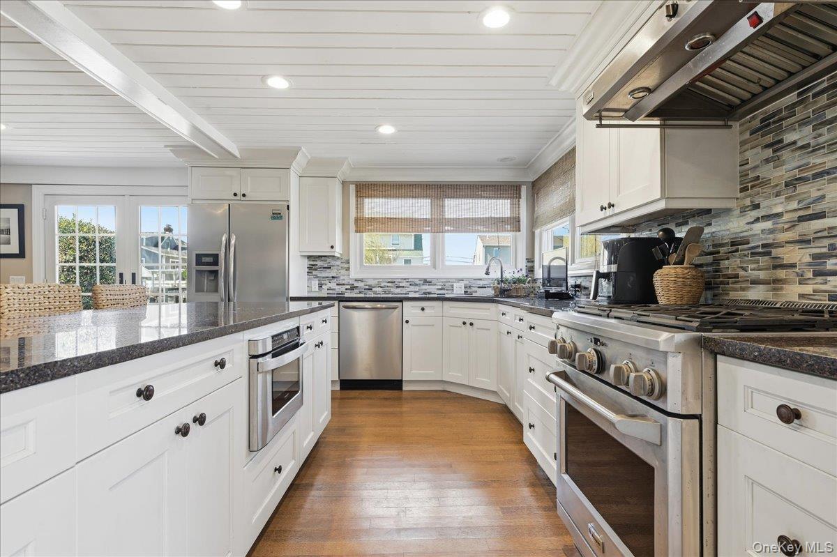 Stunning waterfront home in the heart of charming Babylon Village, offering the perfect blend of luxury, comfort, and coastal living. This beautifully maintained residence features 5 spacious bedrooms and 2. 5 updated bathrooms, along with 100 feet of navy bulkhead and a private guest house/rec room, ideal for entertaining or extended stays. The custom kitchen is appointed with granite countertops, a stone backsplash, detailed crown molding, and a large center island, flowing seamlessly into inviting living spaces with hardwood floors throughout and two fireplaces. The primary suite offers a private balcony and ensuite bath, while additional bedrooms feature vaulted ceilings and generous storage. Enjoy modern conveniences including central air, a Navien tankless system, 6-zone heating (4 zones in the main house), radiant heat on the first floor, a generator hookup, updated electric with 200-amp service plus a 100-amp subpanel, and a large attic for ample storage. Outdoor living is just as impressive, with an outdoor shower, electric awning, and ideally located close to the open bay for convenient boating. You’ll love being near local shops, restaurants, parks, and the LIRR. Residents also enjoy Babylon Village amenities, including access to the Village Pool, Golf Course, private garbage pick-up, and Town of Babylon beaches. Babylon Village Schools! A rare opportunity to own a true waterfront retreat in one of Babylon Village’s most desirable locations.