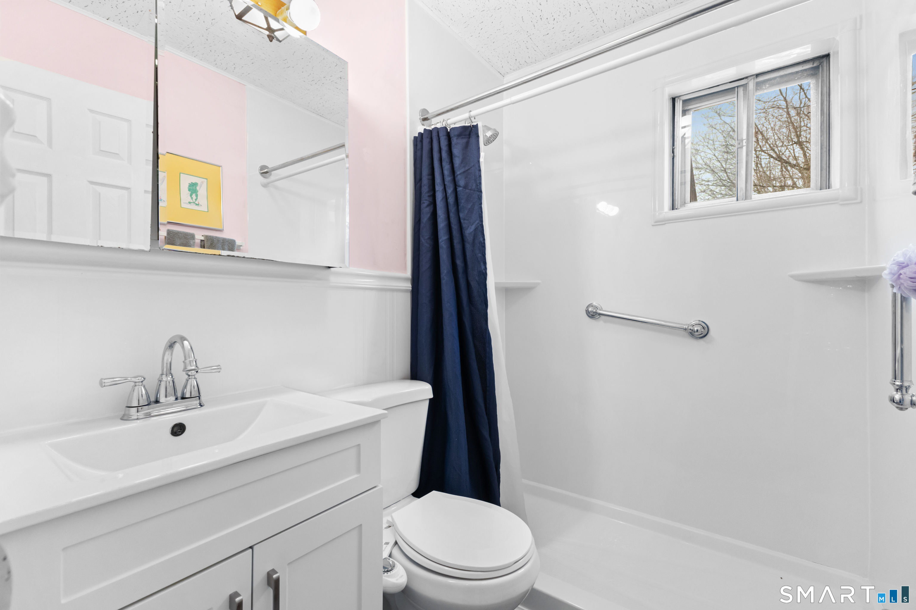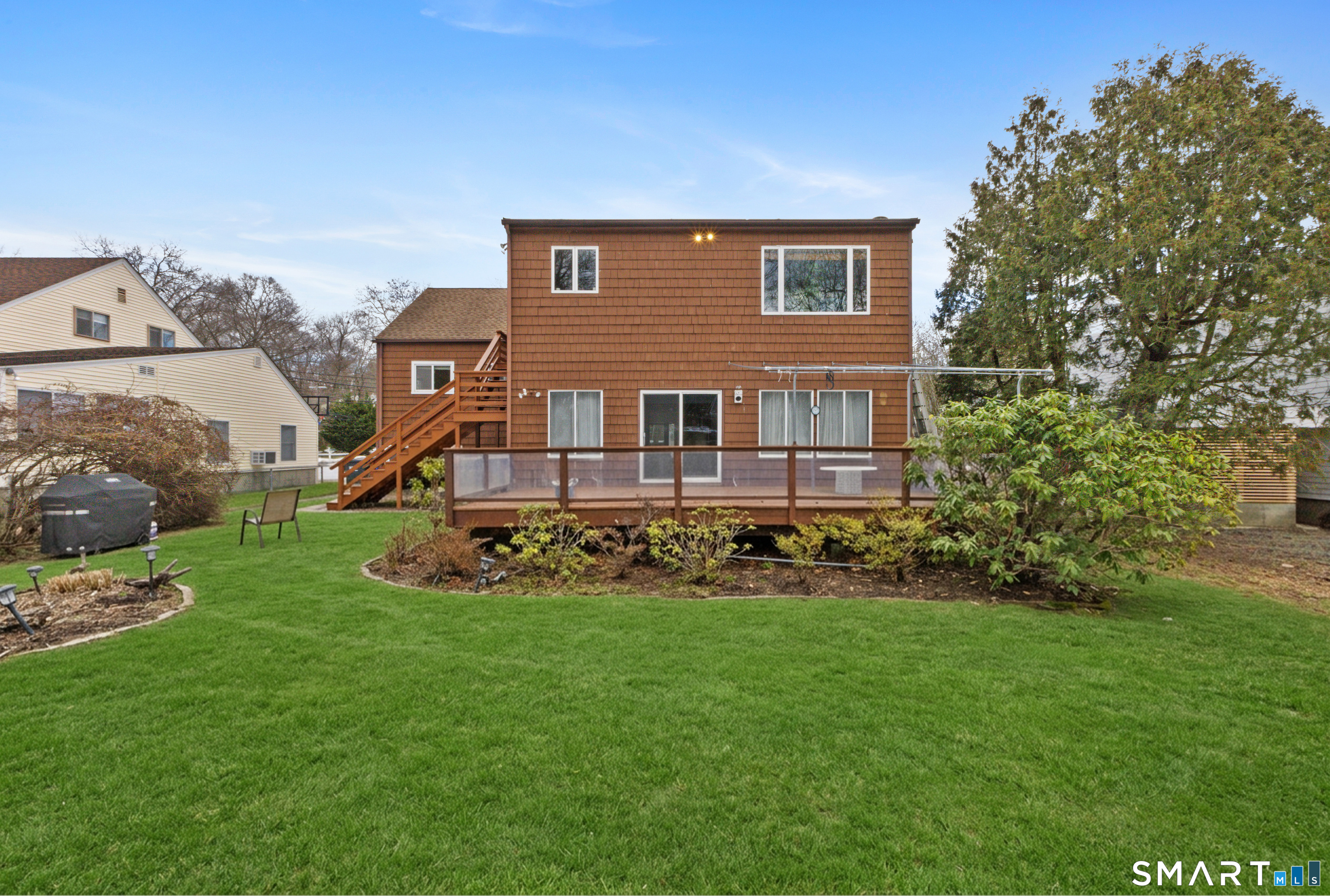 Set on a quiet, sought-after street, this spacious five-bedroom, three-bath split-level home spans 2, 911 square feet of bright, comfortable space. The main level features an eat-in kitchen and a large open dining and family room with an electric fireplace, ideal for gathering and everyday living. Sliders off the dining and family area lead to a generous deck overlooking a level yard, well suited for indoor-outdoor entertaining. A sun-filled living room with a bay window adds welcoming charm.