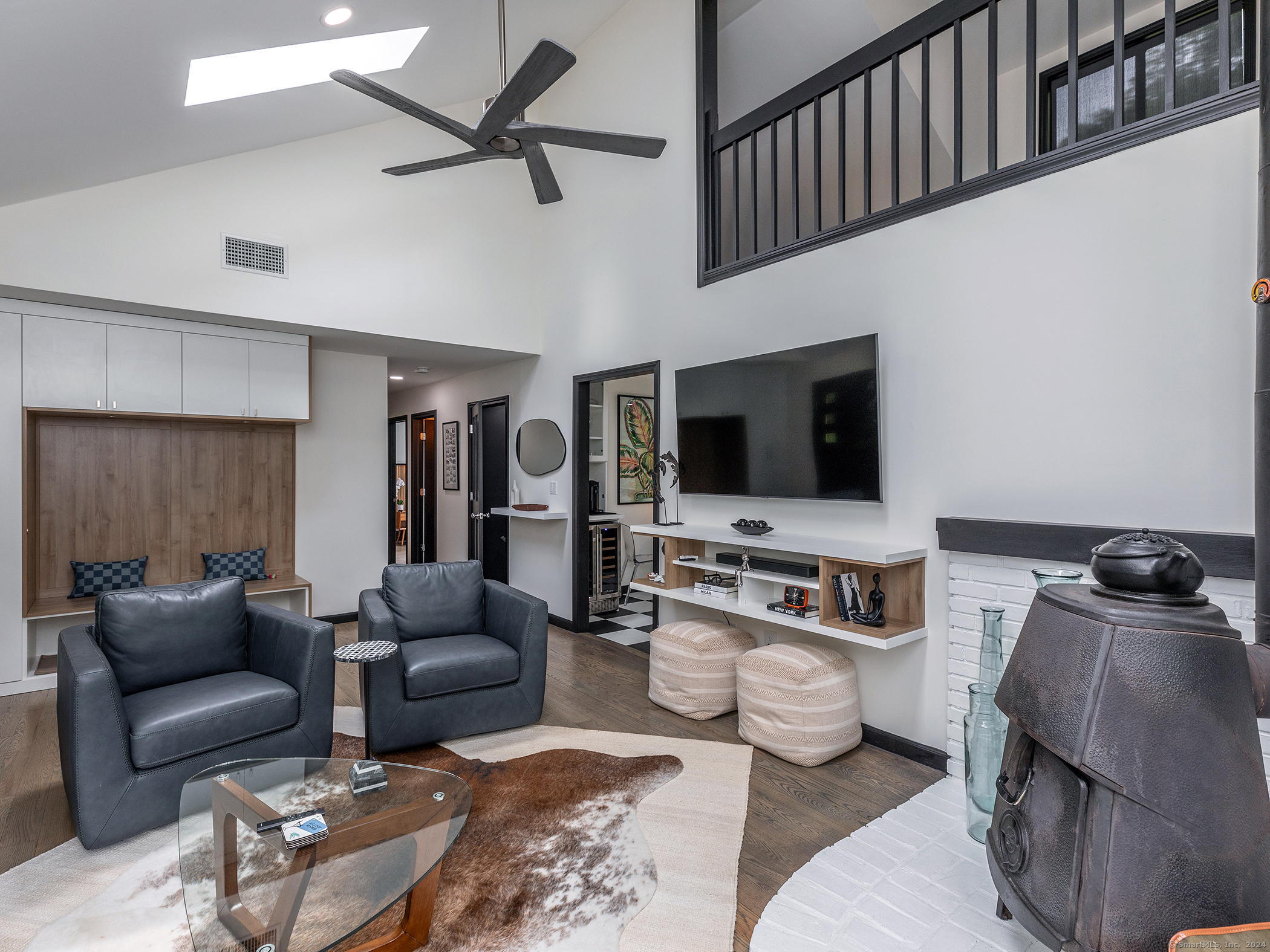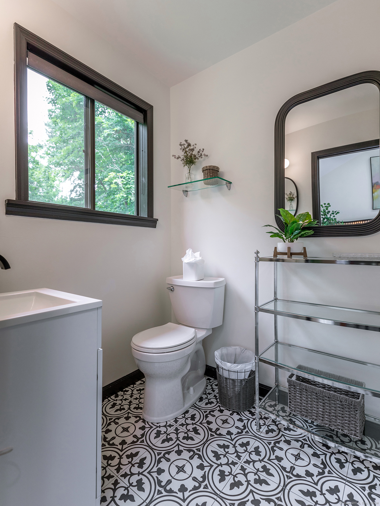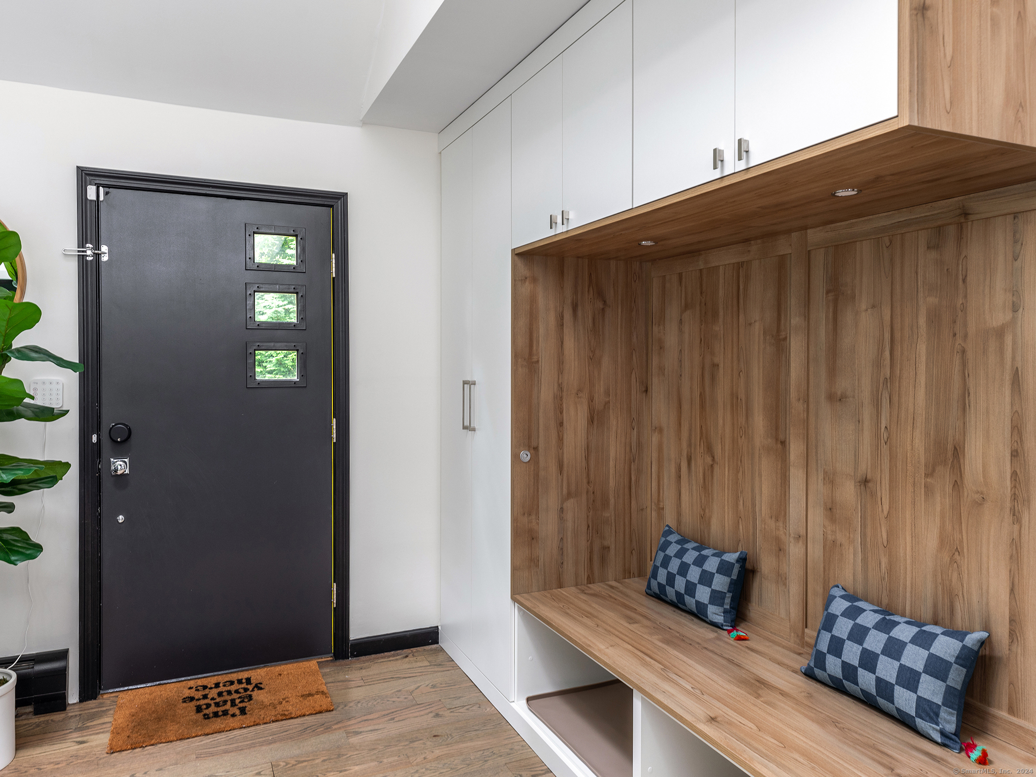 Stylish and well appointed 3 bedroom 2 and 1/2 bath contemporary cape surrounded by nature. Set back on a scenic road, this home offers bright and airy spaces including dramatic 16ft ceilings in the living room with wood burning stove. Large, modern kitchen with brand new island with seating and convenient access to outdoor deck for entertaining. Primary bedroom with ensuite 1/2 bath, additional guest room and full hallway bathroom on the main level. Well maintained hardwood floors. 2nd floor loft for relaxing or separate office space. Lower level can be used as a comfortable guest suite and has a bonus living space with kitchenette, media room with movie projector, bedroom and full bath. Separate private entrance and walk out to spacious backyard with firepit. Close to Kent, New Preston and Washington for shopping and dining. Good proximity to hiking trails. 90 min to NYC. Furnishings available.
