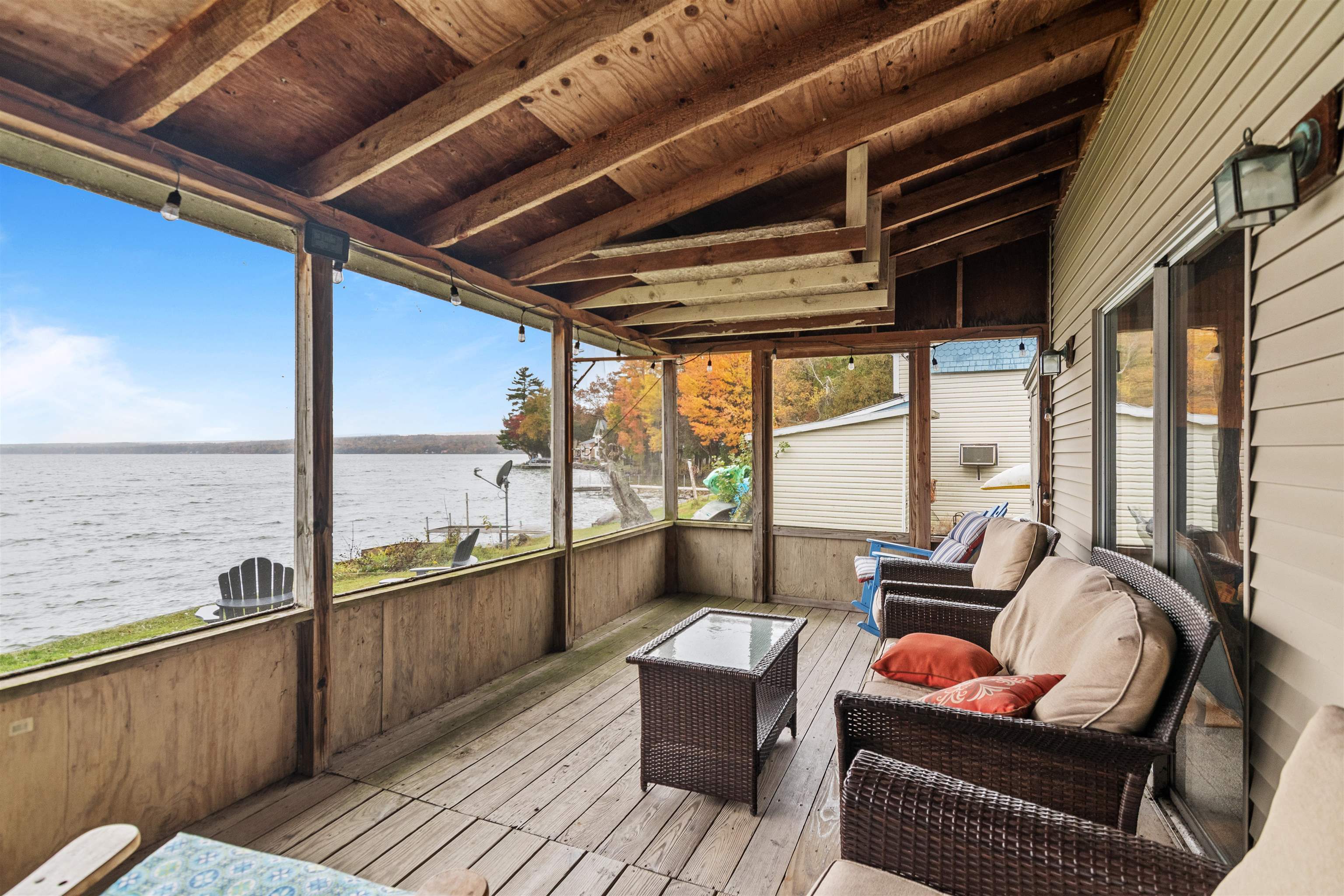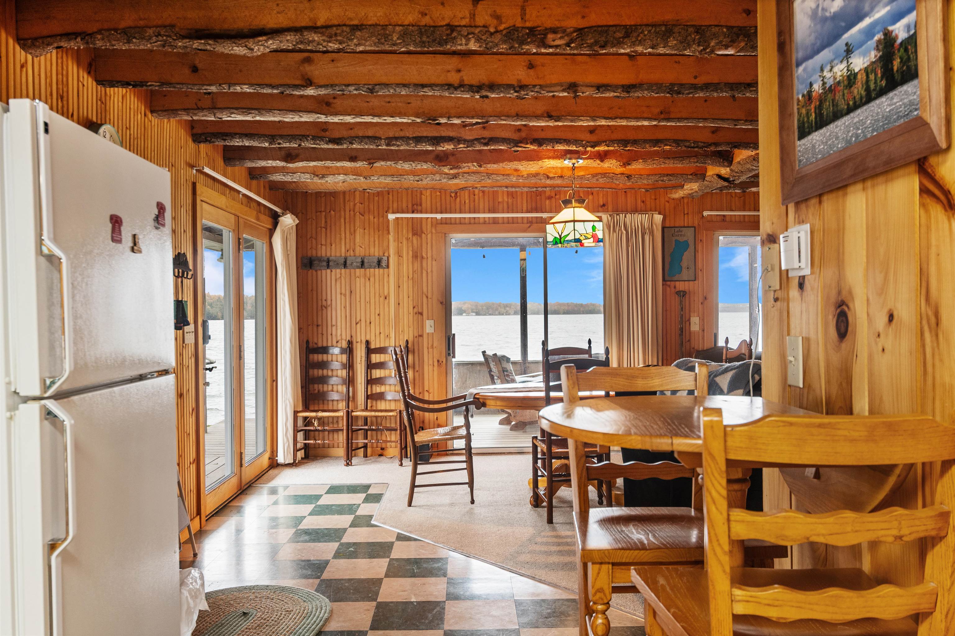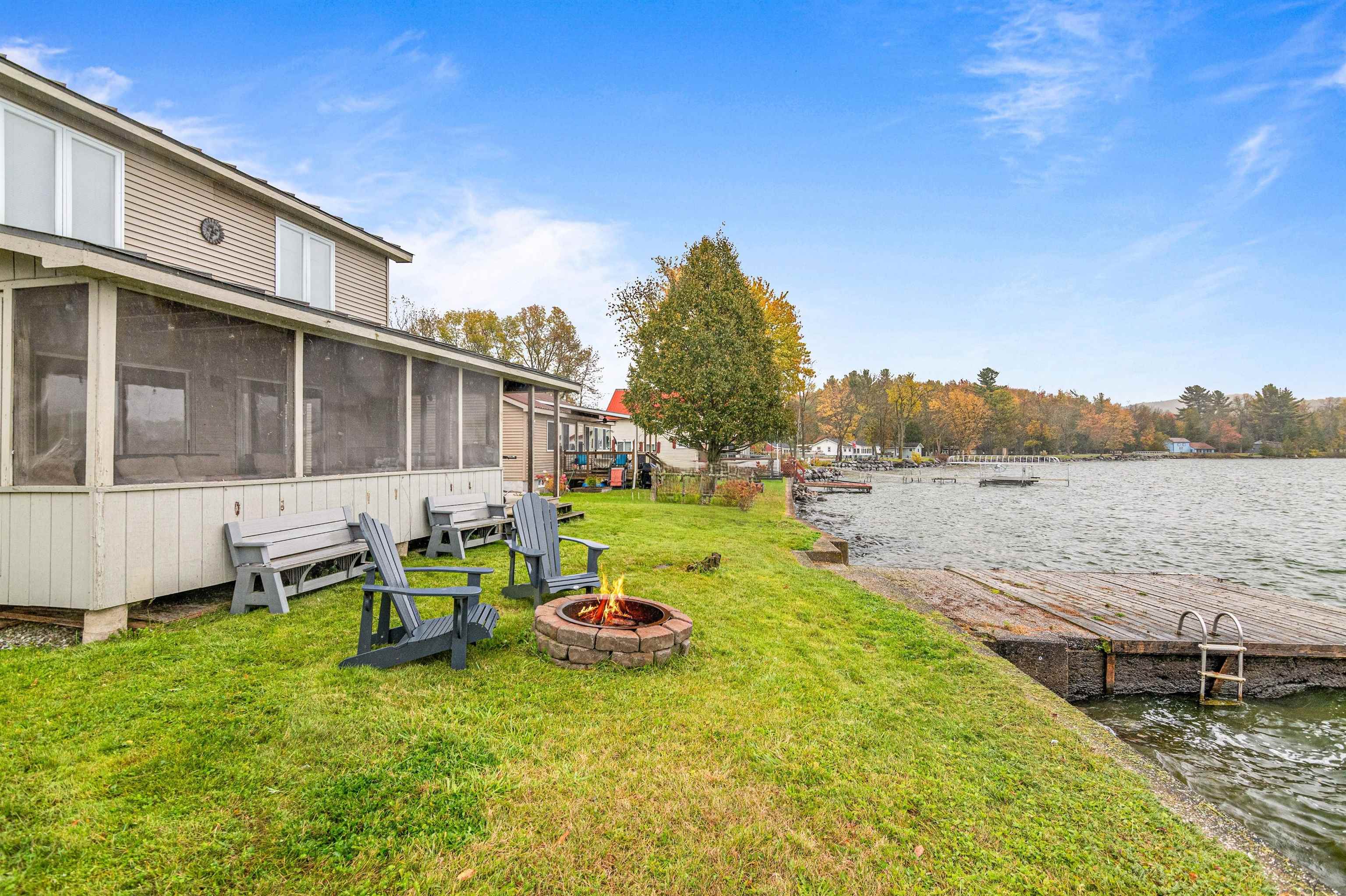 Breathe easy and slow down at your home away from home on Lake Carmi. Mornings begin with calm water and the sound of loons in the distance. Coffee on the porch, a light breeze coming off of the lake, and a full day ahead that can be as active or as quiet as you want it to be. This three bedroom, two bath seasonal home is designed to take full advantage of its lakefront setting. The main level opens toward the lake with expansive views south through double sliding glass doors, filling the living space with natural light. Exposed live edge beams bring the wilderness of Vermont inside as you gather after a day outside. The screened-in porch will become your go-to space for summer living. Extend your mornings, enjoy long dinners, or unwind at the end of the day watching the sunset dance across the settling waves. Three comfortable bedrooms are located on the second floor along with a half bath. Plentiful windows allow you to take in lake views and cool night breezes. Outside, a private concrete dock puts you right on the water for boating, swimming, and fishing, with 7. 5 miles of shoreline to paddle and explore. The property sits on owned land, a meaningful distinction on Lake Carmi where leased lots are common and add long-term uncertainty. The lake is home to a significant peat bog that draws in wildlife and creates a unique natural landscape, and the birdwatching here is some of the best you will find in Northern Vermont. For anglers, Lake Carmi is well known for its fishing, with walleye, northern pike, and bass all part of the experience right off your dock or a short boat ride away. The property has operated as a successful short term rental in the recent past, offering flexibility for those considering a mix of personal use and income potential. If you have been looking for a place where summer stretches a little longer and lake life feels easy and approachable, this is your opportunity to be part of one of Franklin County’s most loved waterfront communities.