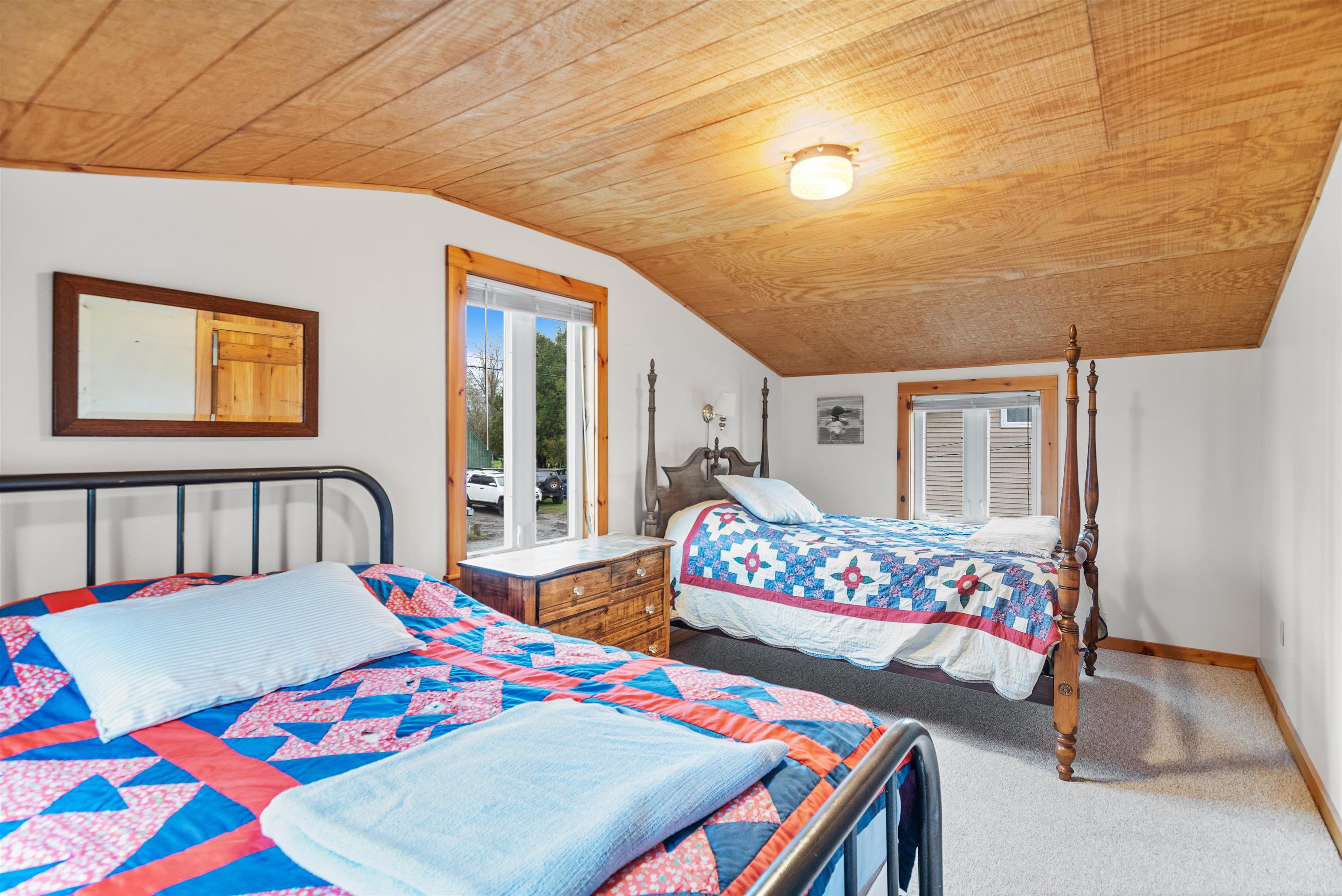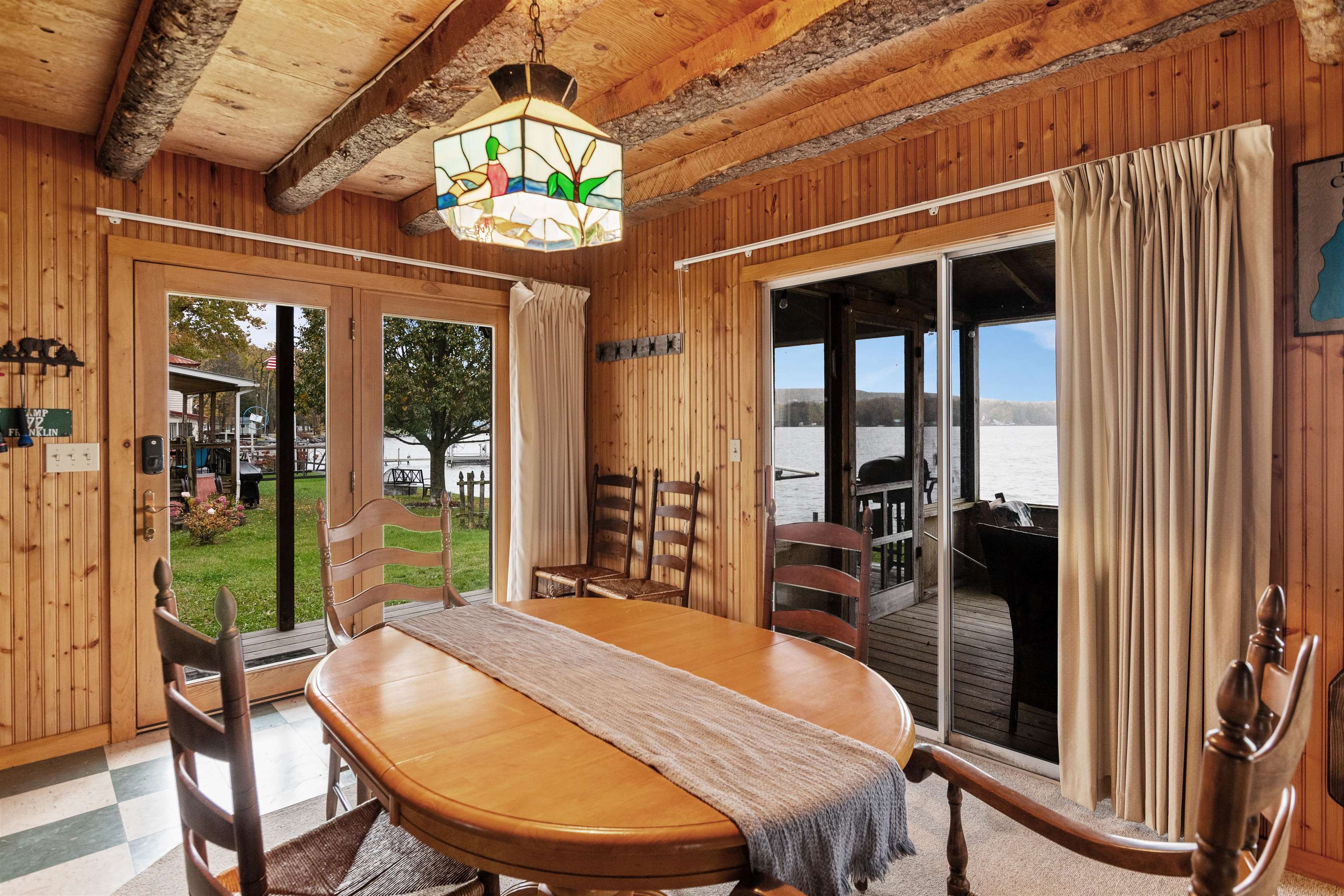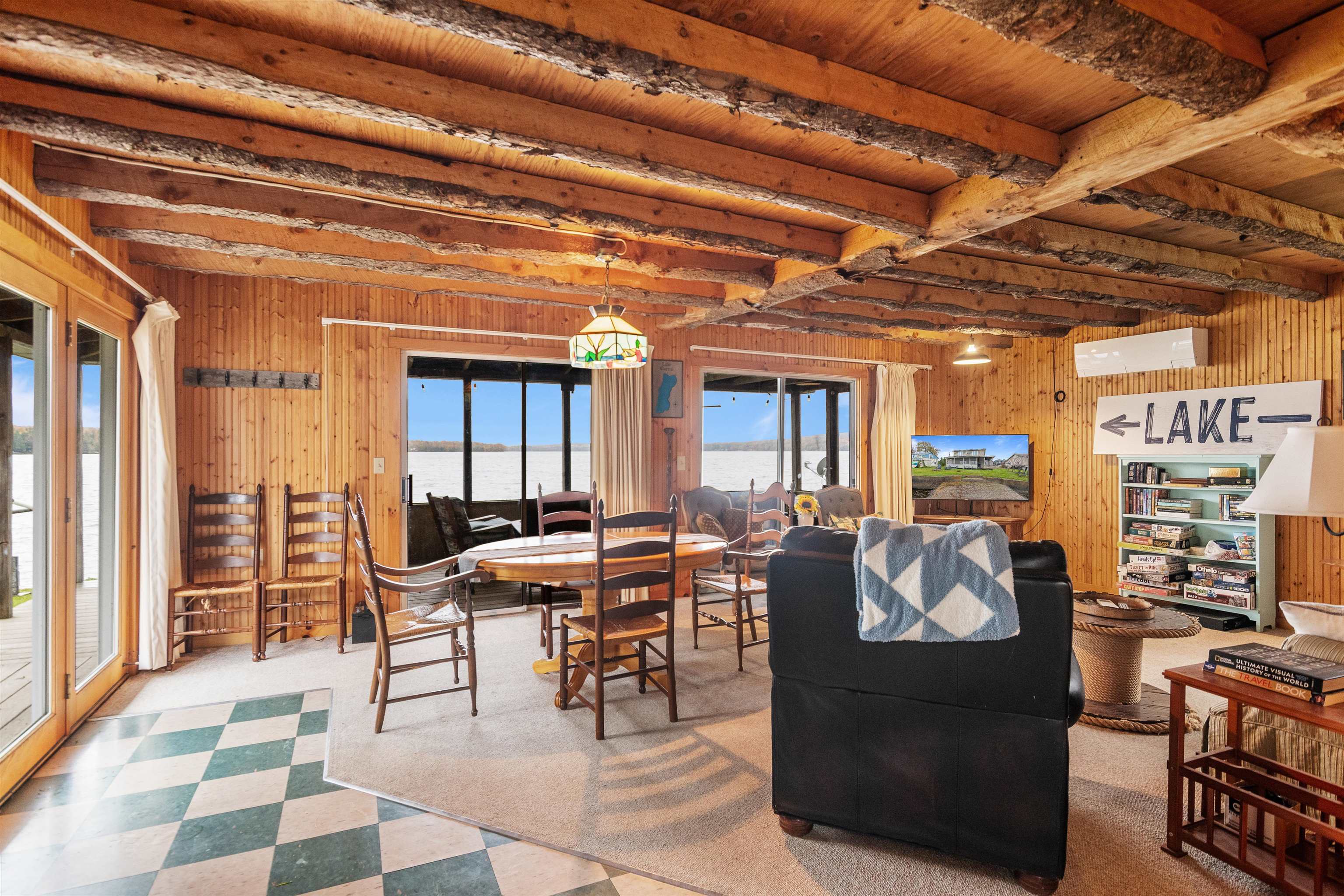 Breathe easy and slow down at your home away from home on Lake Carmi. Mornings begin with calm water and the sound of loons in the distance. Coffee on the porch, a light breeze coming off of the lake, and a full day ahead that can be as active or as quiet as you want it to be. This three bedroom, two bath seasonal home is designed to take full advantage of its lakefront setting. The main level opens toward the lake with expansive views south through double sliding glass doors, filling the living space with natural light. Exposed live edge beams bring the wilderness of Vermont inside as you gather after a day outside. The screened-in porch will become your go-to space for summer living. Extend your mornings, enjoy long dinners, or unwind at the end of the day watching the sunset dance across the settling waves. Three comfortable bedrooms are located on the second floor along with a half bath. Plentiful windows allow you to take in lake views and cool night breezes. Outside, a private concrete dock puts you right on the water for boating, swimming, and fishing, with 7. 5 miles of shoreline to paddle and explore. The property sits on owned land, a meaningful distinction on Lake Carmi where leased lots are common and add long-term uncertainty. The lake is home to a significant peat bog that draws in wildlife and creates a unique natural landscape, and the birdwatching here is some of the best you will find in Northern Vermont. For anglers, Lake Carmi is well known for its fishing, with walleye, northern pike, and bass all part of the experience right off your dock or a short boat ride away. The property has operated as a successful short term rental in the recent past, offering flexibility for those considering a mix of personal use and income potential. If you have been looking for a place where summer stretches a little longer and lake life feels easy and approachable, this is your opportunity to be part of one of Franklin County’s most loved waterfront communities.