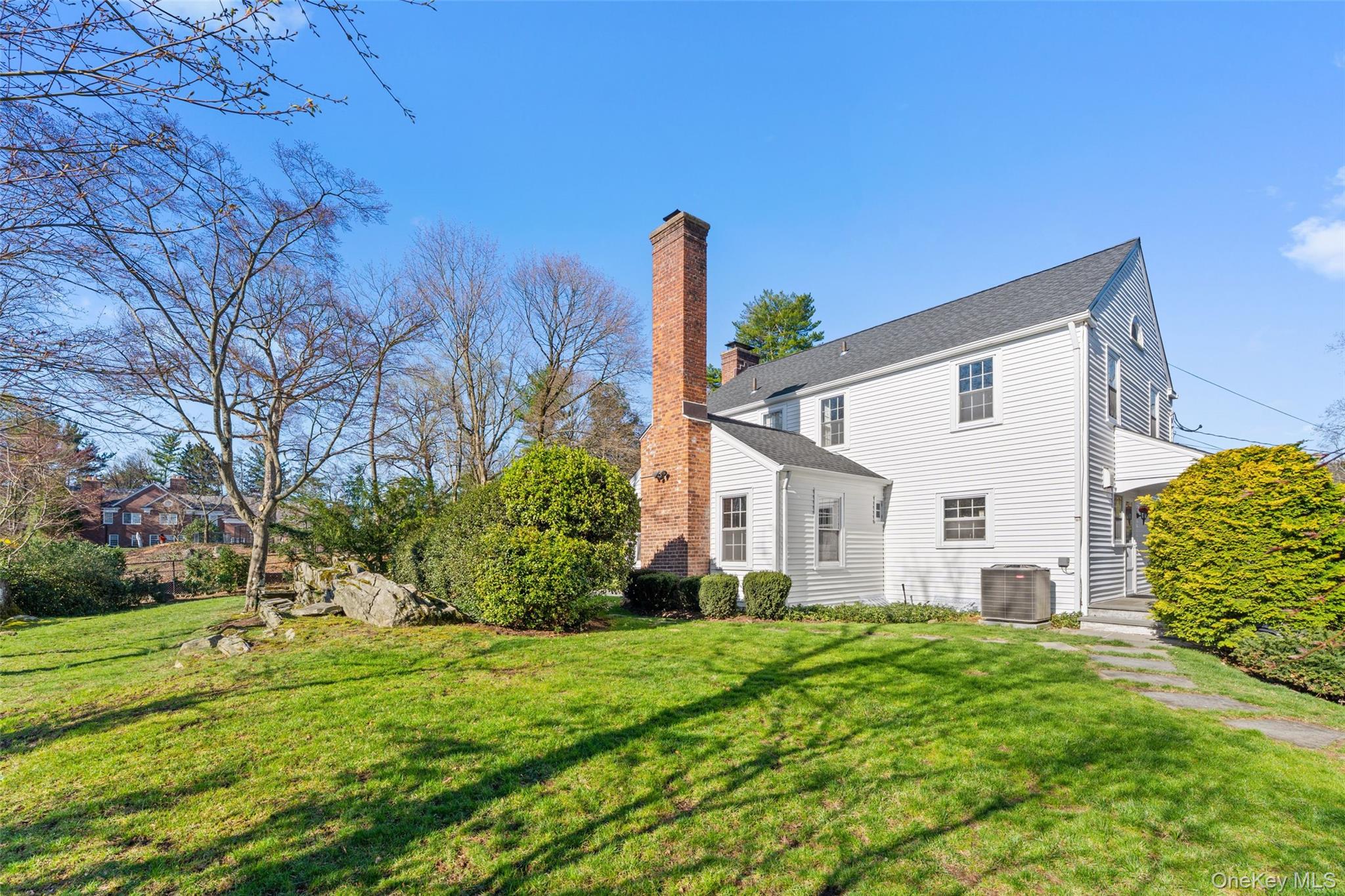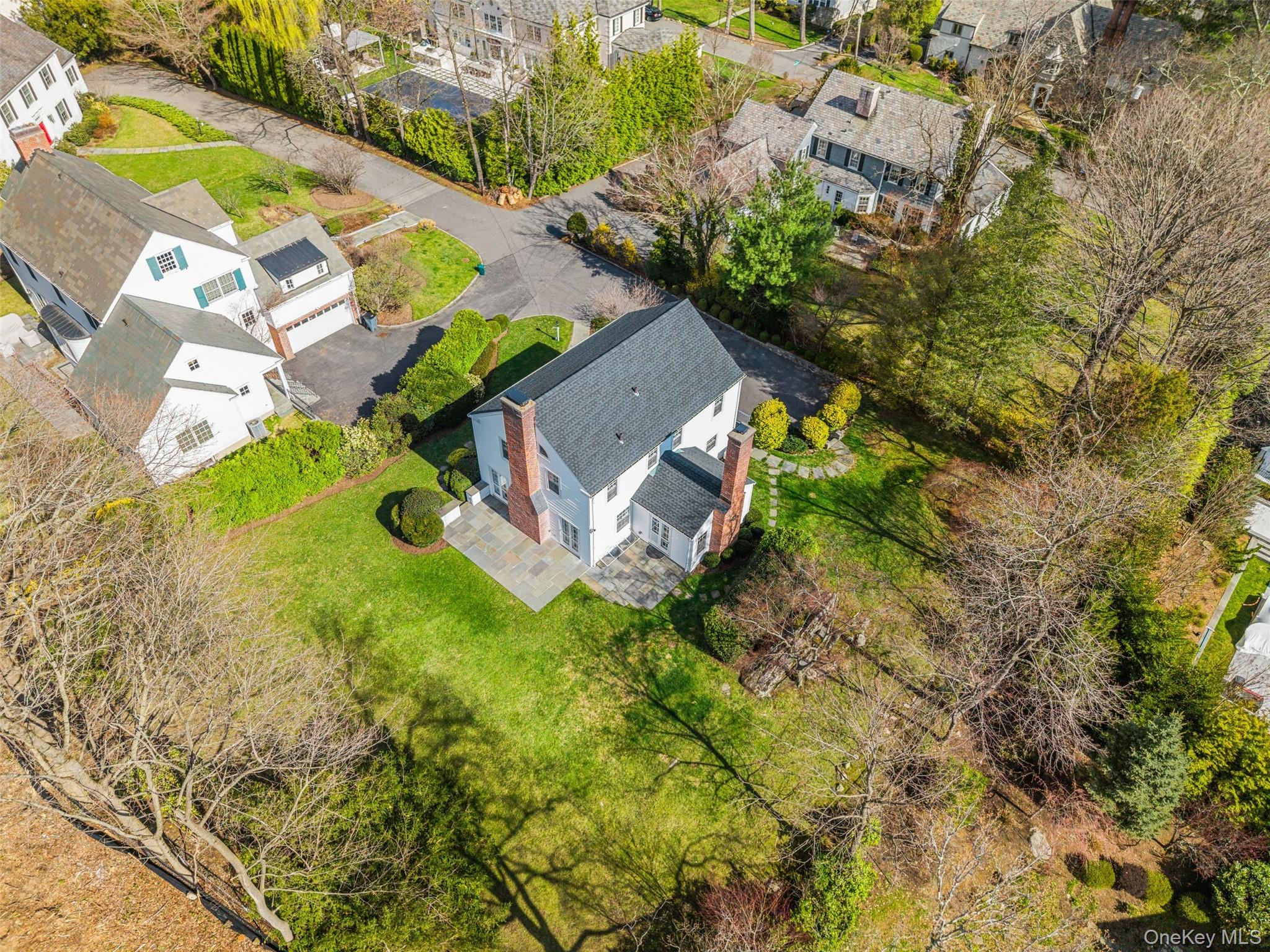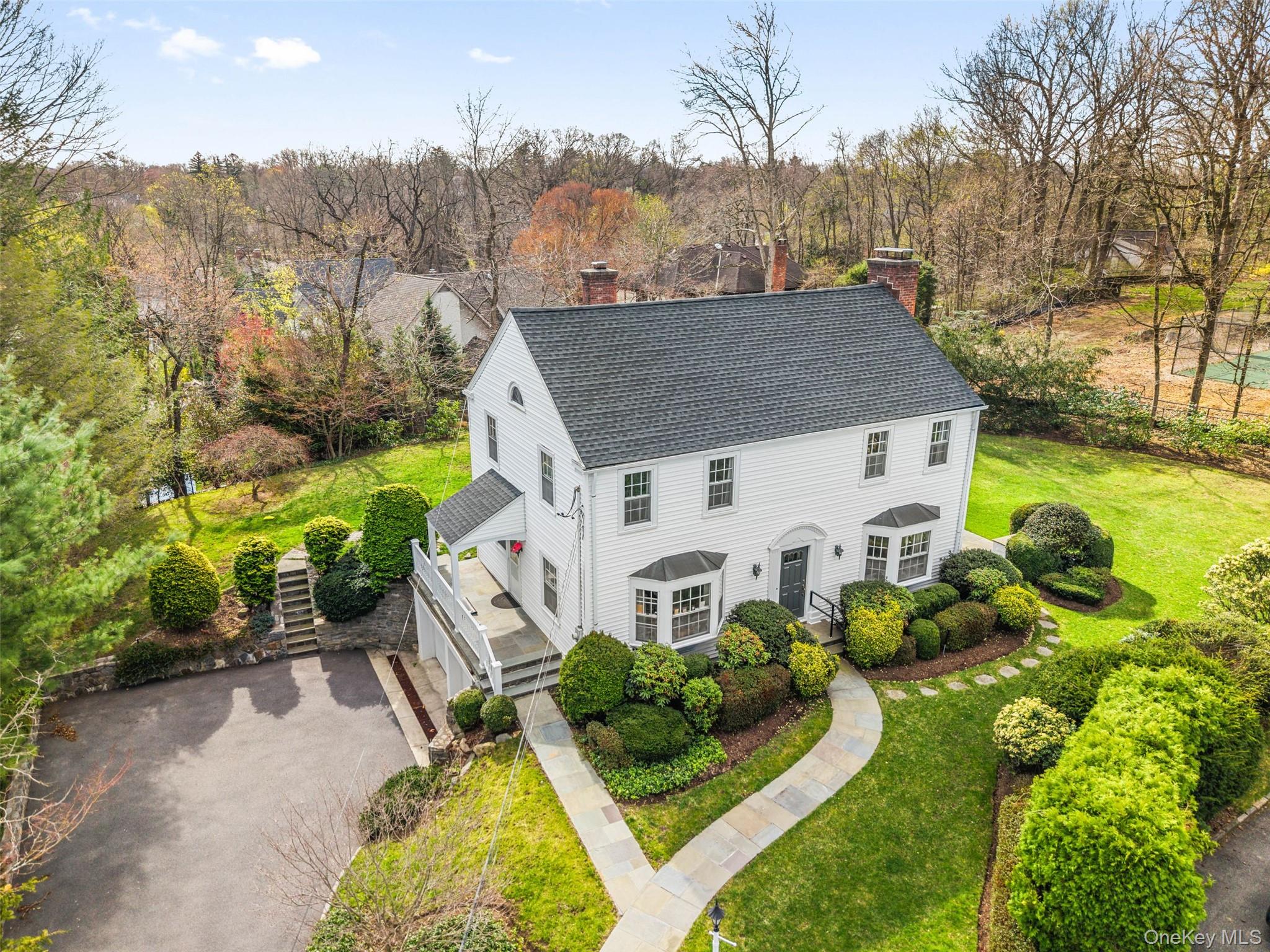 Classical center hall Colonial in one of the most coveted neighborhoods in Scarsdale. Set in ultra-prime Fox Meadow, a quick stroll to the Village, elementary school, high school, Metro North station, restaurants, shopping, and more, this charming home is bathed in sunlight and features thoughtful details, including handsome moldings and gleaming hardwood floors throughout. Perfectly perched atop a graceful hill surrounded by mature landscaping, enter to discover a spacious formal living room wrapped in windows, a wood burning fireplace, and French doors leading out to a slate patio, perfect for dining, entertaining, or quiet relaxation. Host dinner parties in the bright formal dining room, conveniently located adjacent to the spacious kitchen featuring stainless steel appliances, ample cabinetry, and granite countertops. The main floor also boasts a powder room and a delightful wood-paneled family room with a second wood-burning fireplace, creating the perfect space to work from home, or cozy up with a good book or good friends. The family room also features French doors leading to the patio and large, flat, landscaped, and private backyard. Upstairs, the sizable primary suite has both a private bath and a dressing area, and two spacious bedrooms share a hall bath, while the flexible lower level includes a large laundry room, storage, access to the 2-car attached garage, and a finished recreation room with decorative fireplace, which could easily be reimagined as a den, home theater, gym or playroom. Whether looking to redesign, reimagine, or move right in, this wonderful home offers endless opportunities!