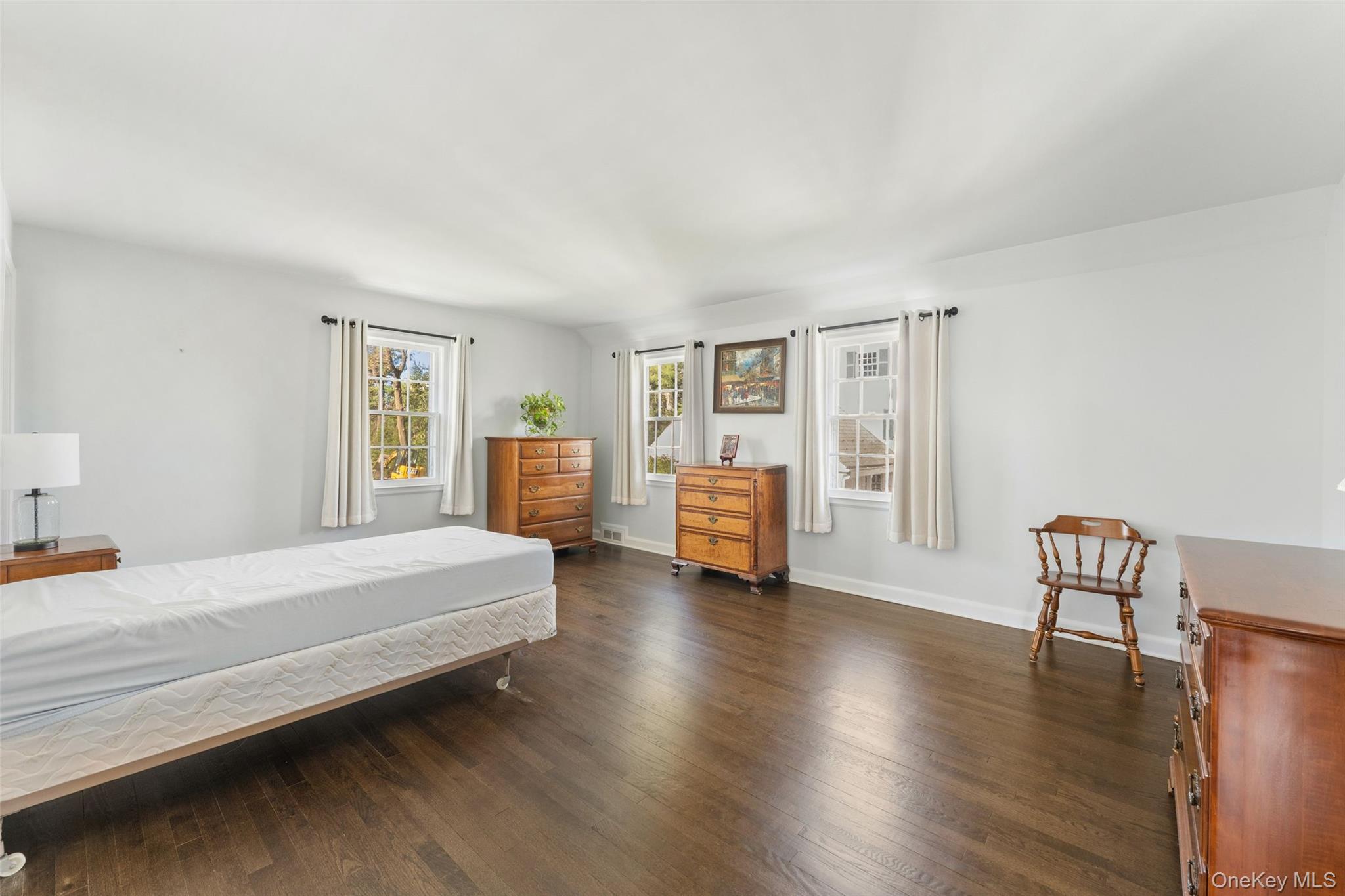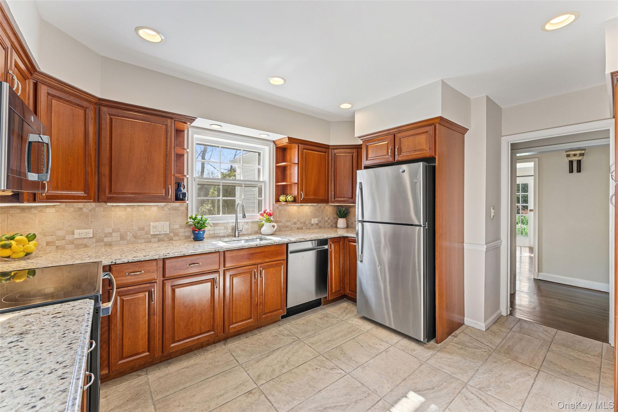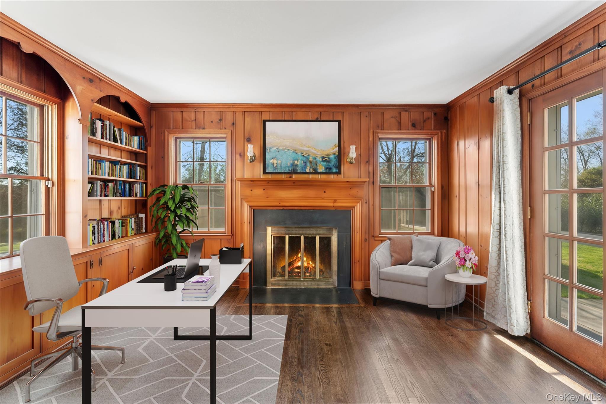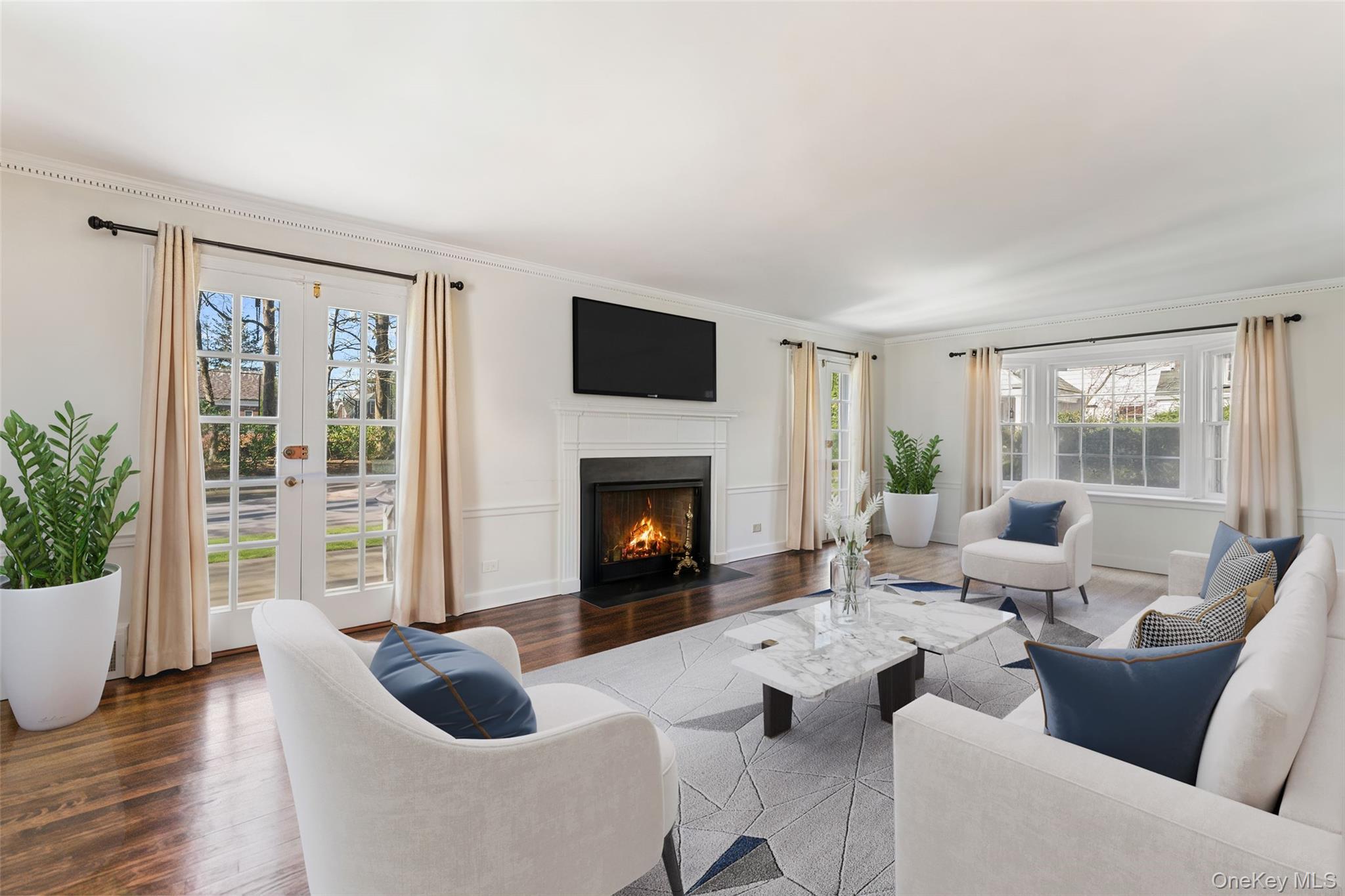 Classical center hall Colonial in one of the most coveted neighborhoods in Scarsdale. Set in ultra-prime Fox Meadow, a quick stroll to the Village, elementary school, high school, Metro North station, restaurants, shopping, and more, this charming home is bathed in sunlight and features thoughtful details, including handsome moldings and gleaming hardwood floors throughout. Perfectly perched atop a graceful hill surrounded by mature landscaping, enter to discover a spacious formal living room wrapped in windows, a wood burning fireplace, and French doors leading out to a slate patio, perfect for dining, entertaining, or quiet relaxation. Host dinner parties in the bright formal dining room, conveniently located adjacent to the spacious kitchen featuring stainless steel appliances, ample cabinetry, and granite countertops. The main floor also boasts a powder room and a delightful wood-paneled family room with a second wood-burning fireplace, creating the perfect space to work from home, or cozy up with a good book or good friends. The family room also features French doors leading to the patio and large, flat, landscaped, and private backyard. Upstairs, the sizable primary suite has both a private bath and a dressing area, and two spacious bedrooms share a hall bath, while the flexible lower level includes a large laundry room, storage, access to the 2-car attached garage, and a finished recreation room with decorative fireplace, which could easily be reimagined as a den, home theater, gym or playroom. Whether looking to redesign, reimagine, or move right in, this wonderful home offers endless opportunities!