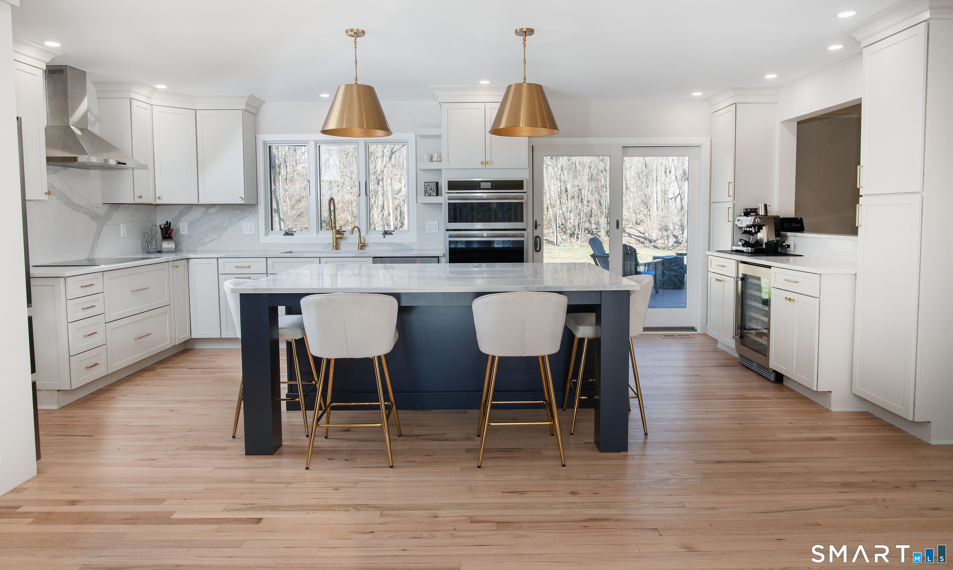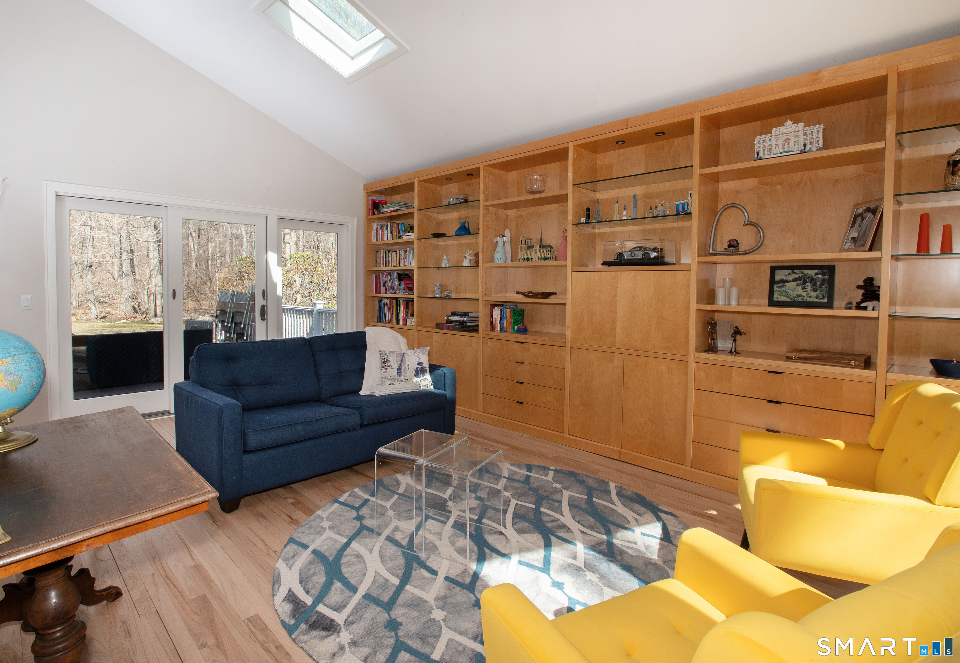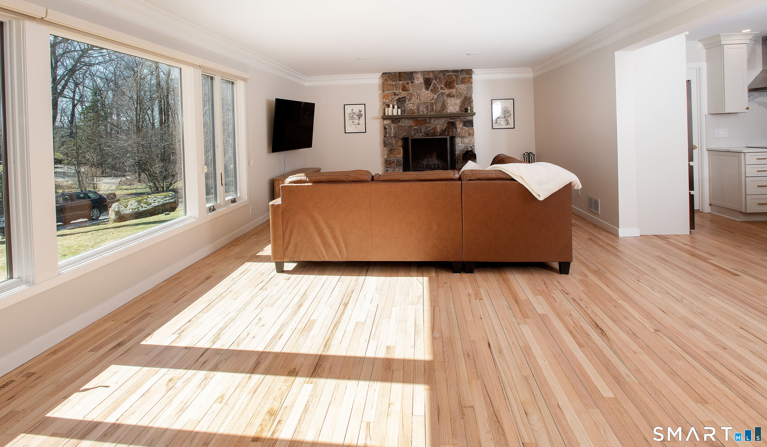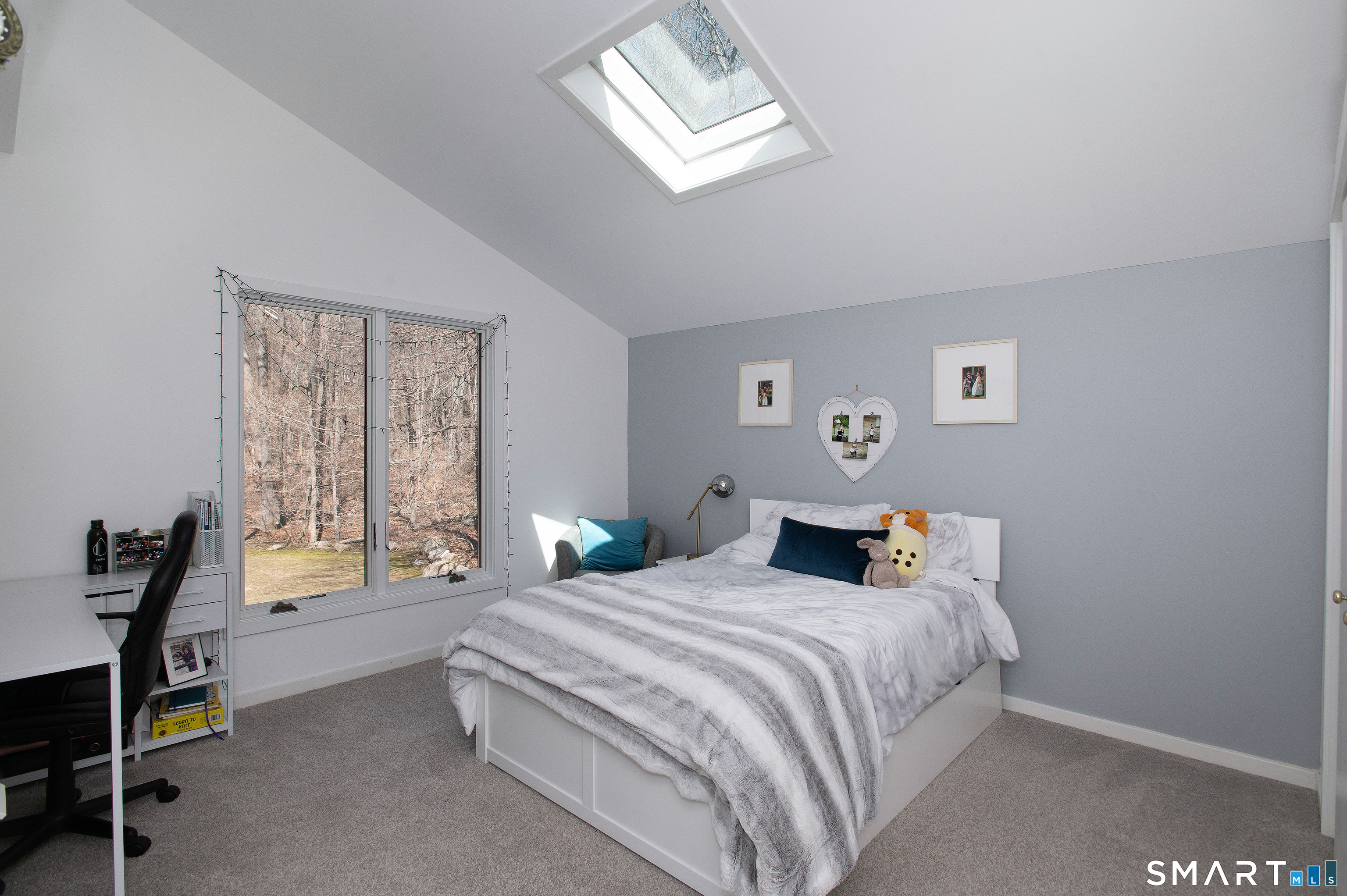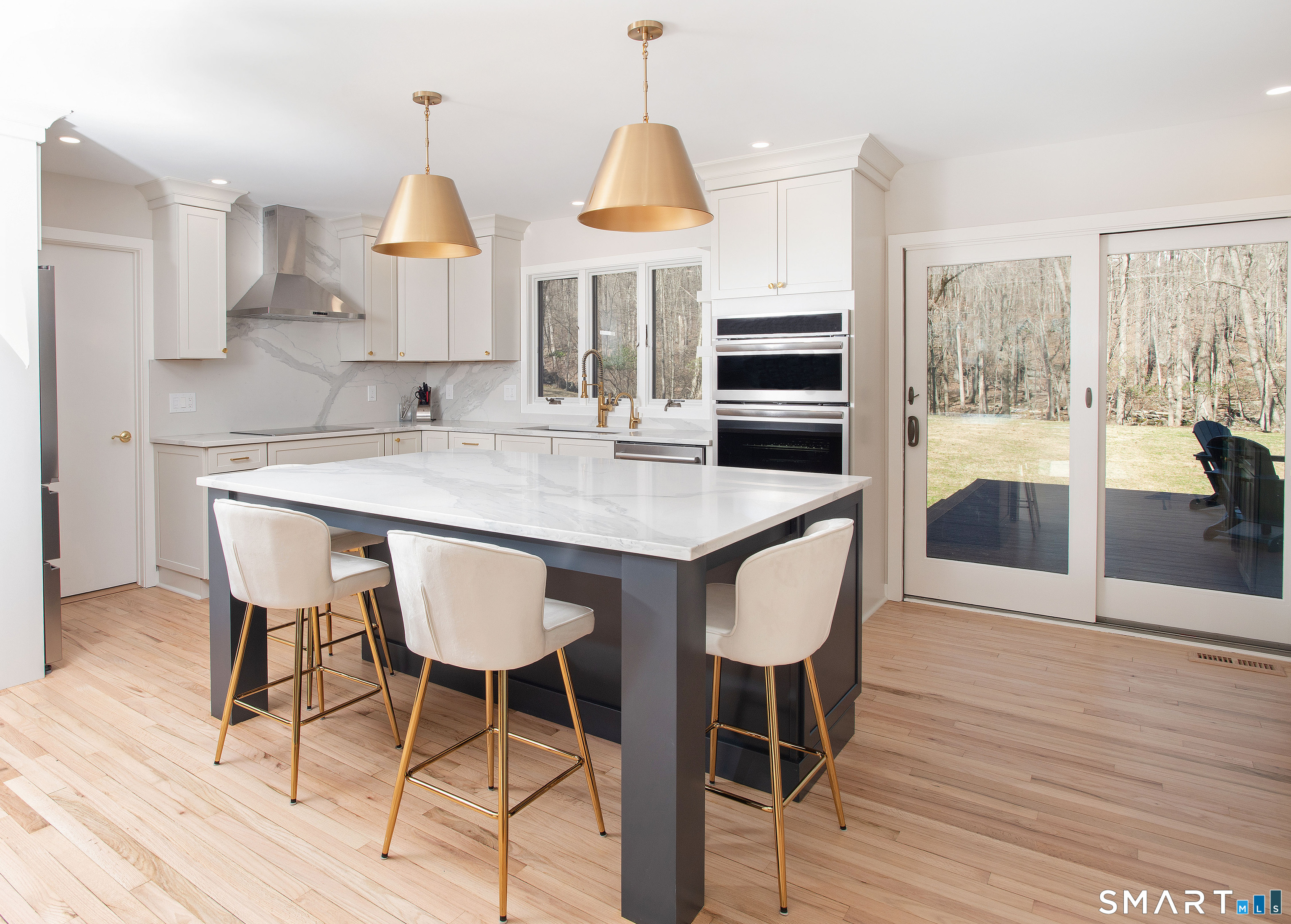 Welcome Home! Privately set at the end of a cul-de-sac on 1. 10 level acres, this light-filled Contemporary offers the perfect blend of space, style, and tranquility just minutes to town. A true showpiece, the fully renovated kitchen and mudroom feature abundant custom cabinetry, stainless steel appliances, quartzite countertops, and an oversized center island, all bathed in natural light and designed for both everyday living and entertaining. Soaring ceilings and walls of windows create an airy, open feel throughout the main level, complemented by newly refinished hardwood floors. Sliders lead to a spacious Trex deck overlooking the expansive, level backyard--rare for the area and ideal for play, gatherings, or simply enjoying the surrounding privacy. The family room with fireplace, formal living and dining areas, and updated powder room complete the main level. Upstairs, the primary suite offers vaulted ceilings, walk-in closet, and full bath, along with three additional bedrooms, hall bath, and office. The finished lower level provides flexible recreation space. Nearly $200, 000 in improvements since purchasing, including kitchen and main level, bathrooms, painting, and lower level upgrades. Exceptional privacy, turnkey updates, and a sought-after location only minutes to Ridgefield's vibrant town center, restaurants, shops, theaters, library and museum, and convenient access to various commuting routes to Fairfield and Westchester Counties, and trains to NYC. Welcome Home!