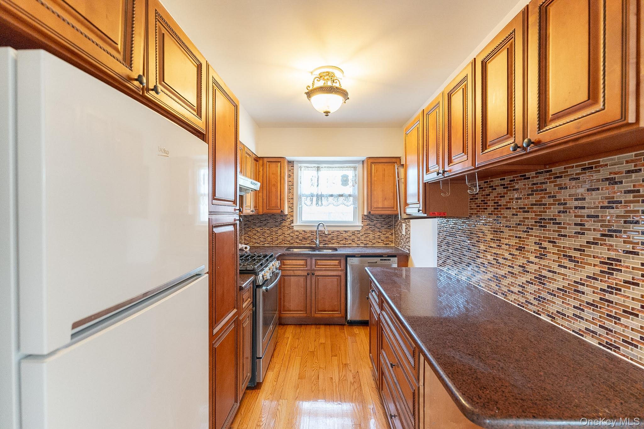 This charming 18-foot-wide, 3-bedroom, 2. 5-bath attached townhouse is located in Kew Gardens Hills, Flushing. The first floor features a bright living room, a well-appointed kitchen, a dining area, and a convenient half bath. Upstairs, the second floor offers three generously sized bedrooms and a full bathroom. A fully finished basement provides additional living or recreational space, while the attached one-car garage adds everyday convenience. Ideally situated near shopping, dining, and public transportation—including the Q64, Q20, and Q44—this home presents a fantastic opportunity in a highly desirable neighborhood.