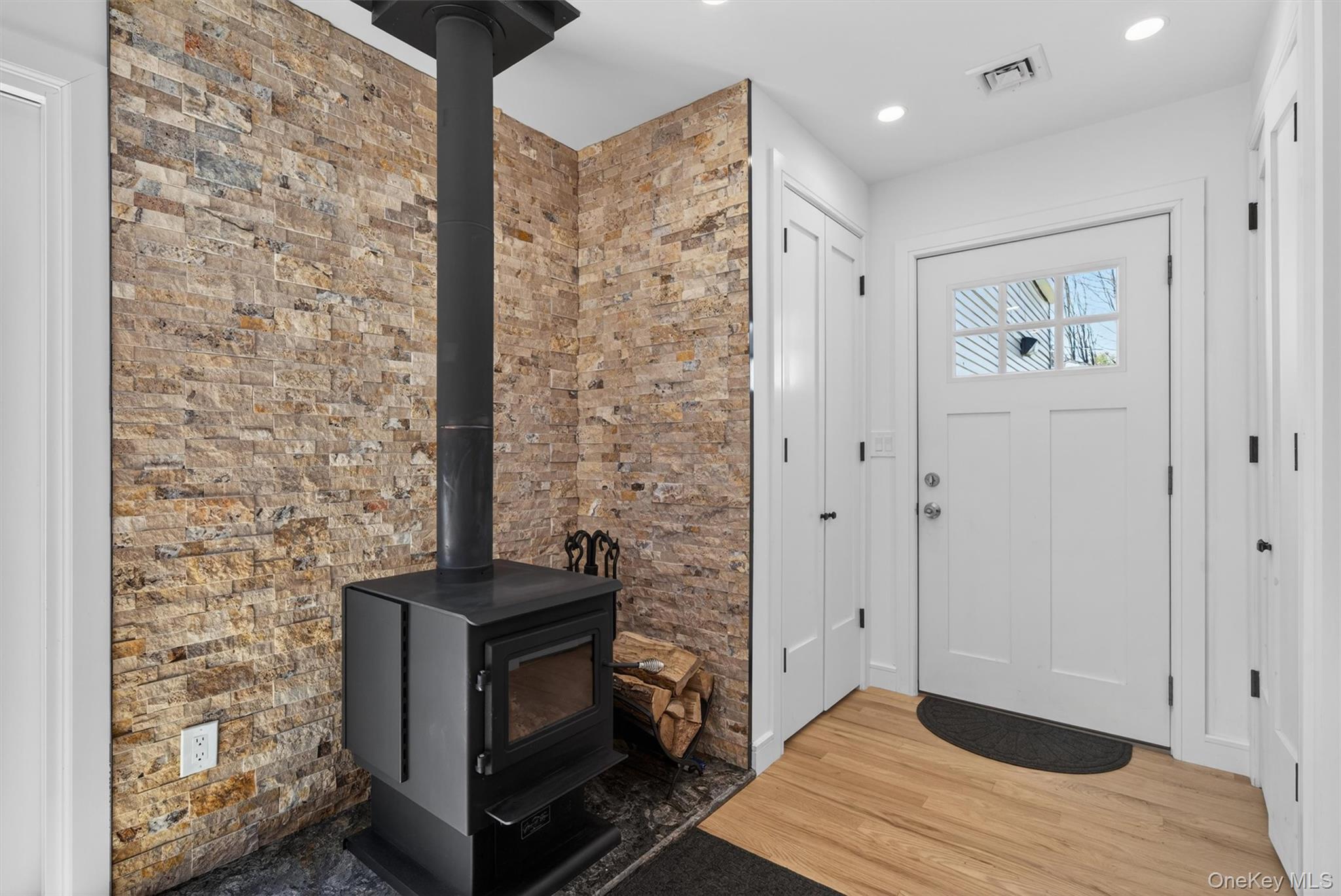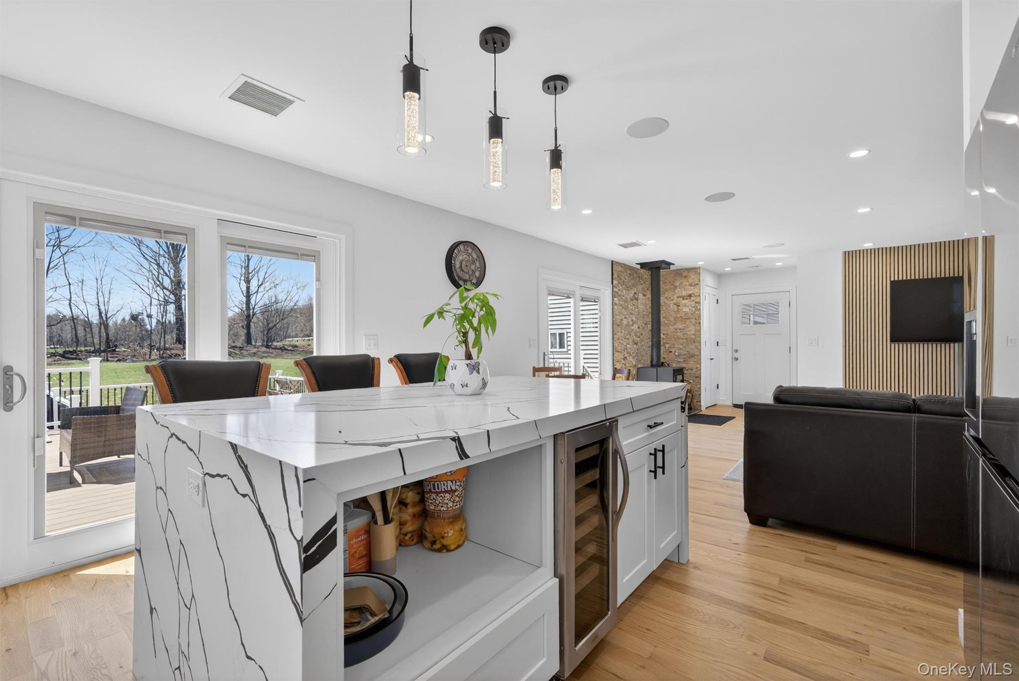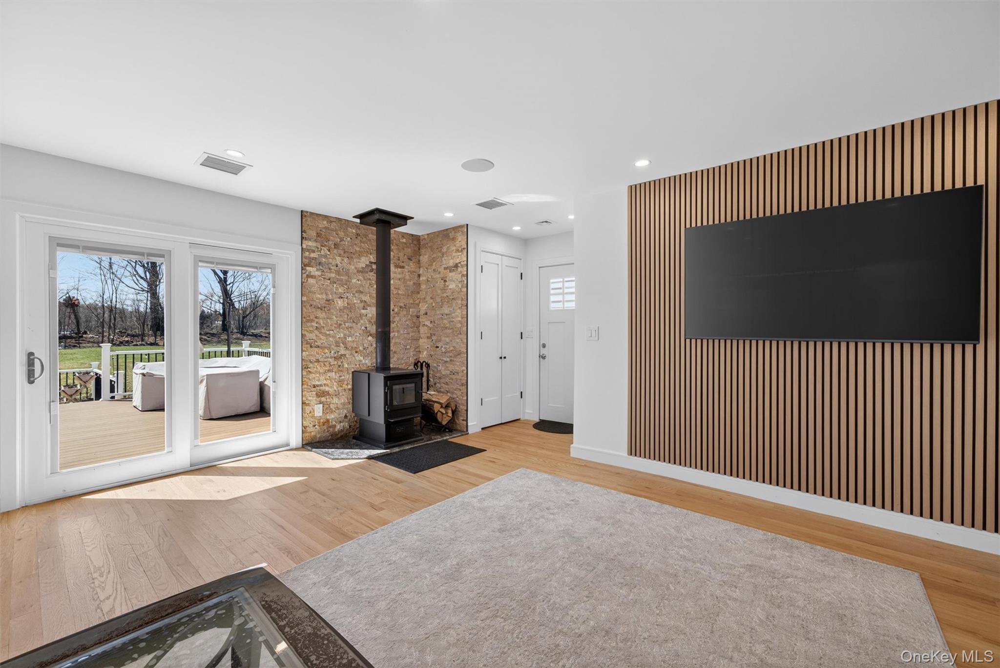 Tucked away in the foothills of the Catskills, this completely move-in ready and reimagined residence at 65 Bradley Road offers a rare opportunity to own a truly turnkey home in the highly sought-after Town of Neversink, within the Tri-Valley School District. LOW TAXES Taken down to the studs and rebuilt with intention, this 1, 221 square foot home offers three bedrooms and three full bathrooms, with every major system brand new—electric, plumbing, insulation, and a new roof—providing true peace of mind for years to come. Inside, a bright open floor plan unfolds, anchored by rich oak hardwood floors and a thoughtfully designed kitchen featuring granite countertops and stainless steel appliances. A wood-burning stove adds both character and supplemental warmth, while central air ensures comfort through every season. The primary suite is a standout, complete with dual vanities and a refined, spa-like feel. Step outside to a newly built 600 square foot Trex deck, perfect for entertaining or quiet mornings overlooking the surrounding landscape. A whole-house speaker system enhances the living experience, and the large detached garage provides ample space for storage, hobbies, or recreational equipment. Located just moments from the Neversink Reservoir—offering opportunities for paddle boarding, rowing, and swimming—this home captures the essence of upstate living, all while being just two hours from New York City. With very low taxes and a setting that blends privacy with accessibility, this is a rare offering in one of the area’s most desirable locations.