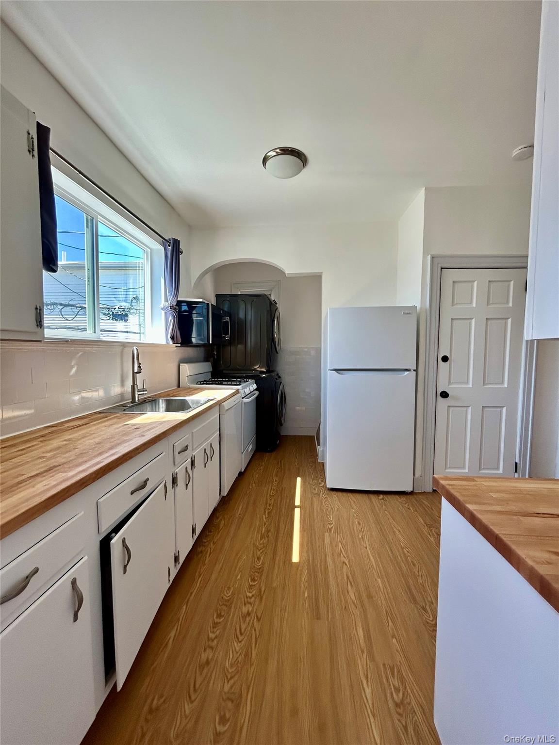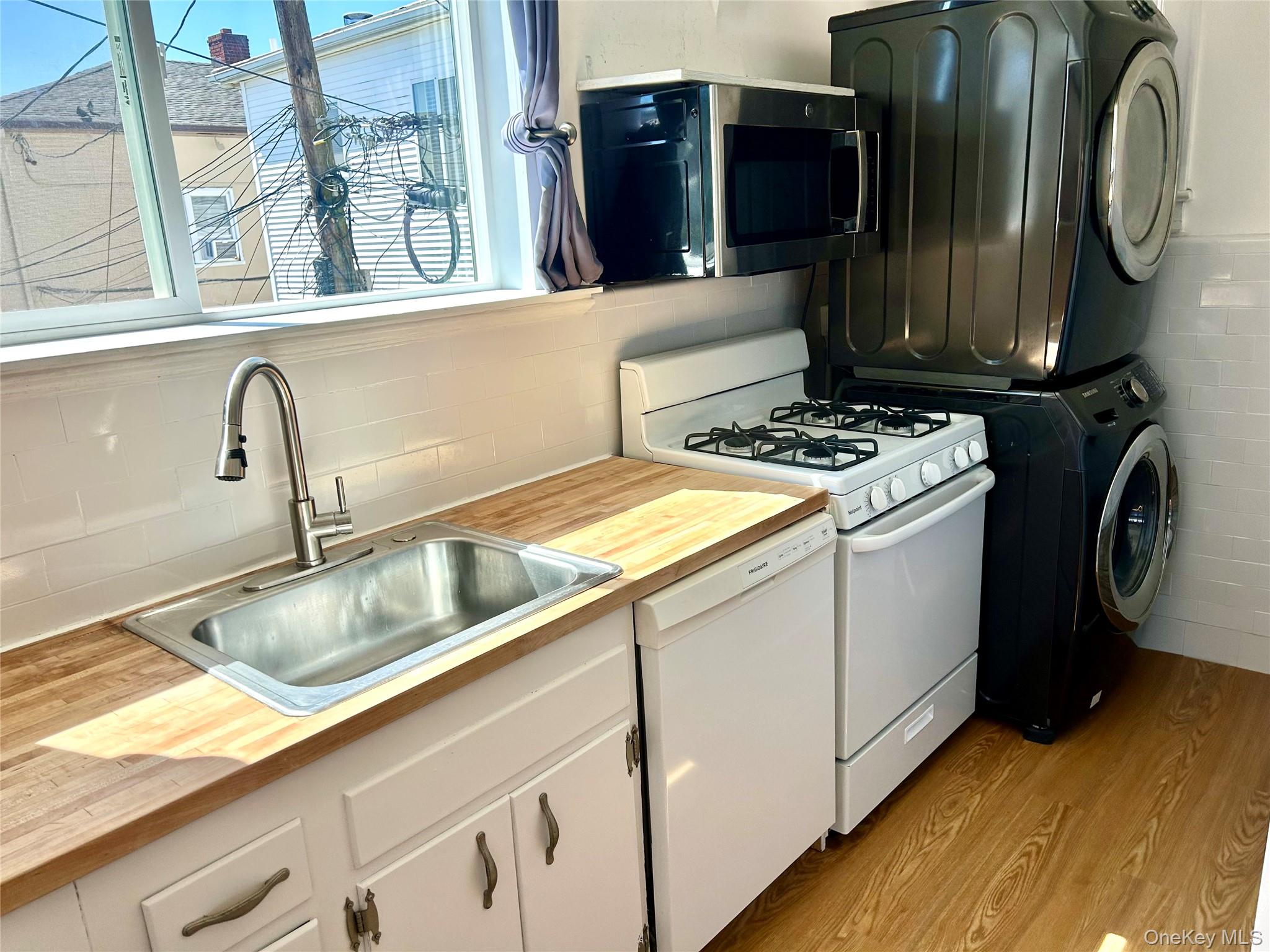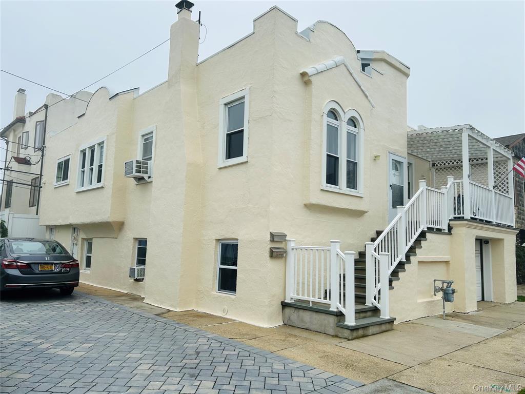 Beachside Stucco Legal 2 Family home on Double lot with Parking for 4 cars and separate Garage for 1 car or storage. Low Taxes! Garden Level: Sep. Entrance, Immaculate 2 Beds, 1 Bath, Sunken LR, Updated Kitchen, Tiled Floors throughout, Pvt washer and Dryer, Large Built -in Closet in Living room. Main Floor(Upper): Sep Entry, Beautiful Upper Porch with trellis, Sunken Living room w/ High Ceilings w/Original details and Wood burning Fireplace, FDR, Kit, pvt W&D, 3 beds, 2 bath, HWFloors throughout, 7 years old Gas Furnace, HWH, New Windows, 7 years old Roof. Oversized outdoor area. Blue stone Patio!Just one block from the white sandy beach, Playgrounds, Sand Park, All stores and All Parkways!Must see!