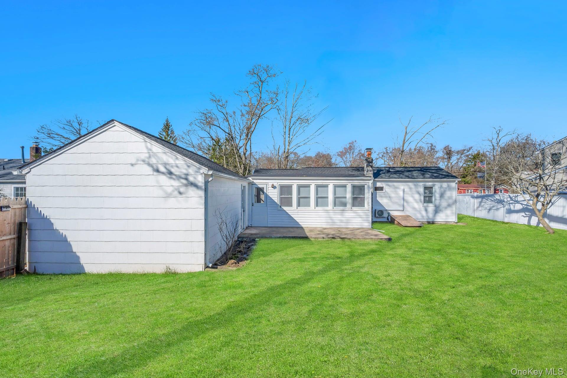 Welcome to 20 Willyn Road in the heart of Blue Point! Tucked away on a quiet dead-end street south of Montauk Highway, this charming 2-bedroom, 1-bath ranch offers privacy, convenience, and incredible potential. Set on a . 17-acre lot, this home features a spacious, sun-filled living room with abundant natural light, creating a warm and inviting atmosphere. The white kitchen is bright and functional, complete with a new stainless steel dishwasher and propane gas oven. Recent updates include a new roof, newly renovated bathroom, new split-system heating and air conditioning, new solid core doors, recessed lighting, and a new front-loading stackable washer and dryer. Additional highlights include a detached 1-car garage and the benefit of being located outside of a flood zone—no flood insurance required. Enjoy close proximity to the Blue Point Nature Preserve and all the beauty of the South Shore, while being part of the highly sought-after Blue Ribbon award-winning Bayport–Blue Point School District. Please note: New renovation to bathroom and walls needs minor finishing (taping, spackling, moldings on new sheetrock) and will be sold as is. A fantastic opportunity to own in a desirable location.