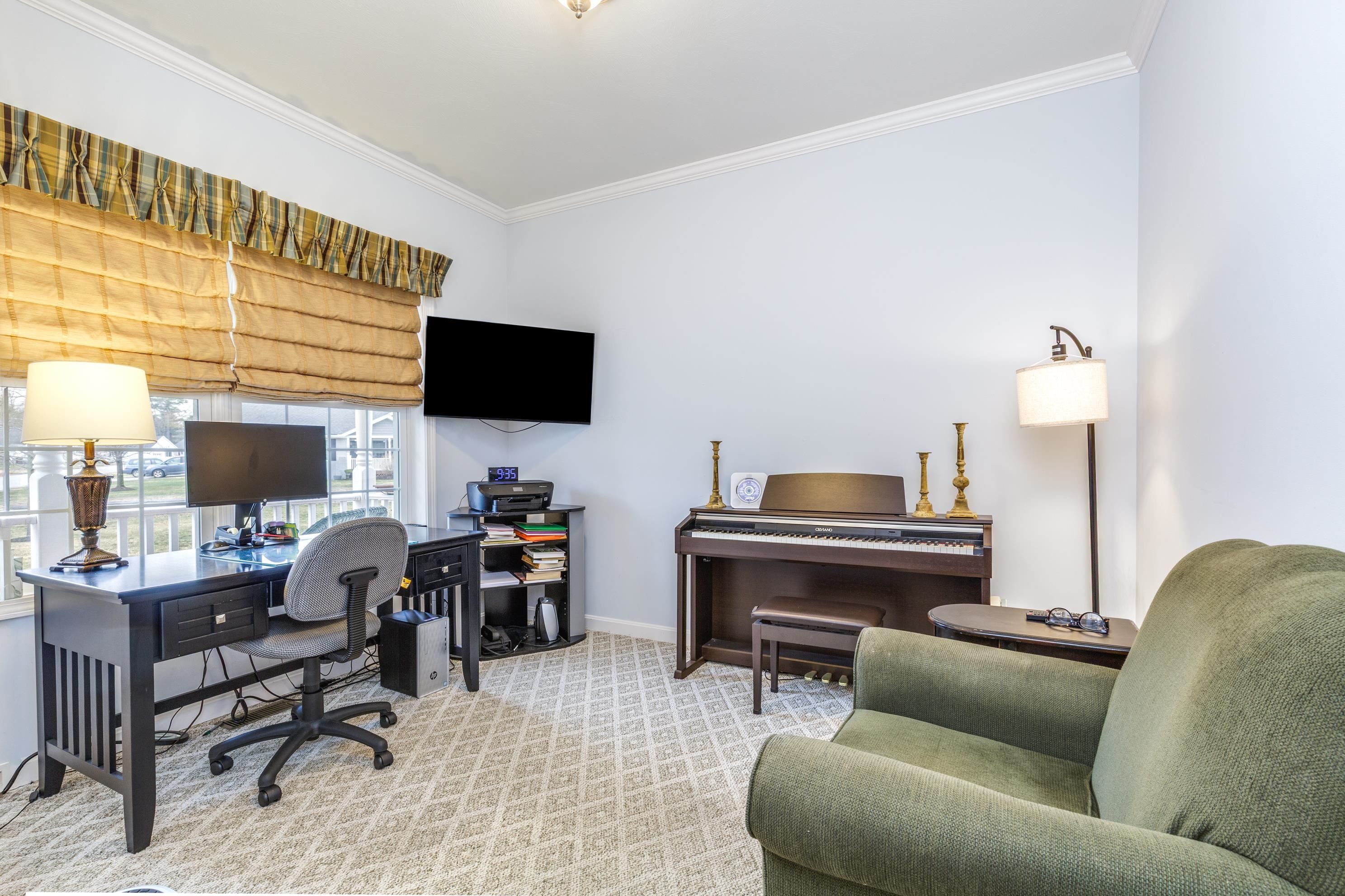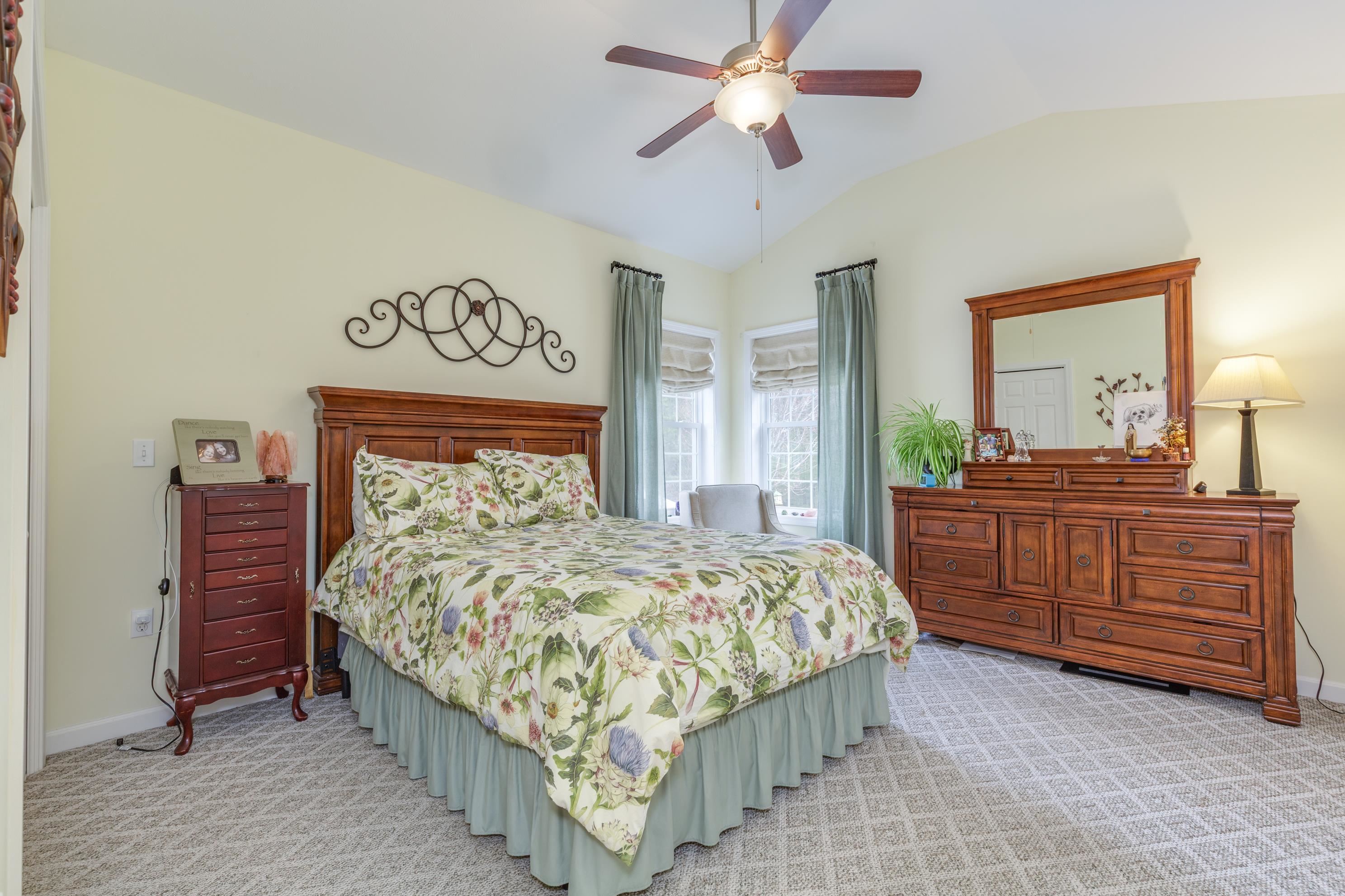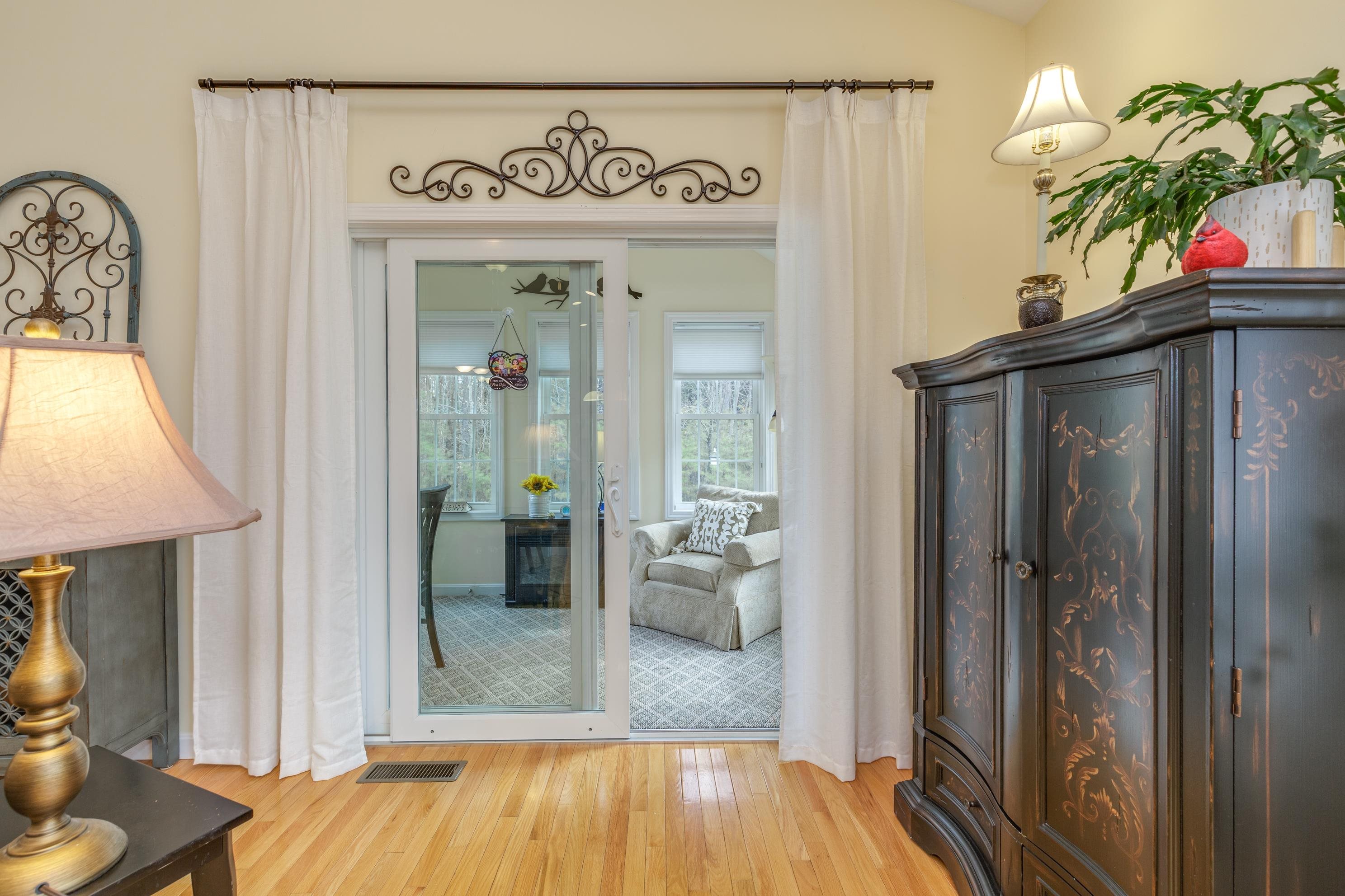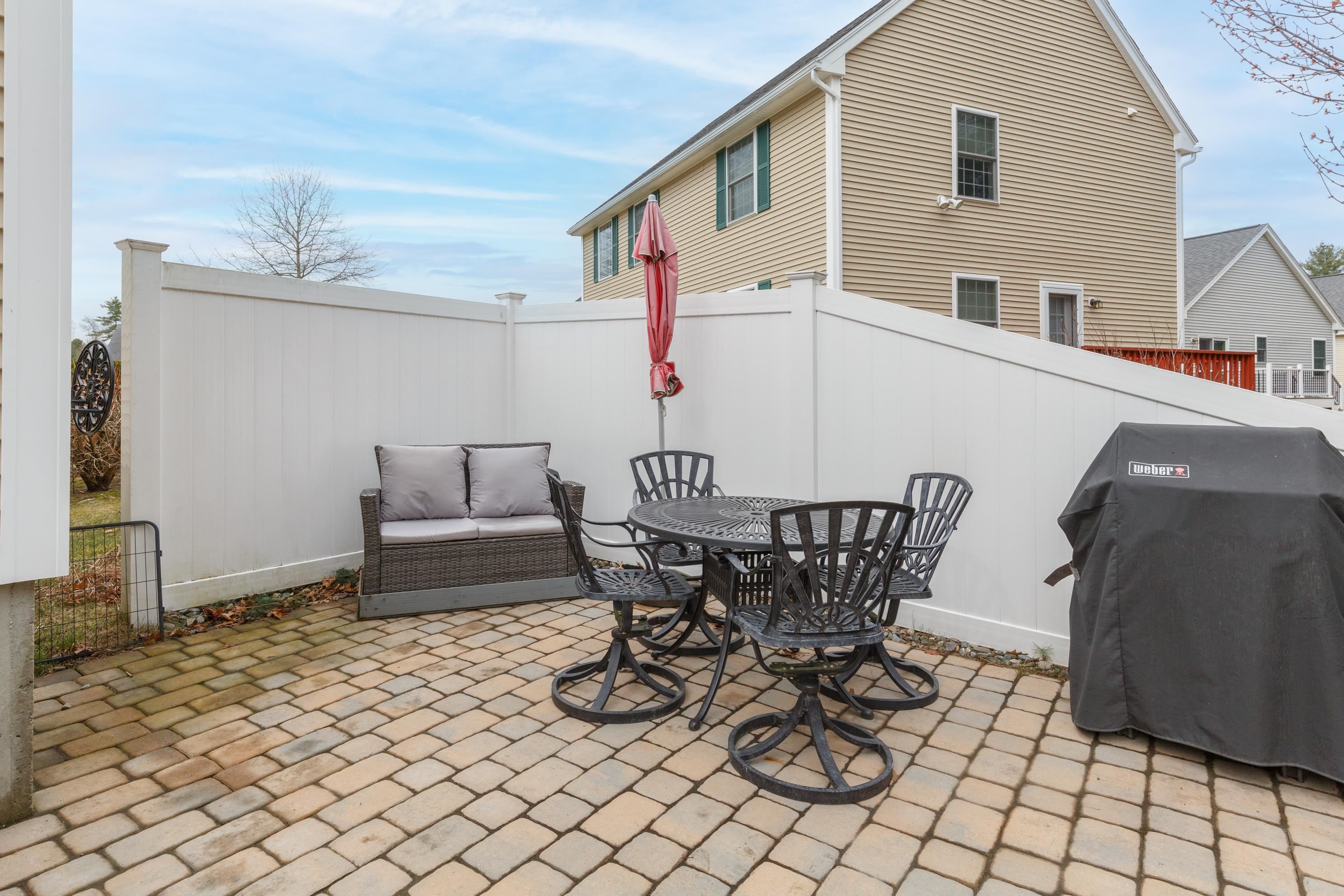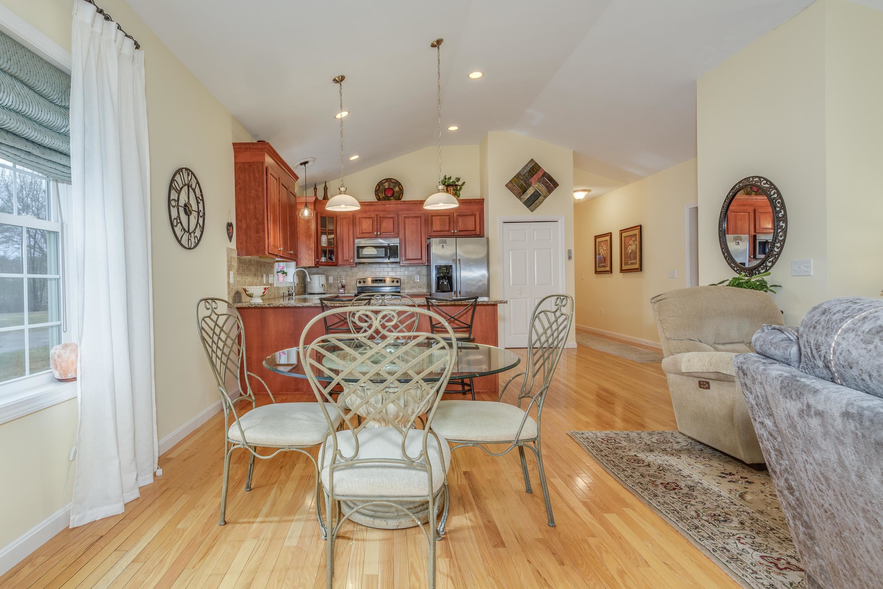 A perfect home to enjoy without the maintenance! Impeccably maintained and offering easy one level living with all the bells and whistles. From the soaring ceilings to the gorgeous custom kitchen featuring rich cinnamon colored cabinetry, granite counters, stainless steel appliances, and a spacious walk in pantry, every detail has been thoughtfully designed. Beautiful hardwood floors, a cozy gas fireplace, central AC, crown molding, and transom windows throughout provide warmth and abundant natural light. The primary suite offers the convenience of first floor laundry, while custom drapery and a whole-house generator add comfort and peace of mind. Relax year round in the inviting four season sunroom that opens to a large patio and fenced yard for privacy, accented by a row of flourishing lilacs. The finished lower level features a spacious family room with pool table, perfect for entertaining. Enjoy a low maintenance lifestyle with association maintained grounds, pleasant sidewalks, and nearby trails. Ideally located within walking distance to Beaver Meadow Golf Course and the Merrimack River for fishing. Efficient natural gas heat and city services complete this exceptional offering.