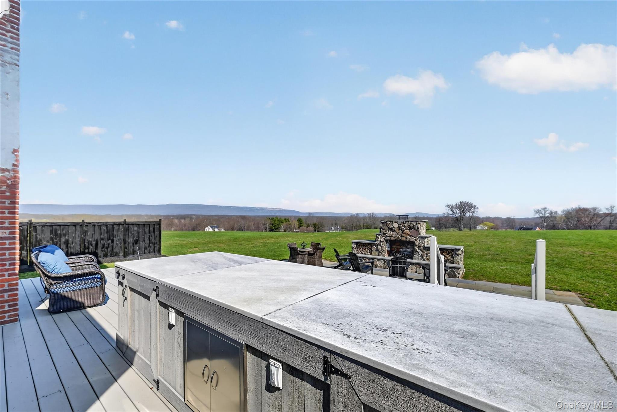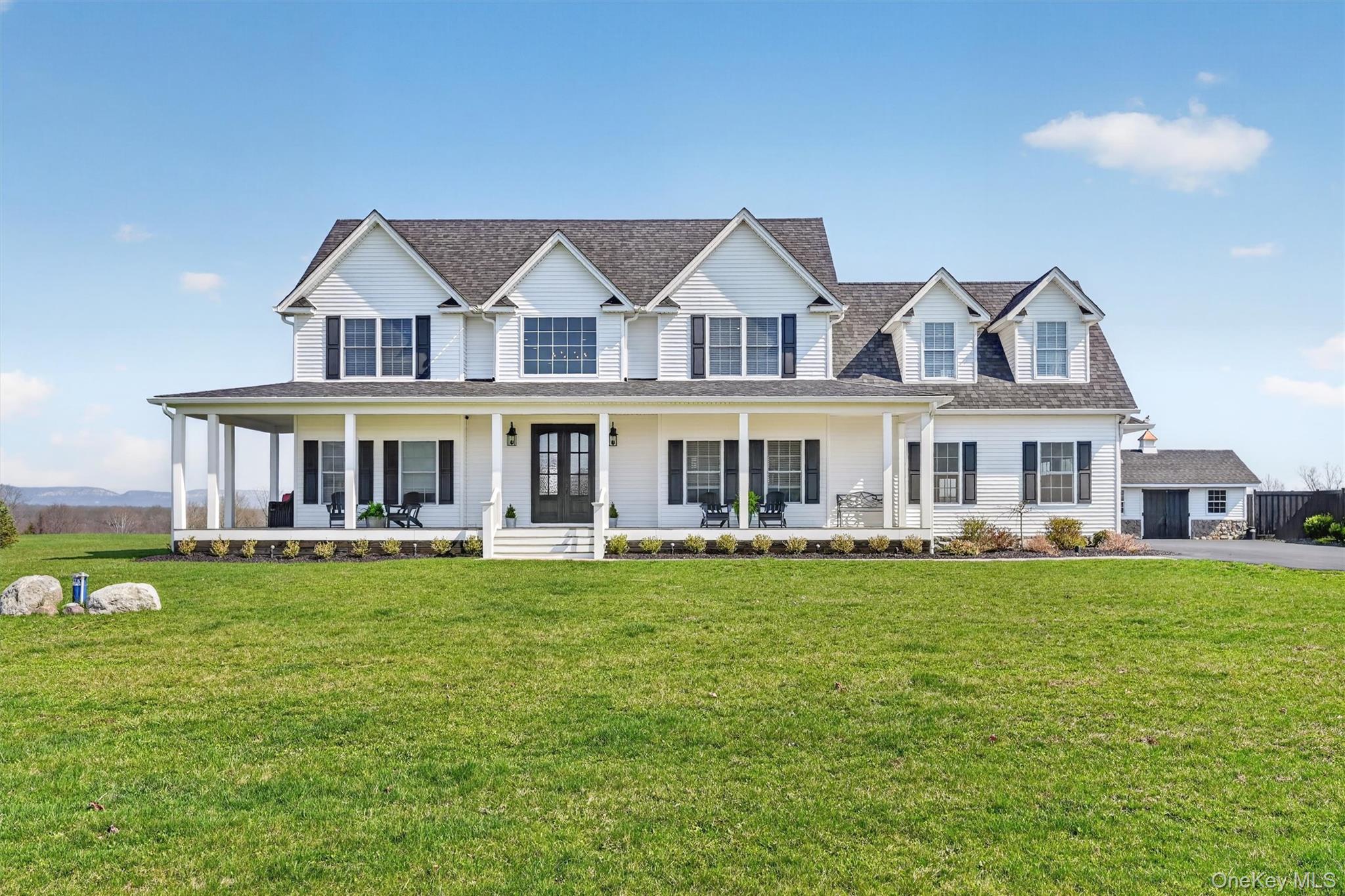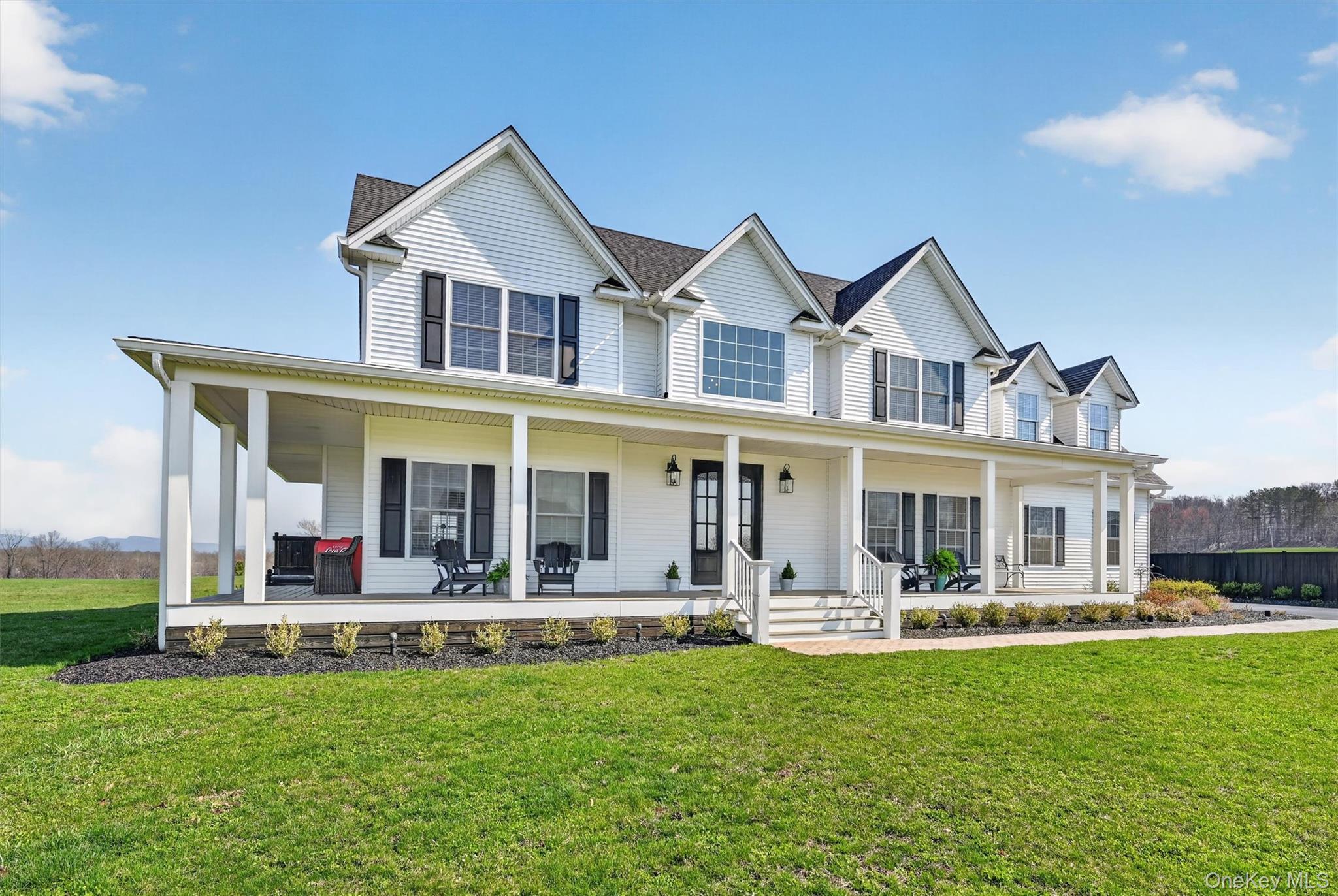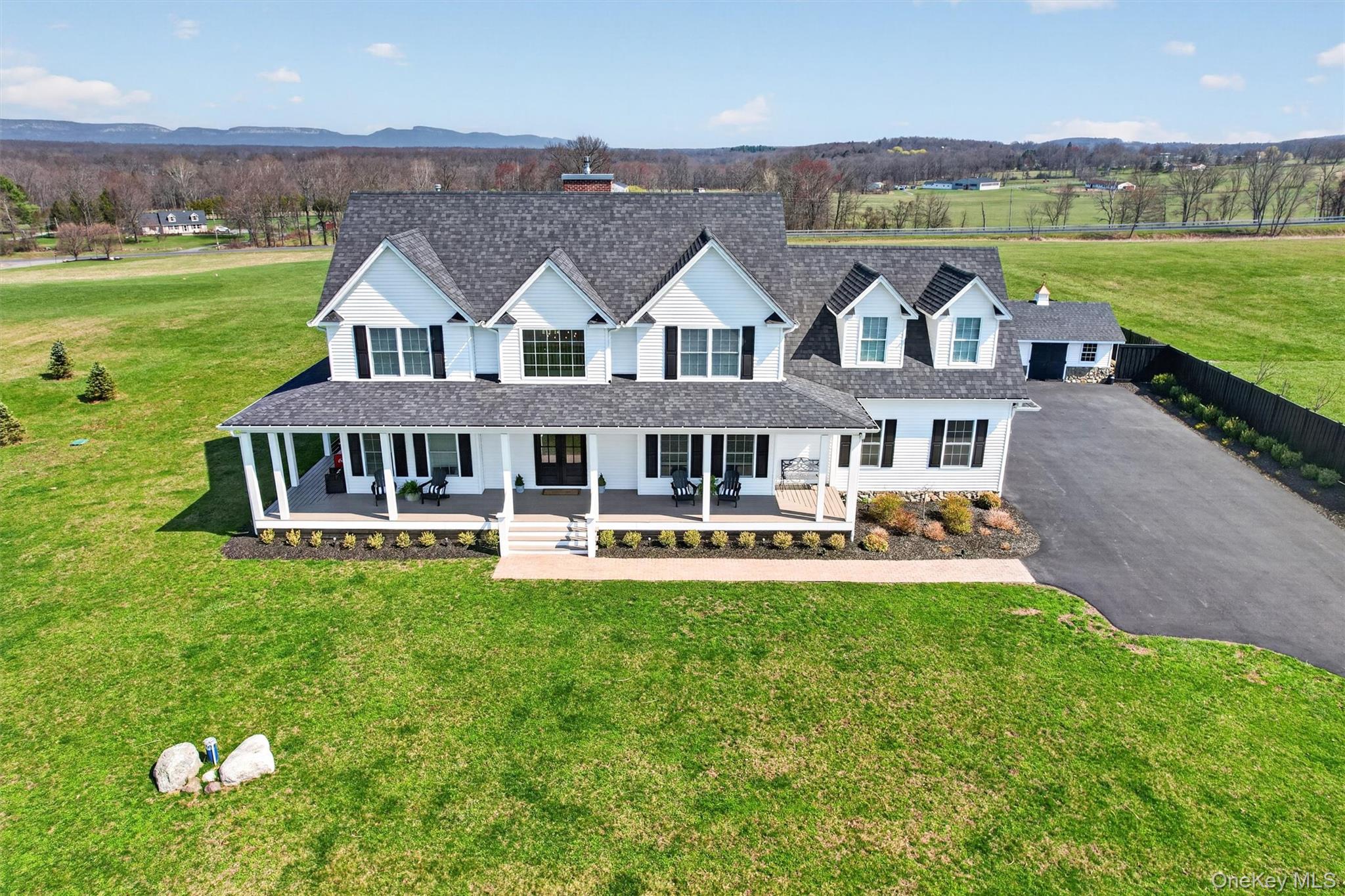Welcome to this one-of-a-kind home where luxury meets breathtaking natural beauty. Solid 8 foot double mahogany doors open to a covered wraparound porch, perfect for rocking chairs and taking in panoramic views from sunrise to sunset. Designed for entertaining, the outdoor space features a back deck with a full outdoor kitchen, complete with a Baker’s Pride commercial grill and pizza oven, marble counter-tops, and seating that flows to a blue stone patio with a beautiful outdoor fireplace—all overlooking the mountains. Inside, the gourmet kitchen is a chef’s dream with top-of-the-line cabinetry, an oversized sink with scenic views, a 6-burner commercial stove with flat top, a 9-foot island, and a stunning wine wall with built-ins. The first floor boasts 9-foot ceilings, rich oak floors, and a living room with walls of windows and a brick auto-lighting fireplace—perfect for cozy ambiance and backup heat. The main-level primary suite offers double sinks, a soaking tub, tiled shower, and spectacular mountain views. Upstairs, you’ll find oak flooring throughout, a spacious main bath with double sinks, and a fourth bedroom or bonus room featuring a coffee bar and private balcony. Additional highlights include a 2-car insulated heated garage, plus a 1 car detached garage with vinyl siding, field stone accents, and a copper cupola. - Seller has approval to build a 20x20 barn in the backfield. For the nature lover and adventurer, you're only minutes away from the breathtaking beauty of Minnewaska State Park, the scenic trails of Mohonk Mountain, local wineries, and seasonal apple orchards. With unmatched views and frequent rainbows, this extraordinary home is truly a rare find.